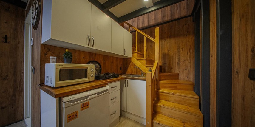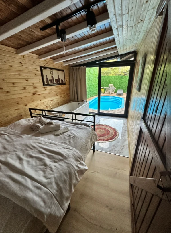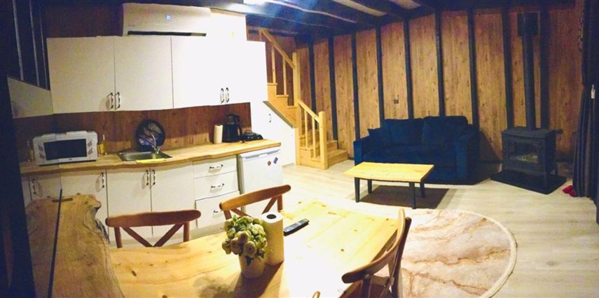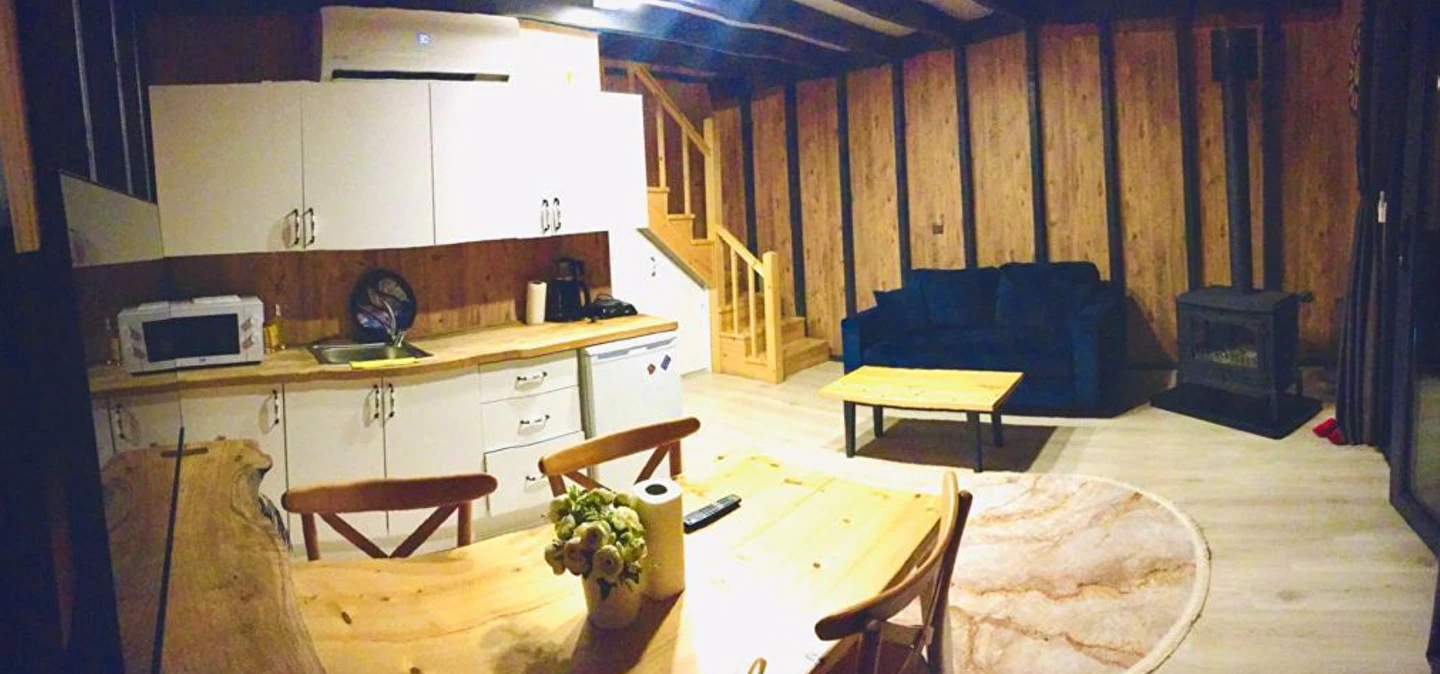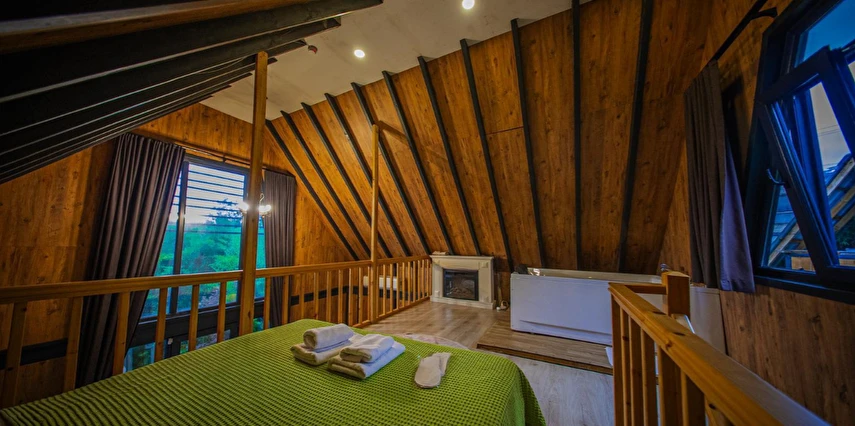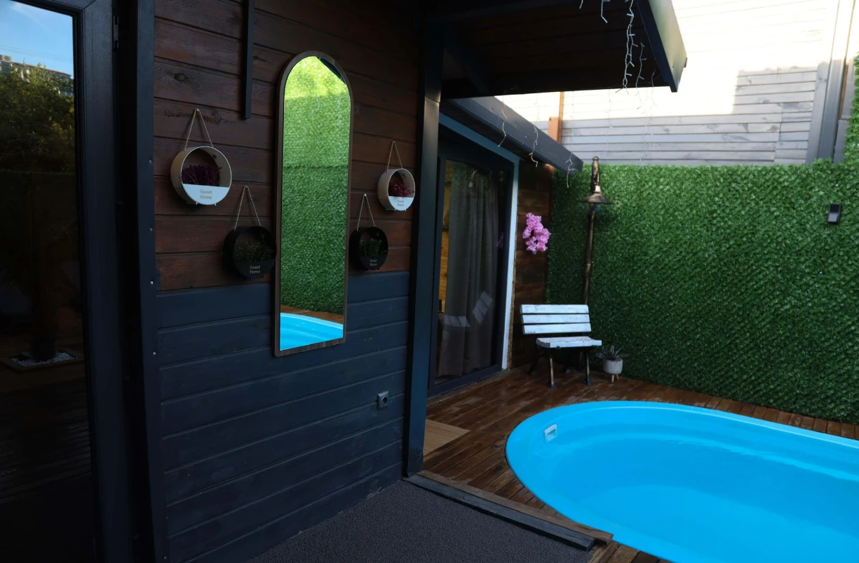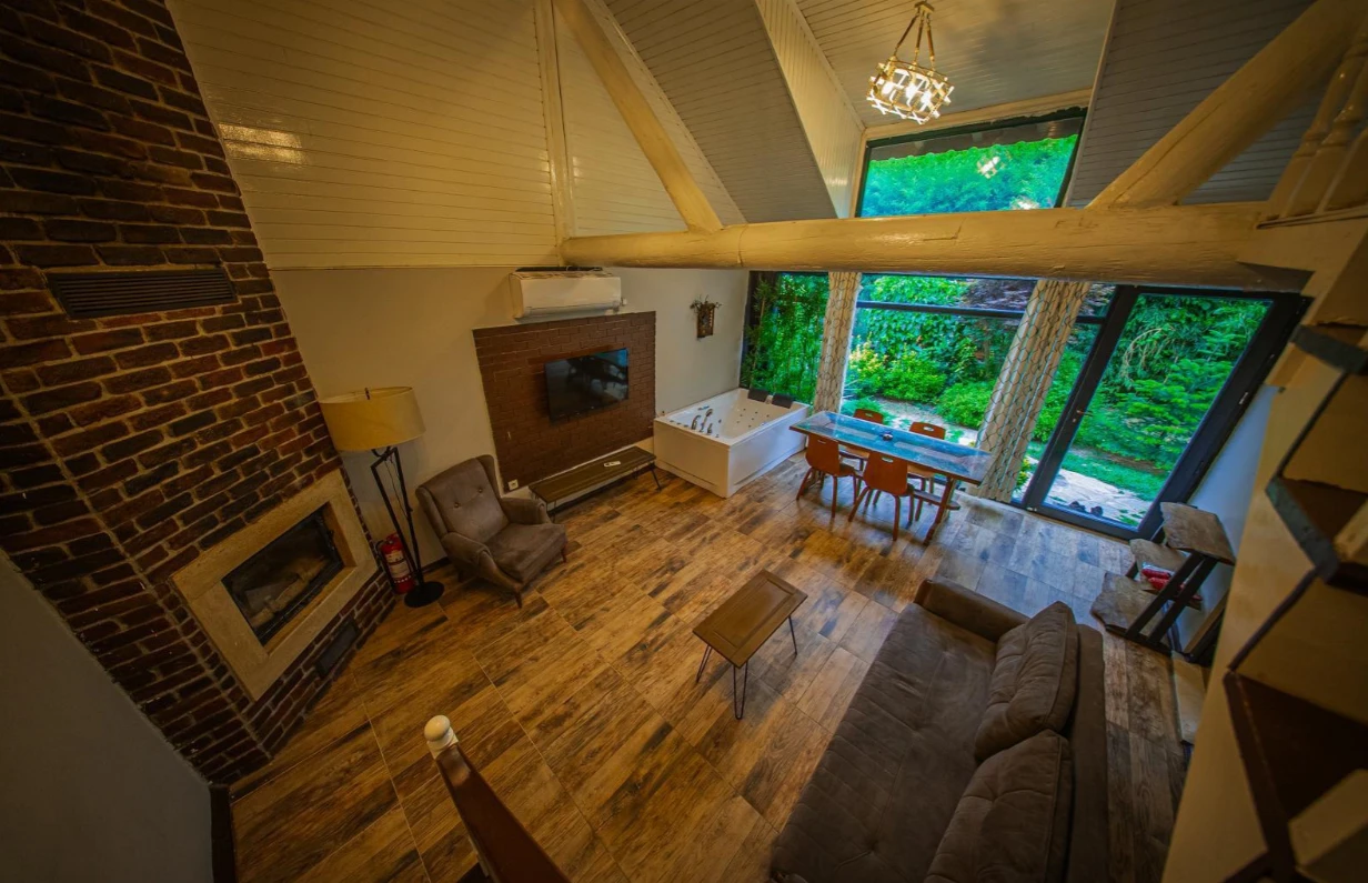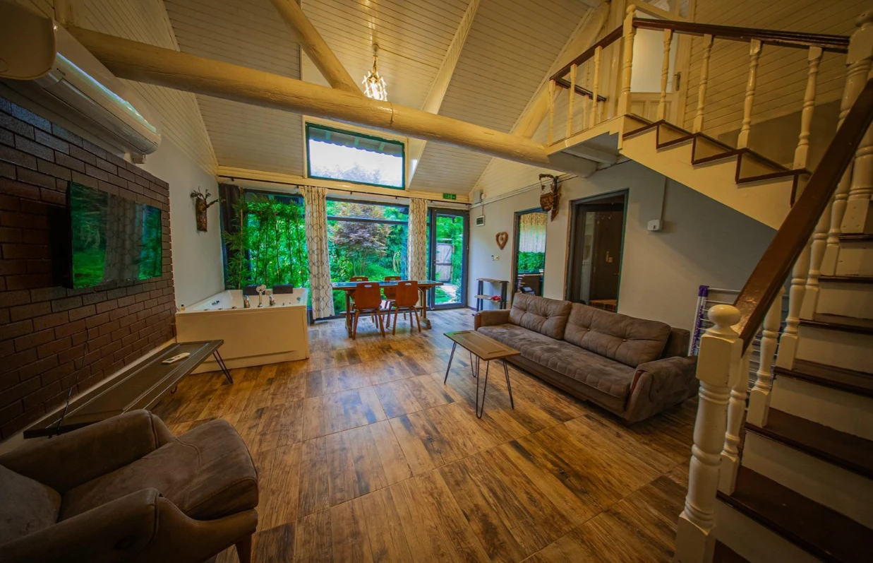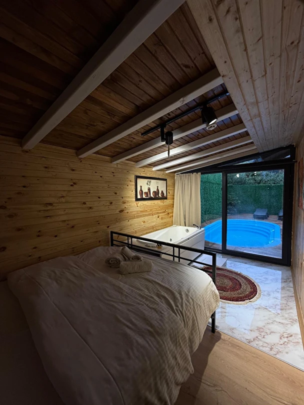 No:2 Bungalov: 75 m² genişliğiyle en büyük odamızdır ve 8 yetişkin ile 2 çocuk kapasitesiyle kalabalık gruplar için idealdir.