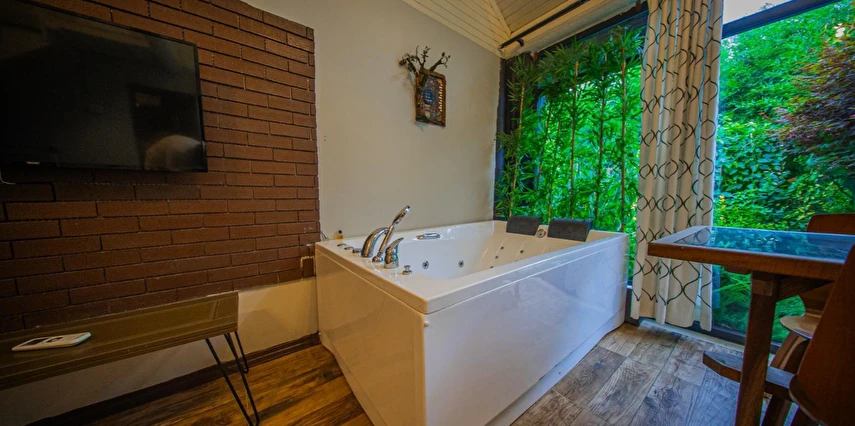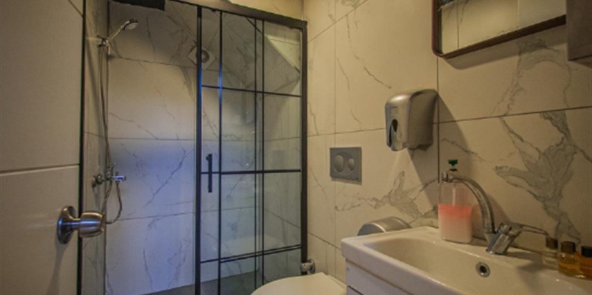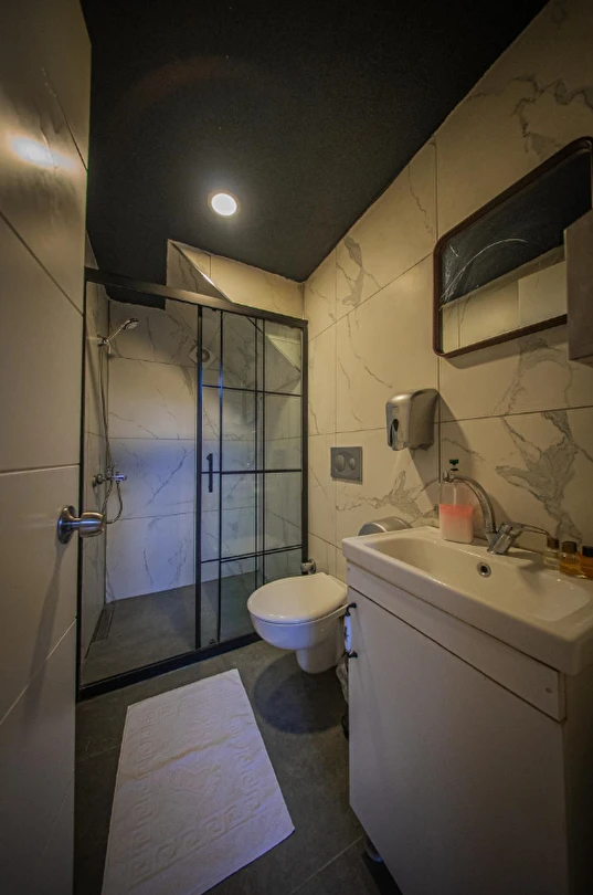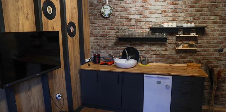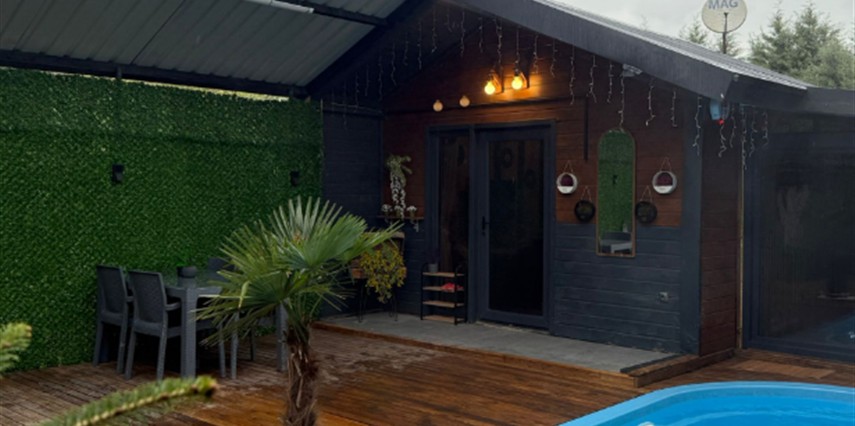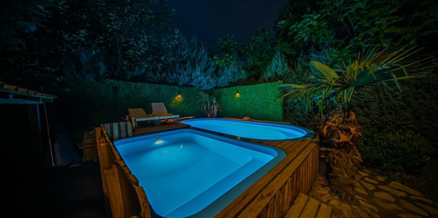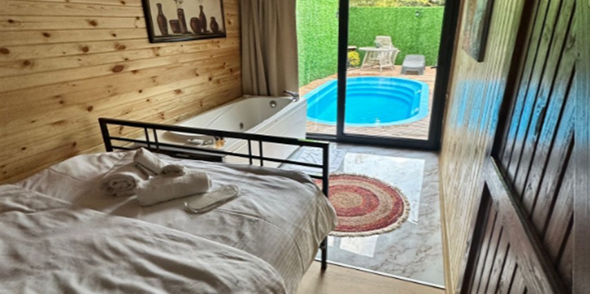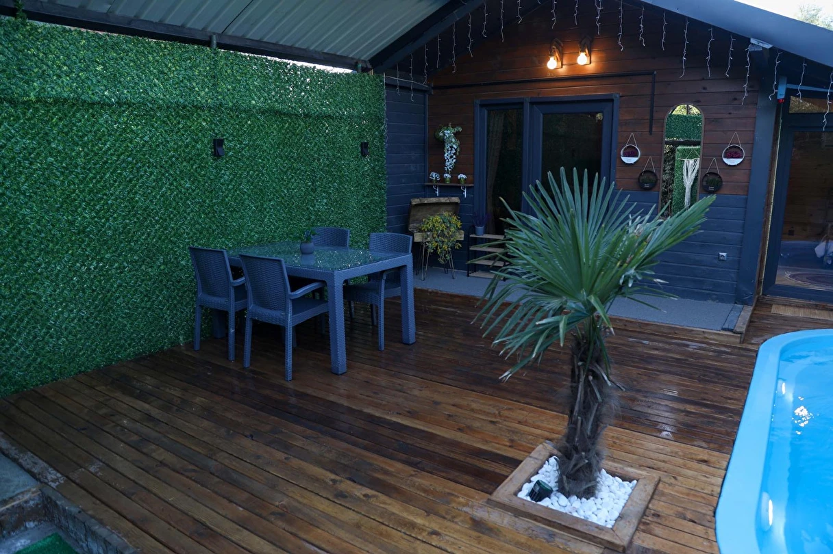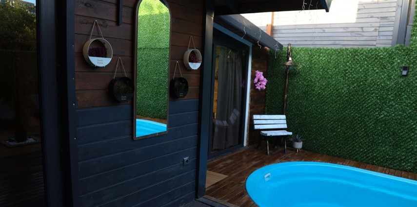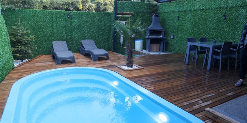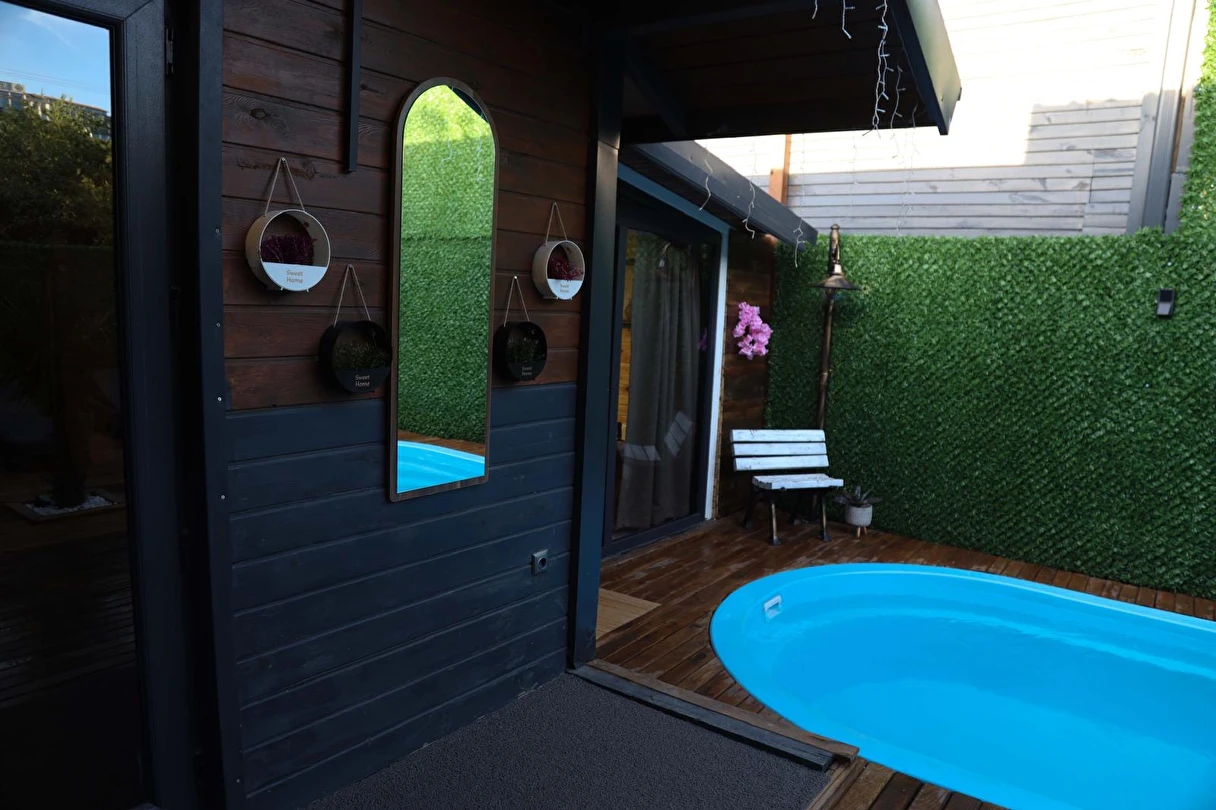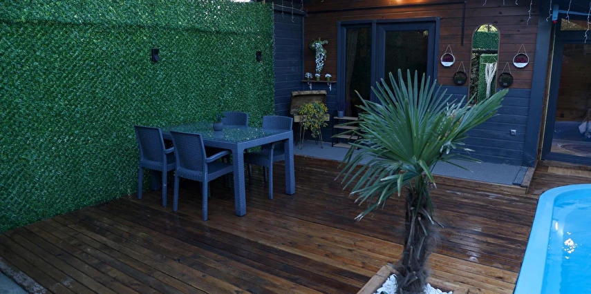 No:2 Bungalov: 75 m² genişliğiyle en büyük odamızdır ve 8 yetişkin ile 2 çocuk kapasitesiyle kalabalık gruplar için idealdir.
