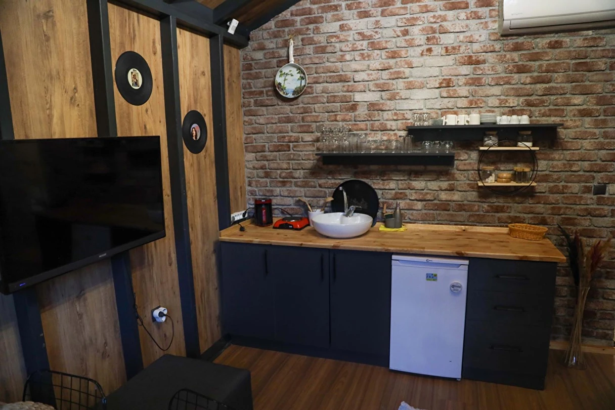No:1 Bungalov: 50 m² büyüklüğünde olup, maksimum 5 yetişkin ve 1 çocuk kapasitesine sahiptir.