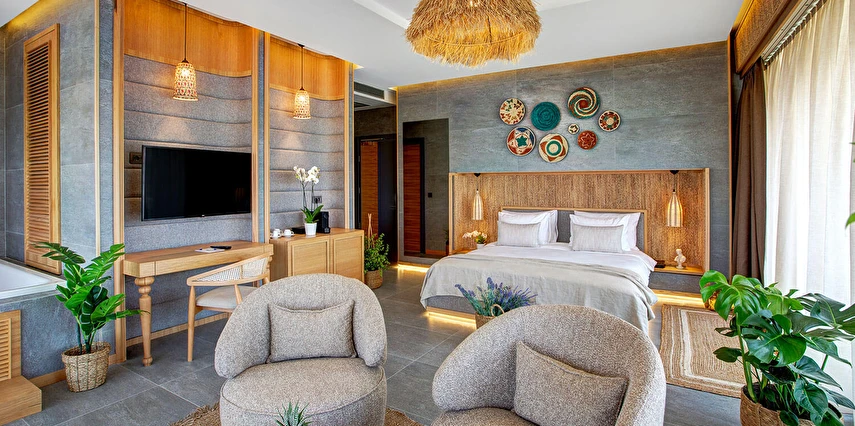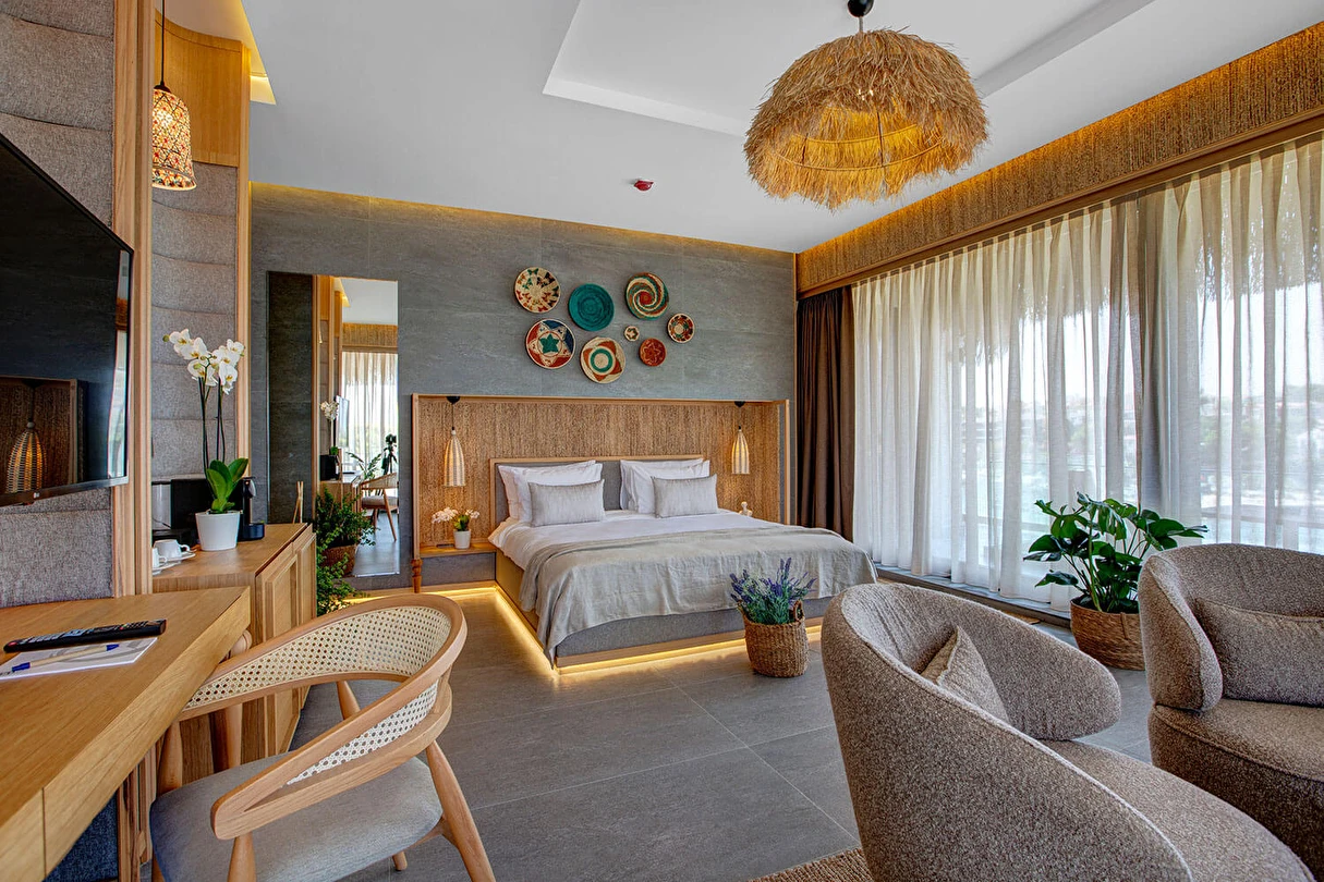 Odalarınızın rustik ve bohem tasarımıyla kendinizi Çeşme’den çok uzakta hissedebilir ve özel yaratılmış bahçe-balkon alanlarınızda keyifli anlar geçirerek konforun tadını çıkarabilirsiniz. Otelimizin teras restoranında Geleneksel Türk Mutfağı ve Dünya Mutfağı lezzetlerini muhteşem manzara eşliğinde tadabilirsiniz. Tarihi dokusuna hayran kalacağınız çeşme kalesini ziyaret edebilir, keşfetmenizi bekleyen bütün güzellikleri görebilirsiniz. Size bu seyahatinizde ışık tutmaktan, kendinizi evinizde gibi hissetmenize yardımcı olmaktan mutluluk duyarız.