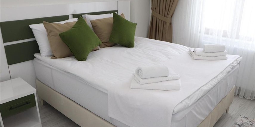 Tüm odalarımız 1+1 ve 54 m² kullanım alanına sahip süit odalardır. 6 adet çift kişilik, 36 adet tek kişilik yatak bulunmaktadır.