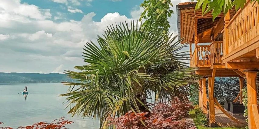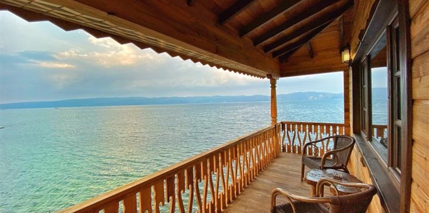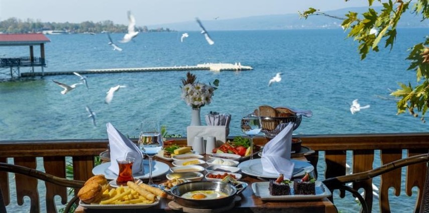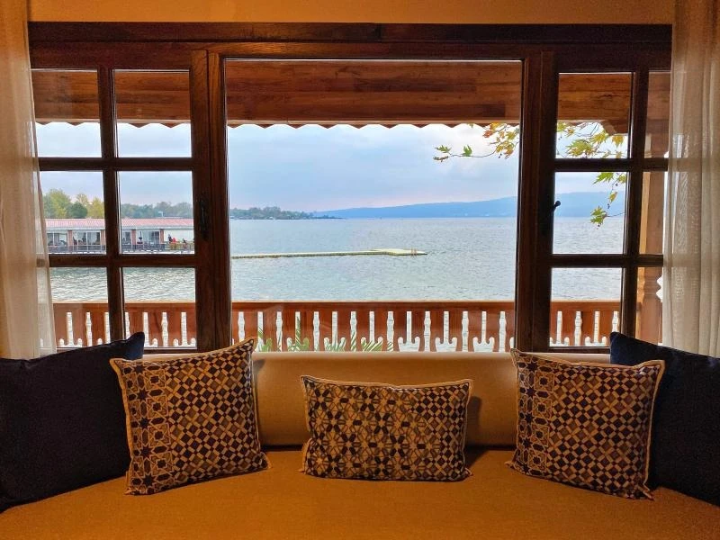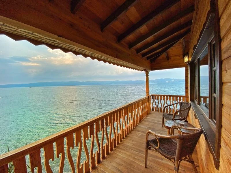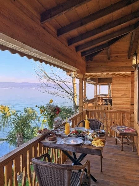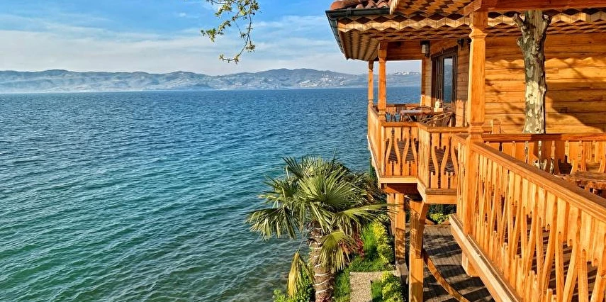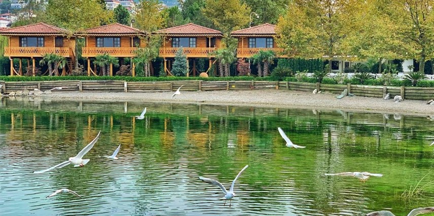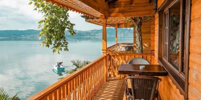 Daha Fazla GösterKaradeniz’e özgü serender mimarisini yansıtan evleri ile misafirlerini ağırlayan tesis, özel bir konsepte göre dekore edilmiş odaları ile şık ve konforlu bir konaklama atmosferi sunuyor. Sapanca Gölü’nün manzarasına hakim konumdaki tesisin özel bir iskelesi ve iskele üzerinde açık ve kapalı alanları ile hizmet veren bir restoranı bulunuyor. Kahvaltı keyfini odalarında yaşamak isteyen misafirler için tesis, odaya kahvaltı servisi hizmeti de sunuyor. Ayrıca tesiste cumartesi akşamları canlı müzik programı gerçekleşiyor. Sapanca Gölü kıyısında, doğa ile baş başa bir konumda bulunan Sasa Harmanlık, Karadeniz mimarisini yansıtan serender tarzı evleri ile huzurlu bir tatilin kapılarını aralıyor. Sapanca Gölü’nün muhteşem manzarasının tadını çıkarabileceğiniz tesis, şık ve sıcak dekorasyonu ile misafirlerini ağırlıyor. Tesisin özel bir konsepte göre özenle dekore edilen odaları, konforlu bir konaklama deneyimi için sizi bekliyor. Kendine ait iskelesi bulunan tesis, iskele üzerinde bulunan restoranı ile manzara eşliğinde yemeklerinizi yiyebileceğiniz keyifli bir atmosfere sahip. Açık ve kapalı restoran alanına sahip tesiste dileyen misafirler için odaya kahvaltı servisi bulunuyor. Ayrıca cumartesi akşamları tesiste canlı müzik programı gerçekleşiyor. Sapanca Gölü kıyısında yer alan Sasa Harmanlık, doğa ile iç içe olmak ve huzurlu bir tatilin tadını çıkarmak isteyen misafirler için güzel bir atmosfer sunuyor. Tesis, tüm misafirlerine konforlu bir konaklama deneyimi vadediyor.