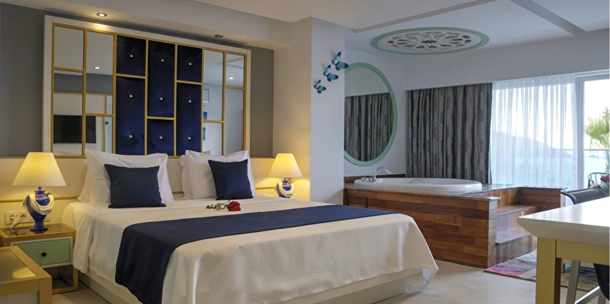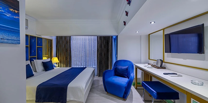 Modern ve şık tasarıma sahip odalarımız, rahatlığınız düşünülerek özenle hazırlanmıştır. Özel balkonlardan denizin sonsuzluğunu izlerken, tatilin gerçek anlamını keşfedeceksiniz. Zengin açık büfe kahvaltımız, yerel ve taze lezzetlerle güne enerjik bir başlangıç yapmanızı sağlar.