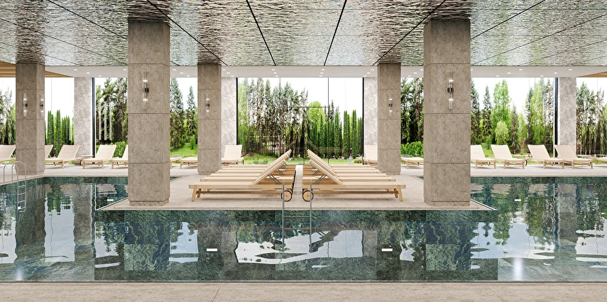 1 Kapalı Havuz (187 m2, 1,40 m. Derinliğinde) & 1 Ayrı Çocuk Havuzu (20 m2, 30 cm derinliğinde) (Kapalı Havuz tatlı suya sahiptir, yalnızca 01.11 ve 31.03 tarihleri arasında açık olup ve ısıtılmaktadır)