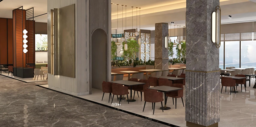 Sabah kahvaltısı, öğle ve akşam yemekleri açık büfe olup tesisin belirlediği markalar dahilinde içecekler 24 saat ücretsizdir.