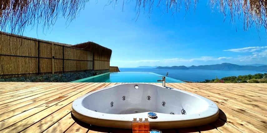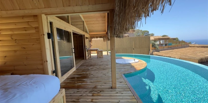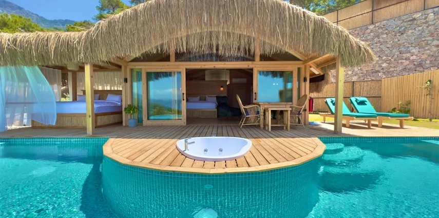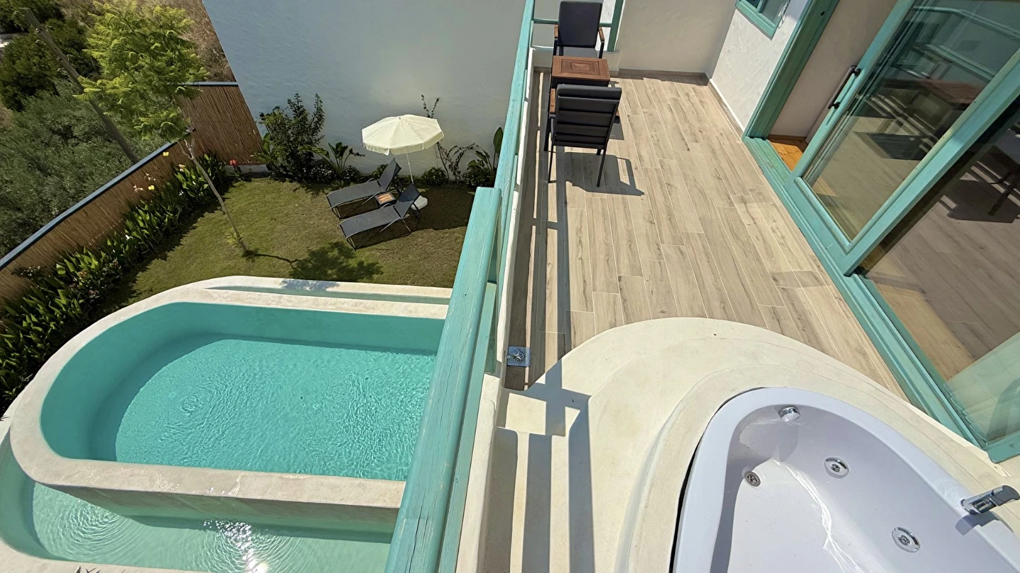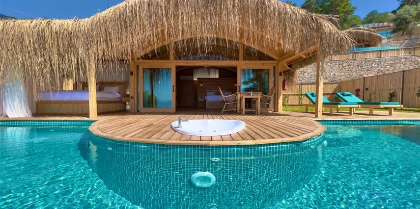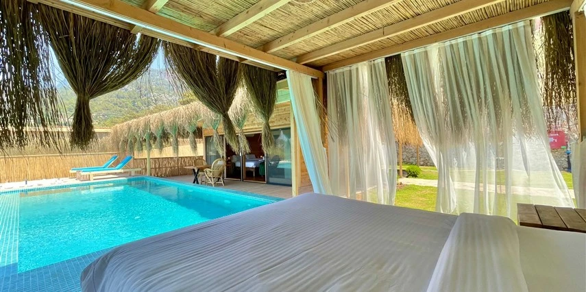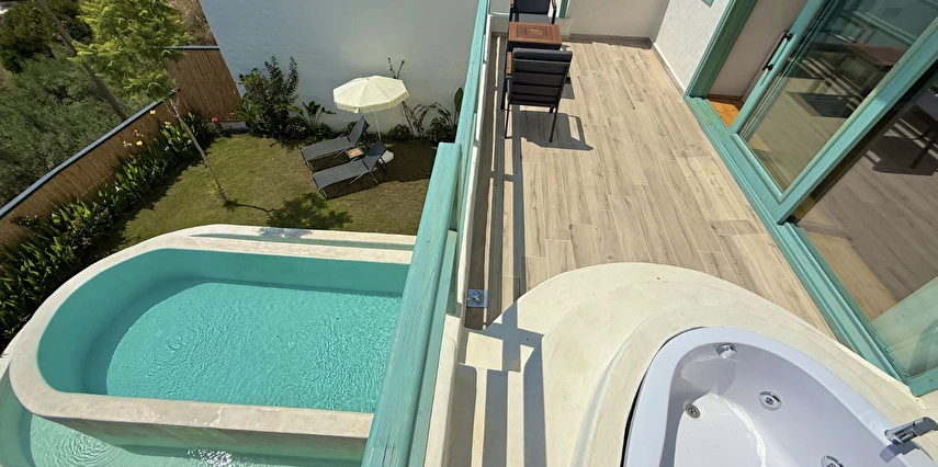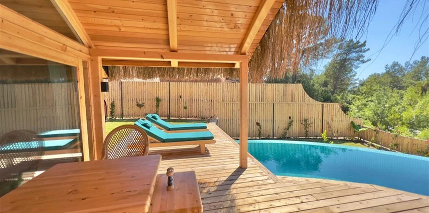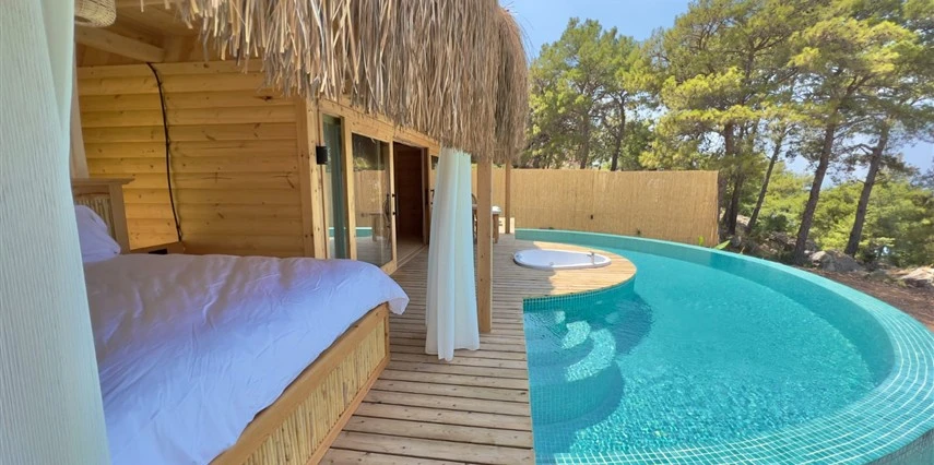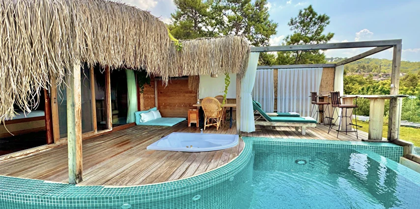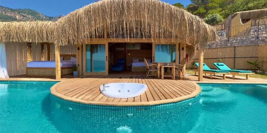 Otel kuralları gereği tesise dışarıdan yiyecek ve içecek kabul edilmiyor. Tesiste kalabalık bir plaj yerine, doğrudan odanızın terasında yer alan tamamen size ait özel havuz ve jakuzi ayrıcalığını yaşayabiliyorsunuz.