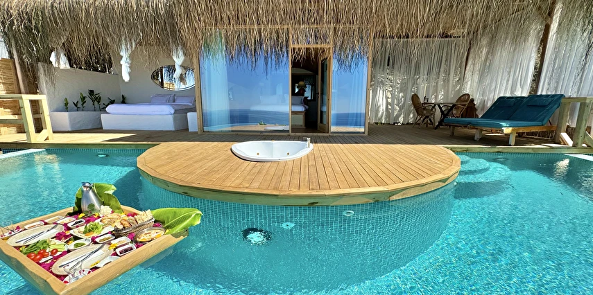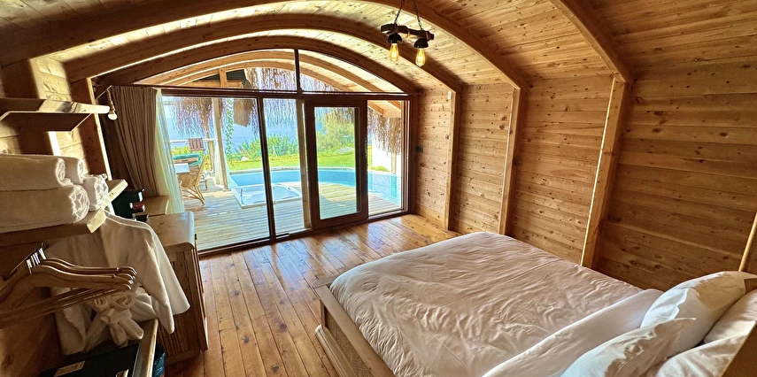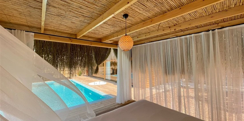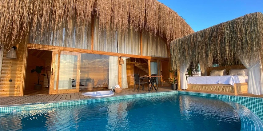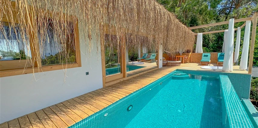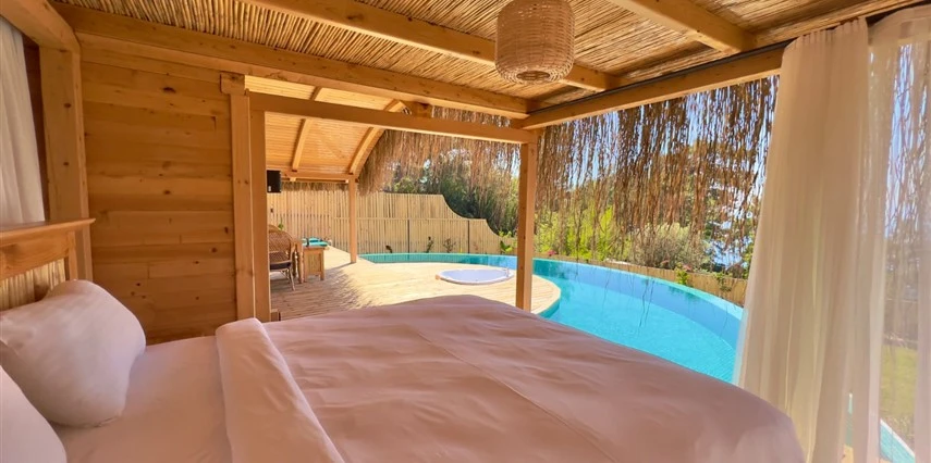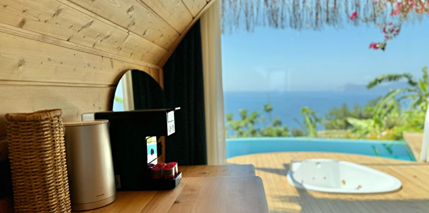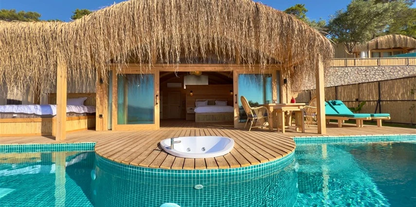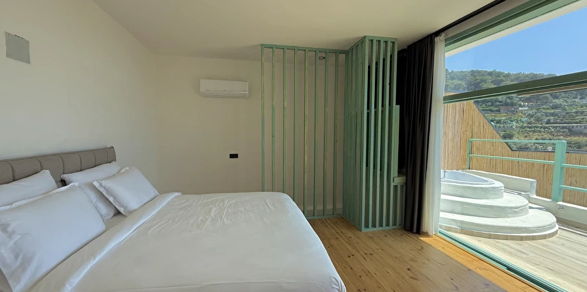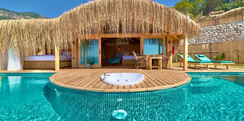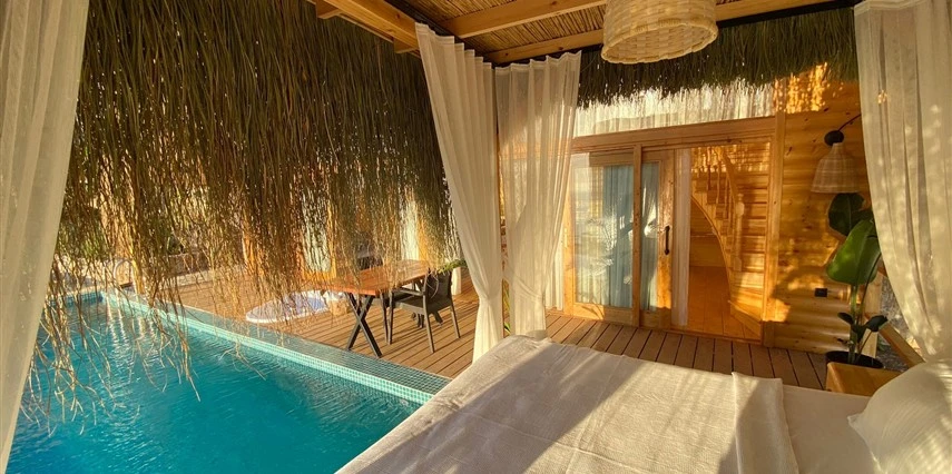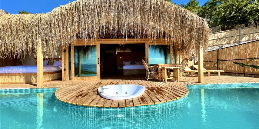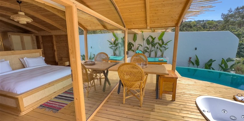 Otel kuralları gereği tesise dışarıdan yiyecek ve içecek kabul edilmiyor. Tesiste kalabalık bir plaj yerine, doğrudan odanızın terasında yer alan tamamen size ait özel havuz ve jakuzi ayrıcalığını yaşayabiliyorsunuz.