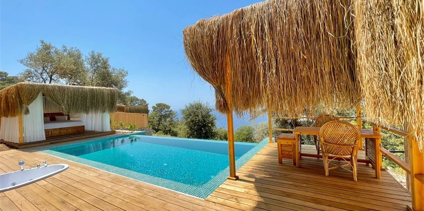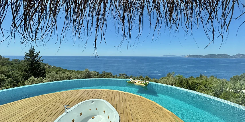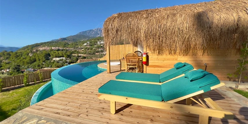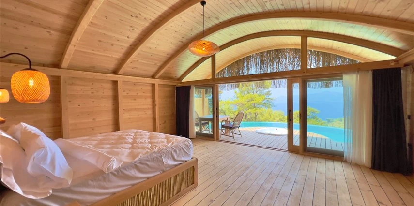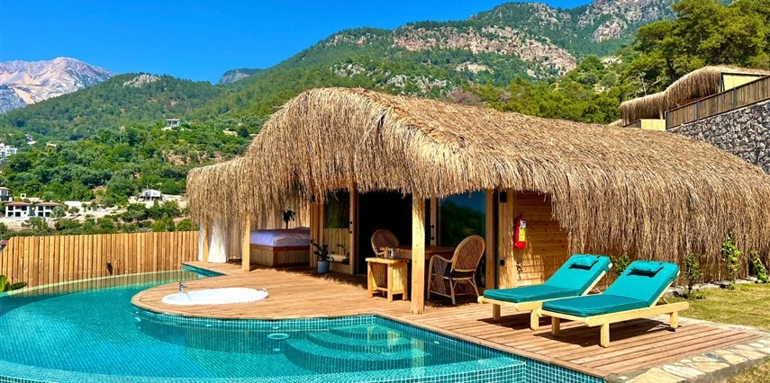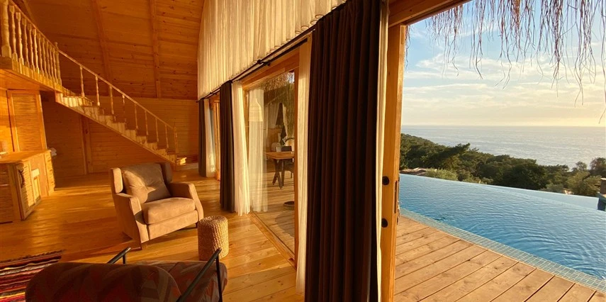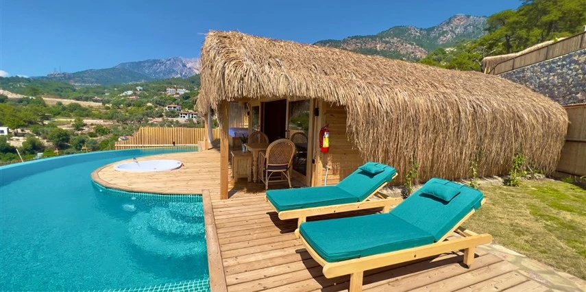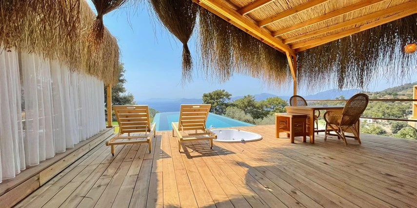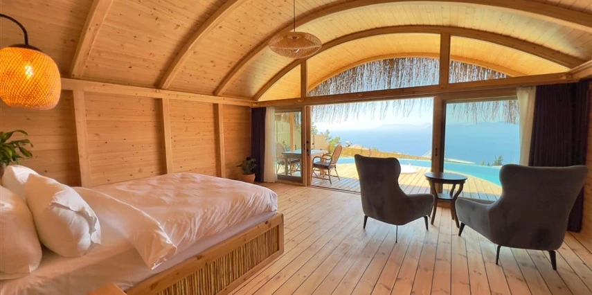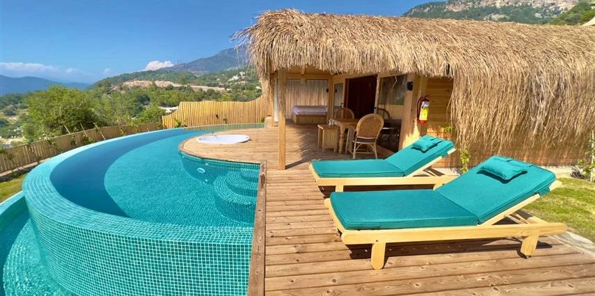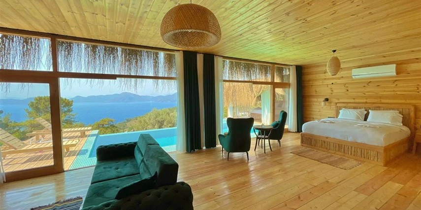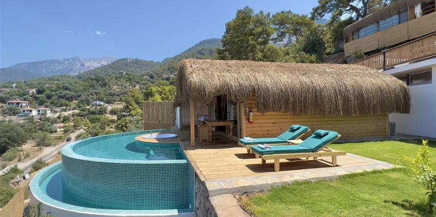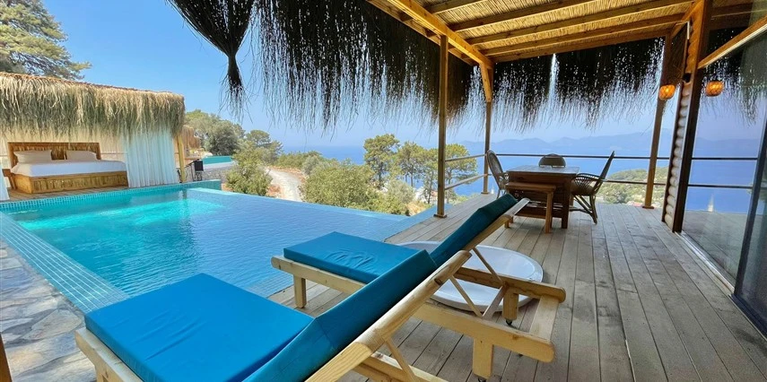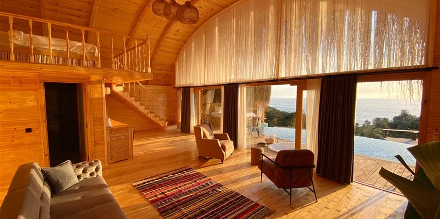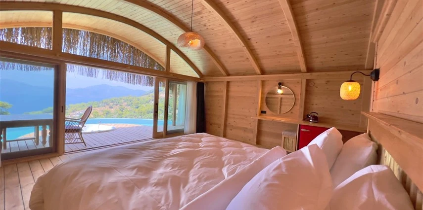 Fethiye'nin huzur veren doğasında misafirlerini ağırlayan Seaview Faralya Otel, sedir ağaçlarından tasarlanmış mimarisiyle sizi evinizde hissettiriyor.