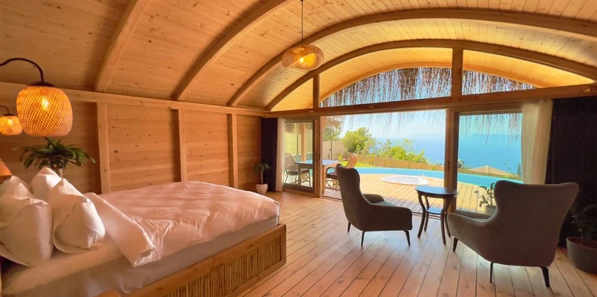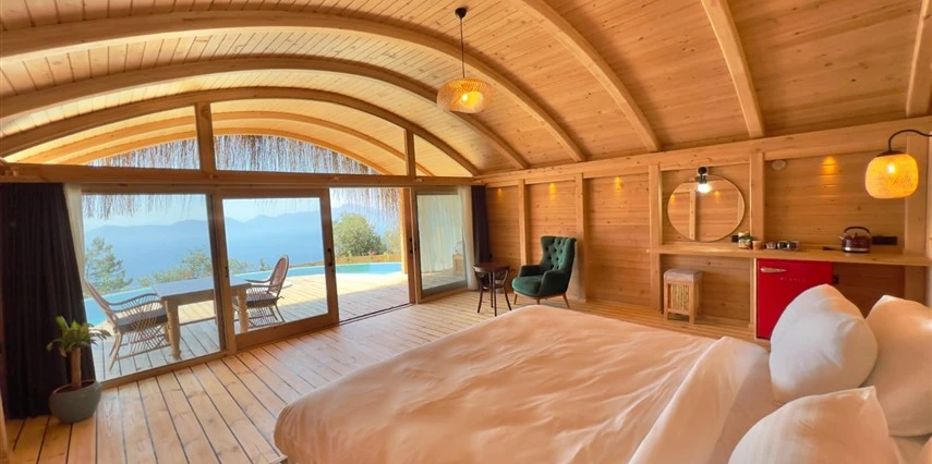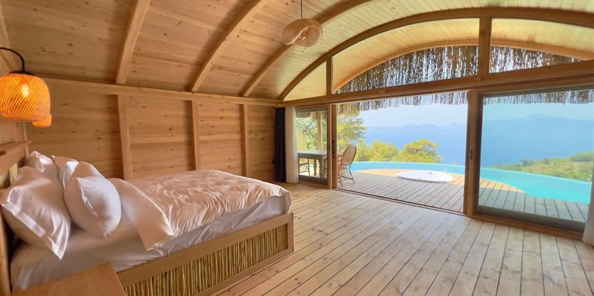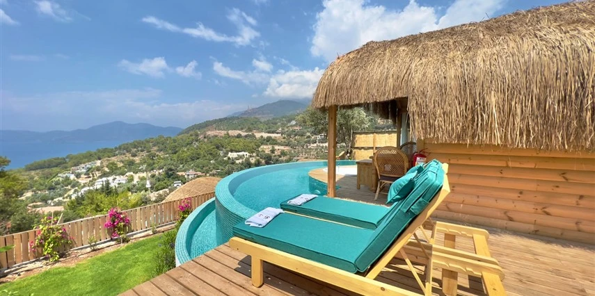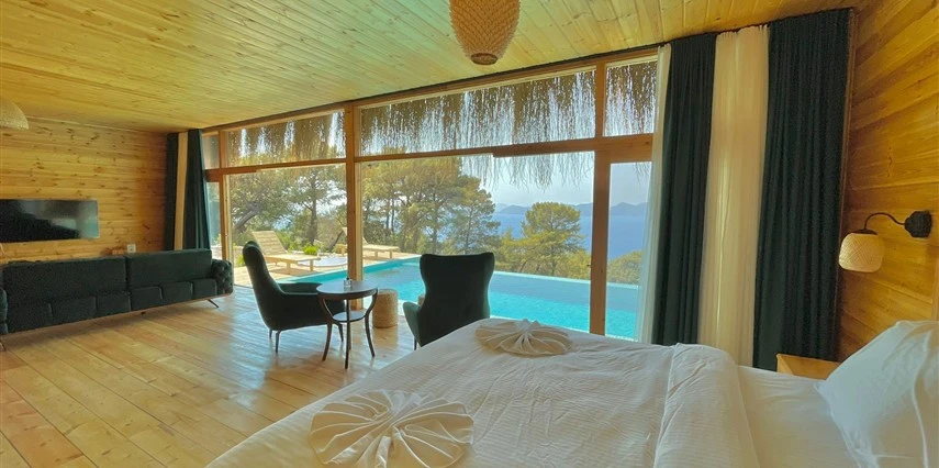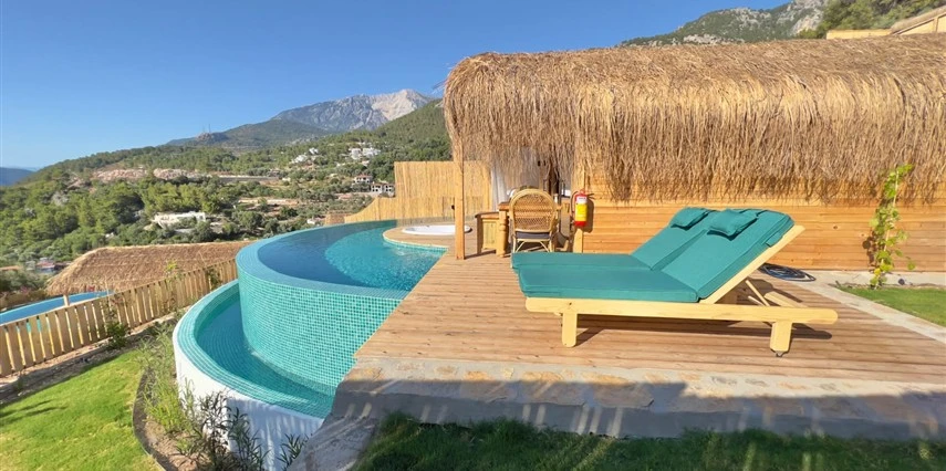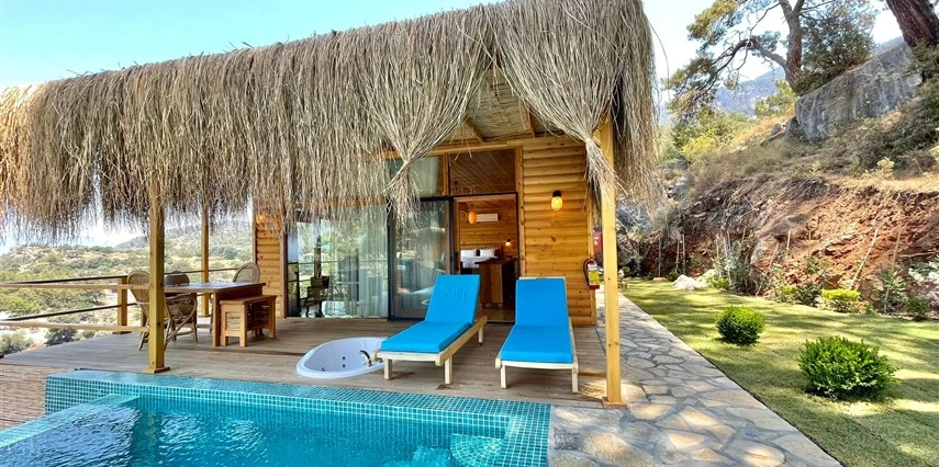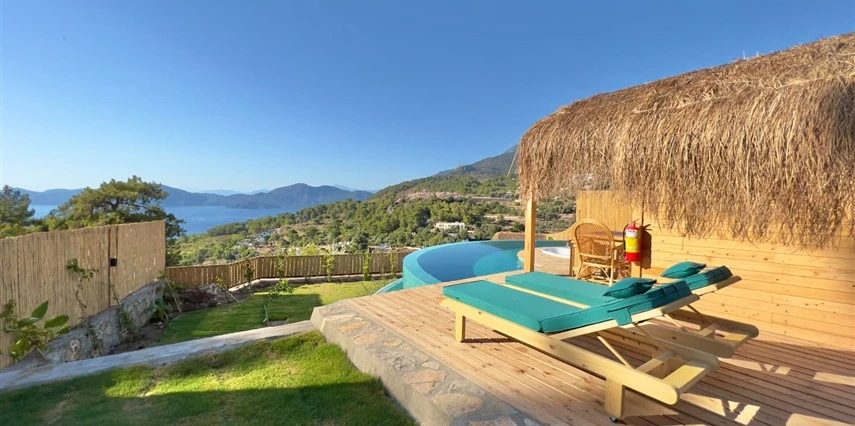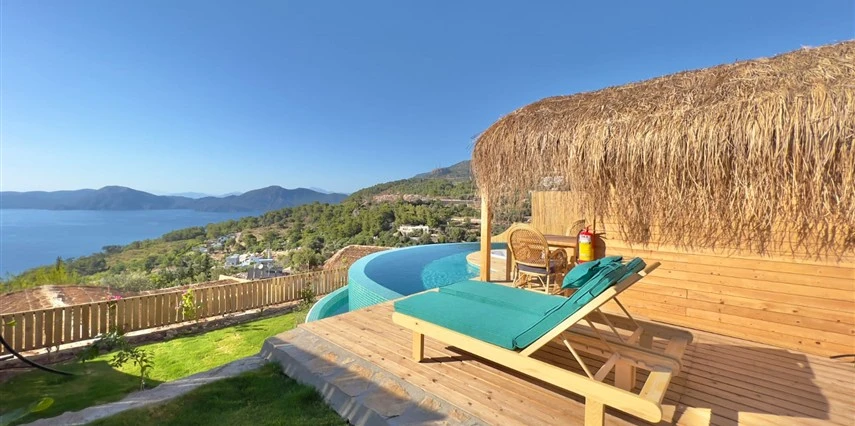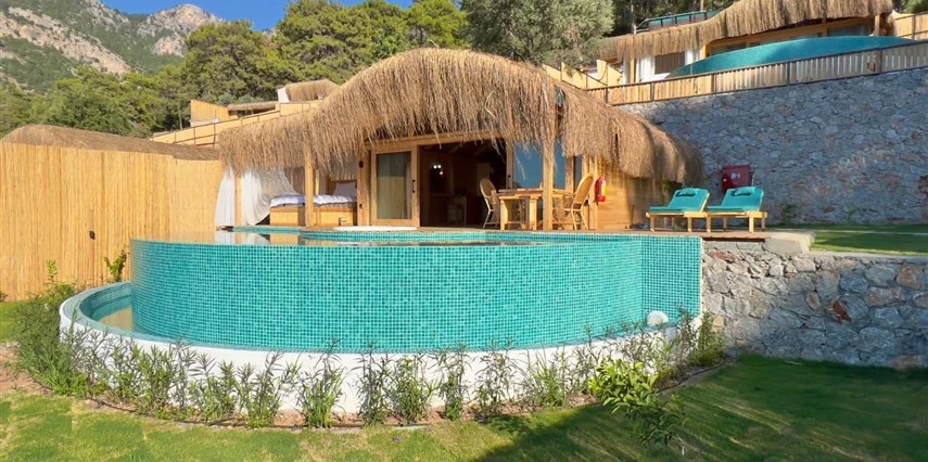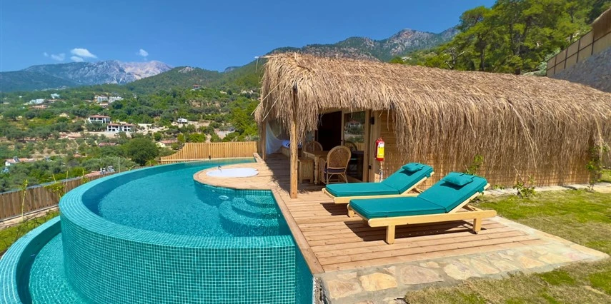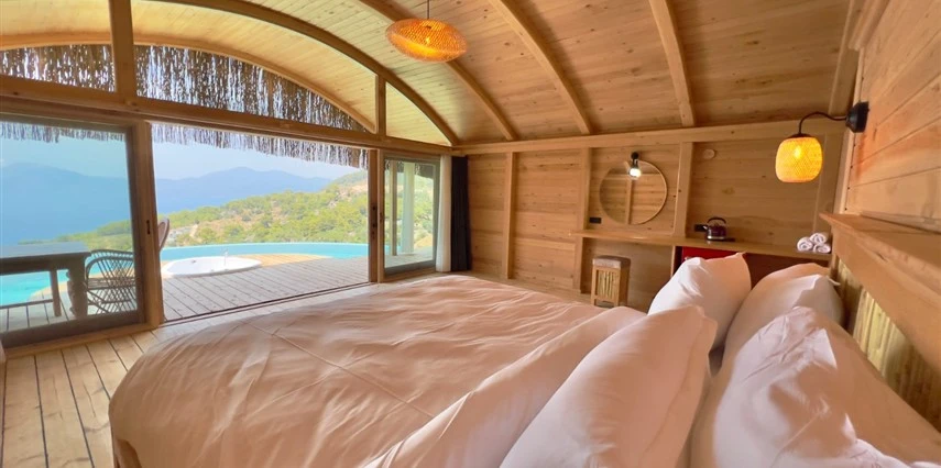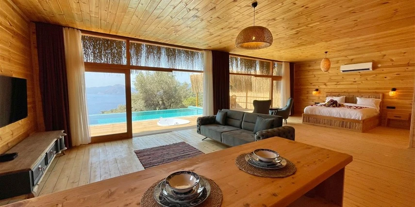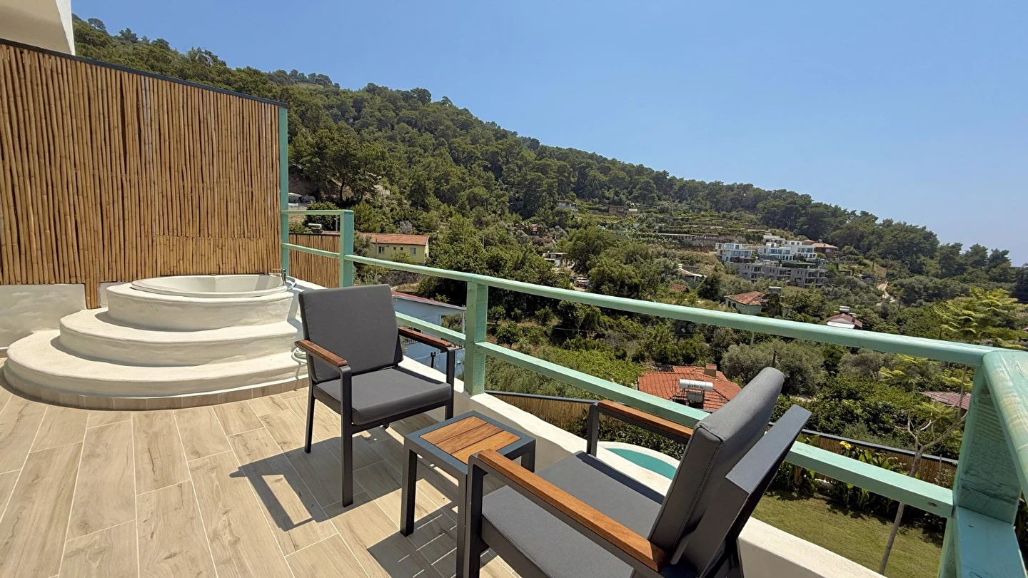 Fethiye'nin huzur veren doğasında misafirlerini ağırlayan Seaview Faralya Otel, sedir ağaçlarından tasarlanmış mimarisiyle sizi evinizde hissettiriyor.