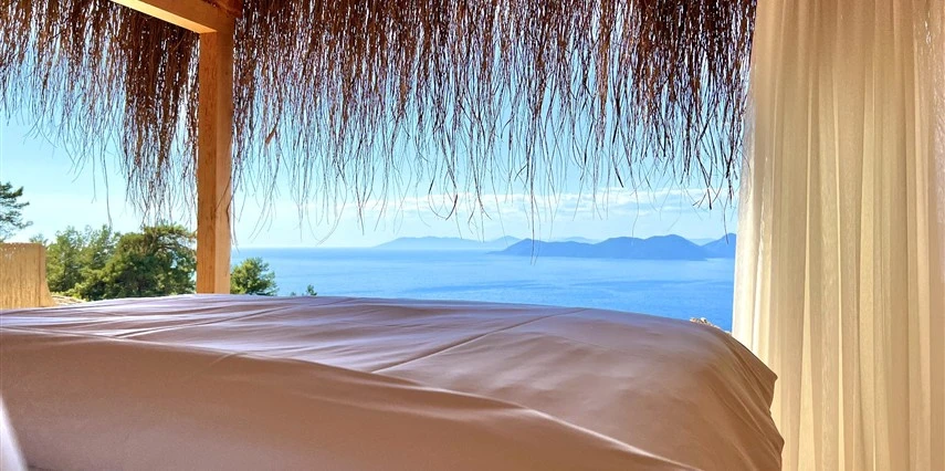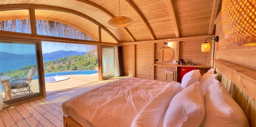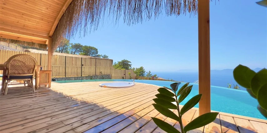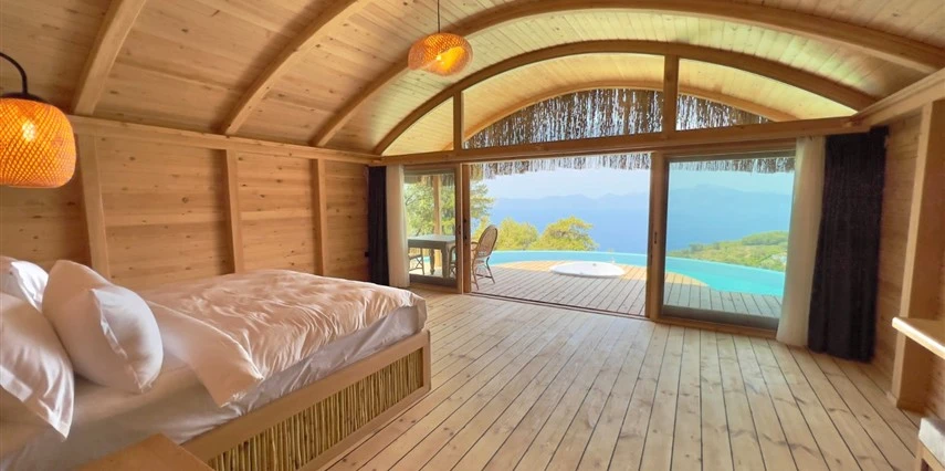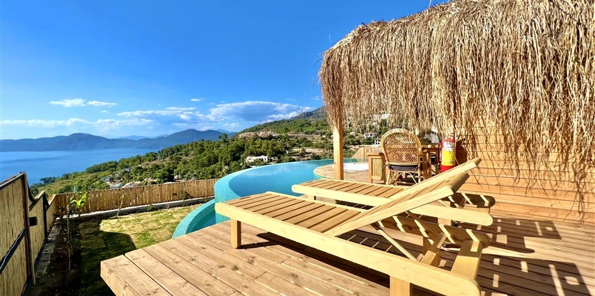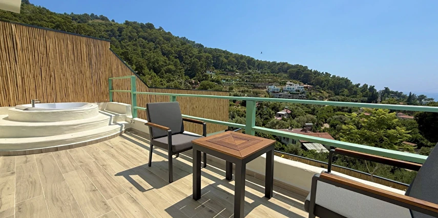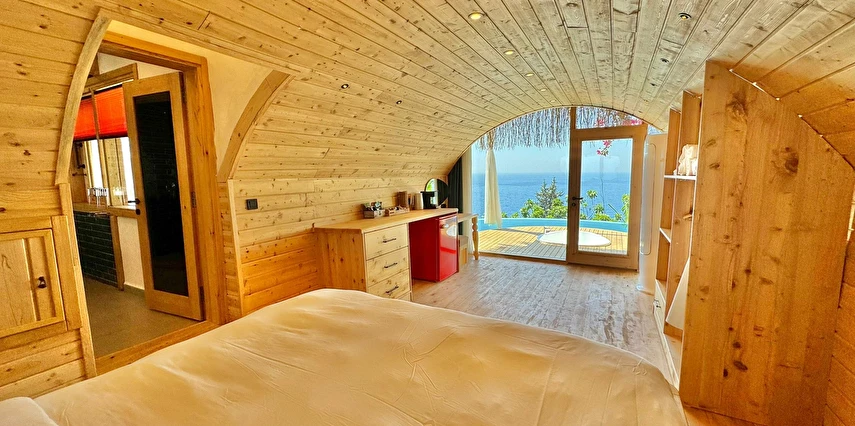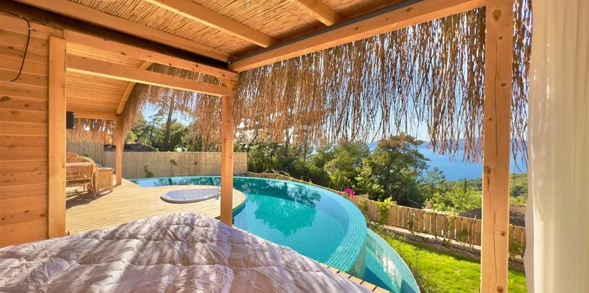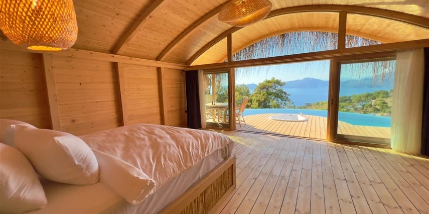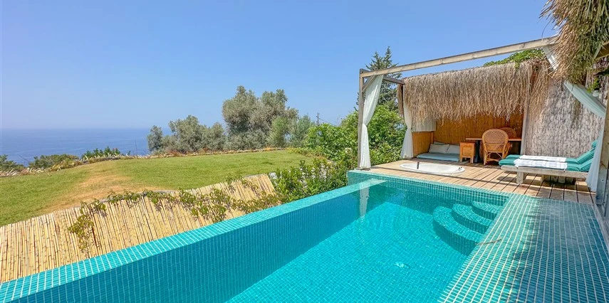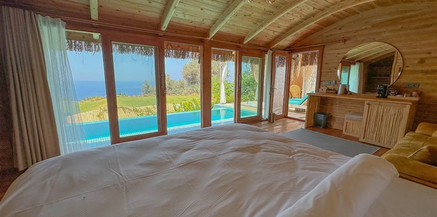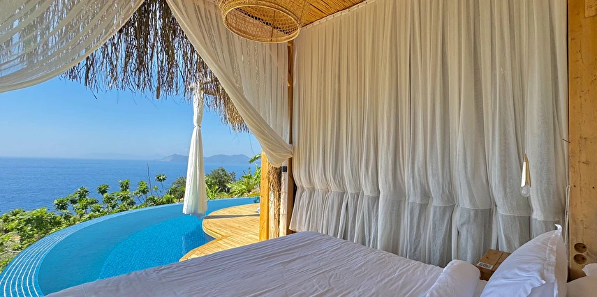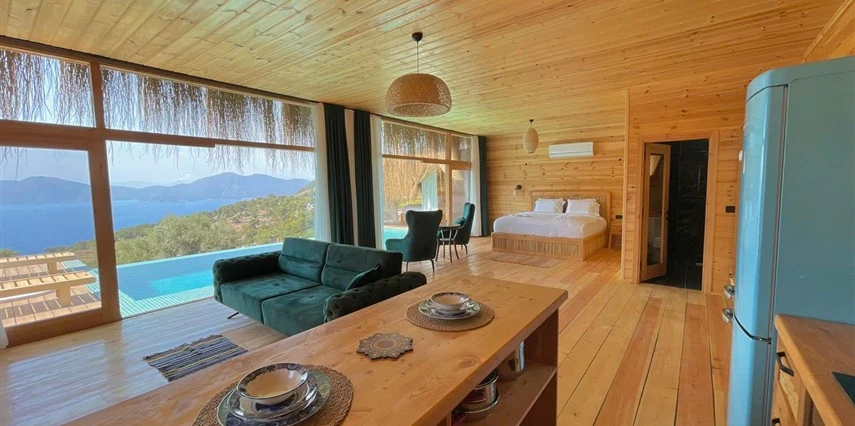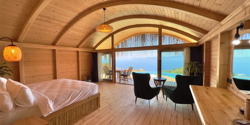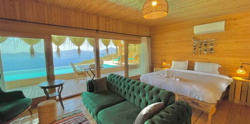 Fethiye'nin huzur veren doğasında misafirlerini ağırlayan Seaview Faralya Otel, sedir ağaçlarından tasarlanmış mimarisiyle sizi evinizde hissettiriyor.