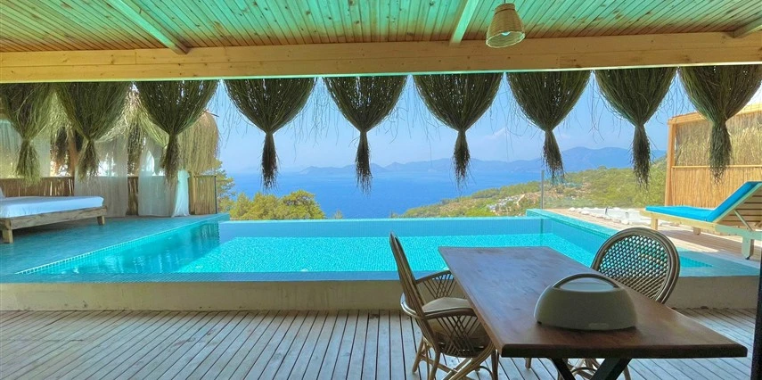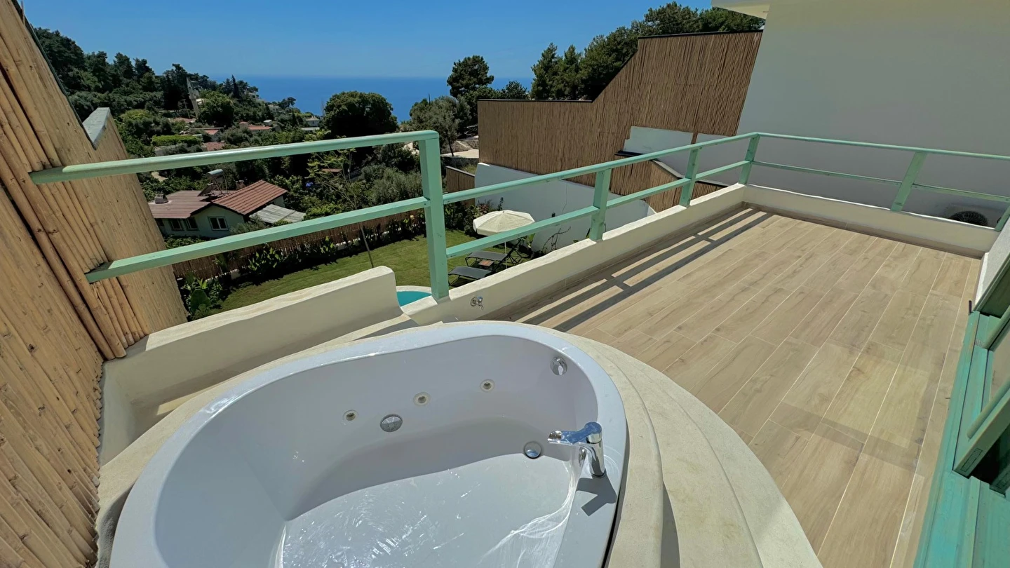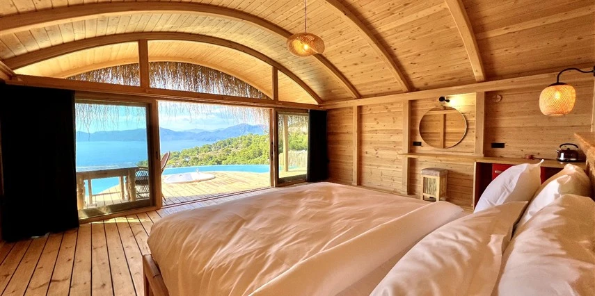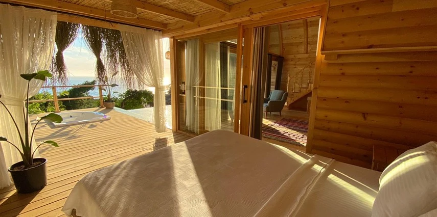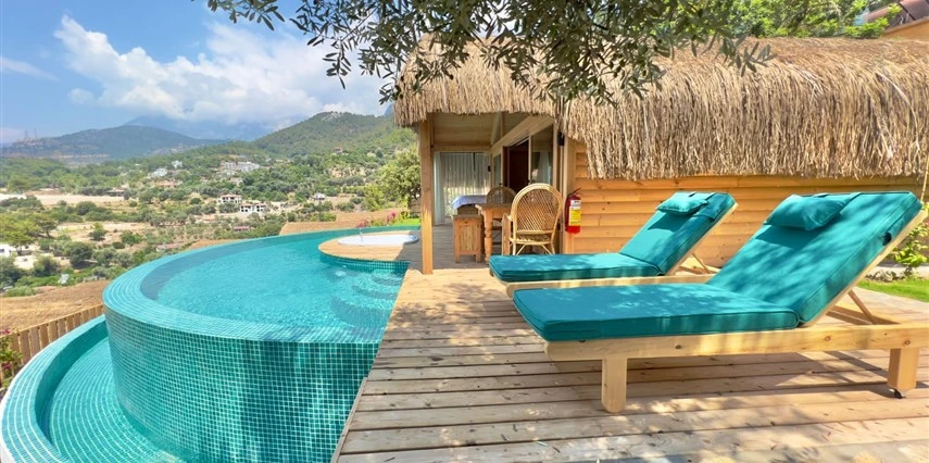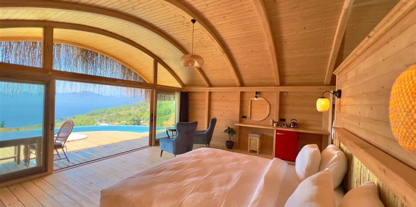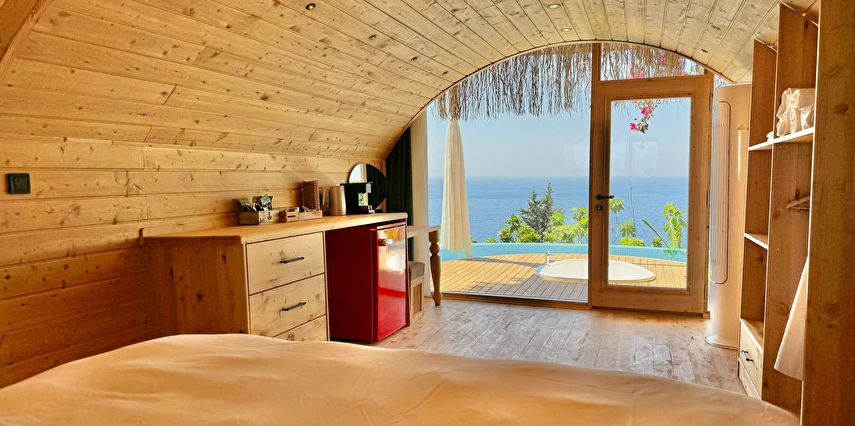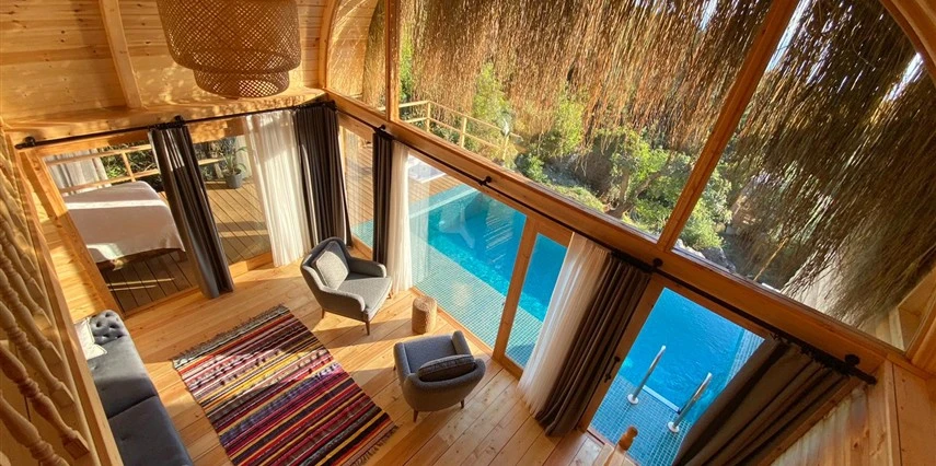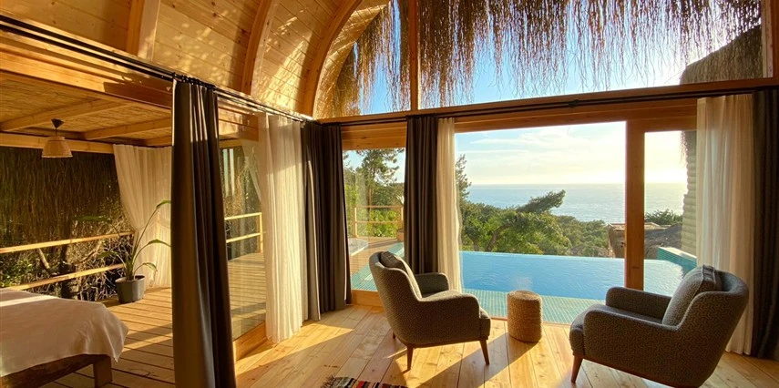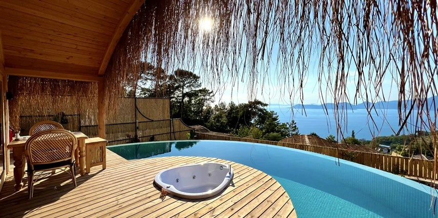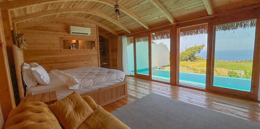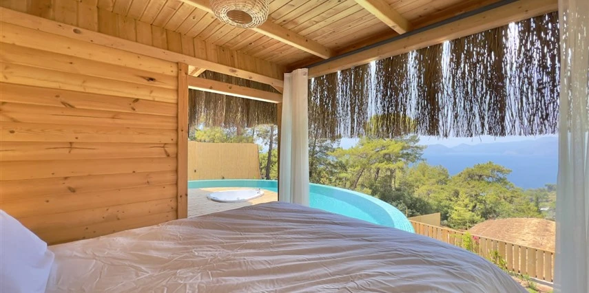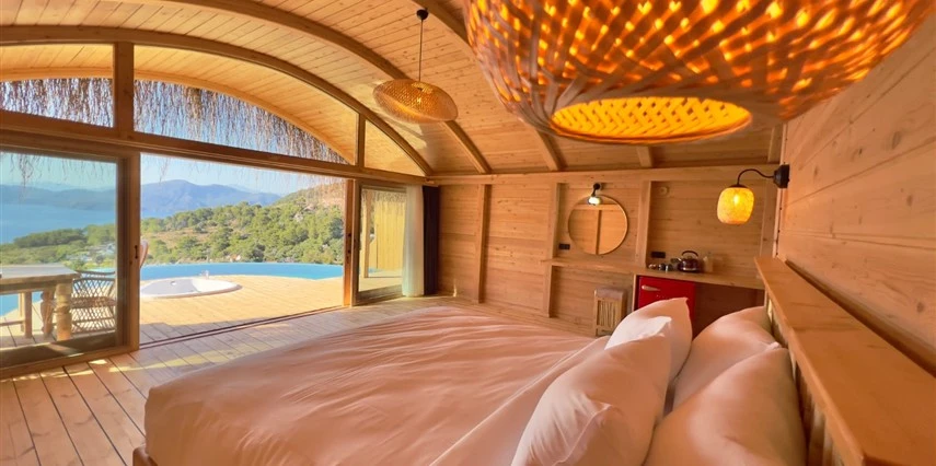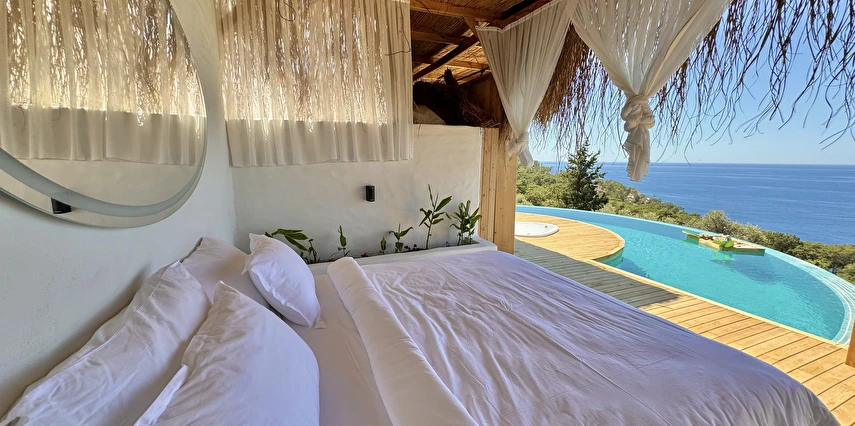 Fethiye'nin huzur veren doğasında misafirlerini ağırlayan Seaview Faralya Otel, sedir ağaçlarından tasarlanmış mimarisiyle sizi evinizde hissettiriyor.