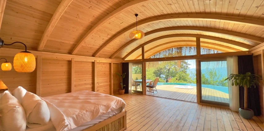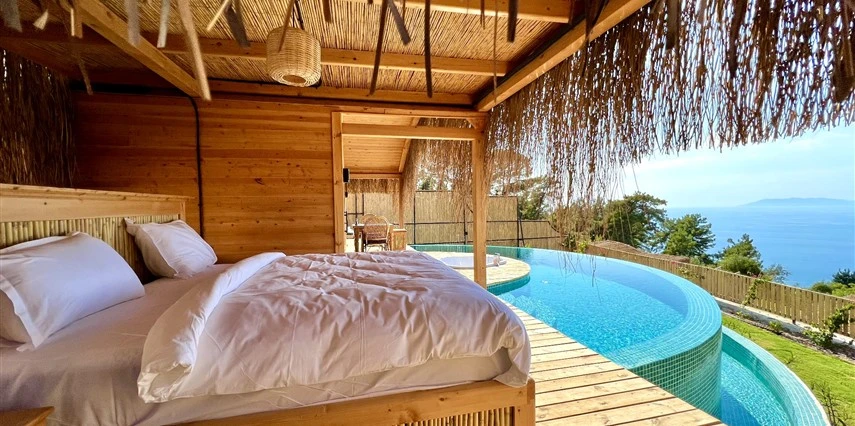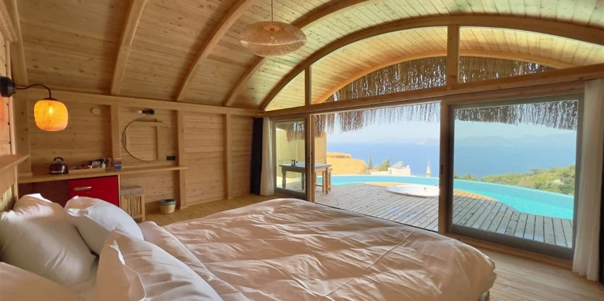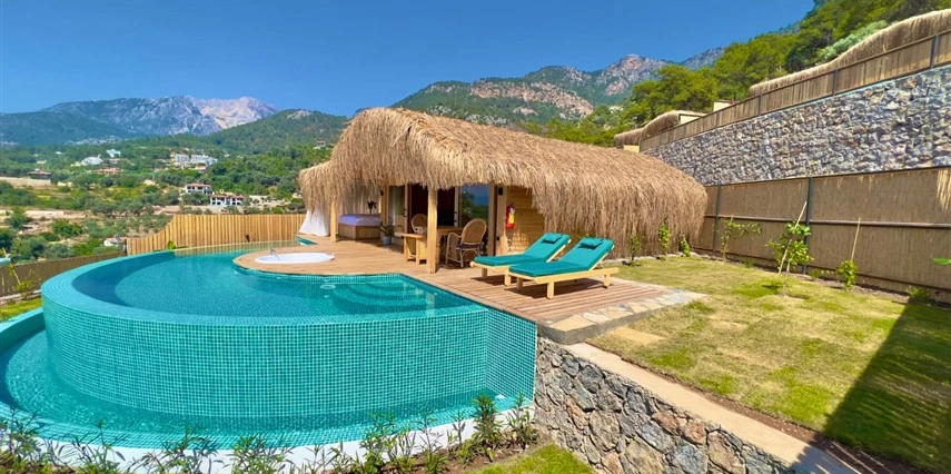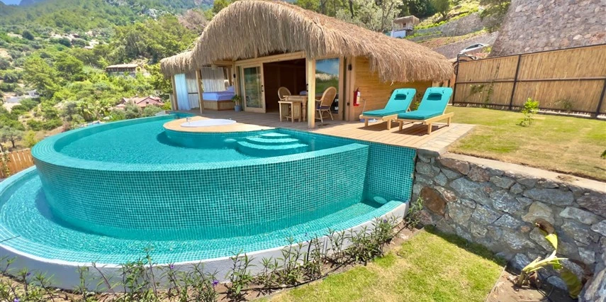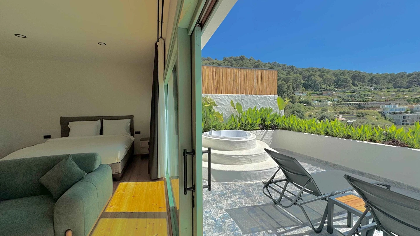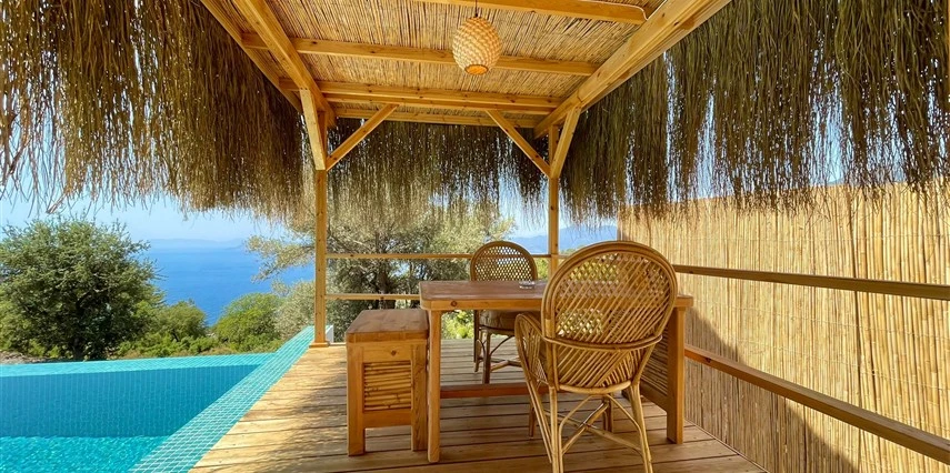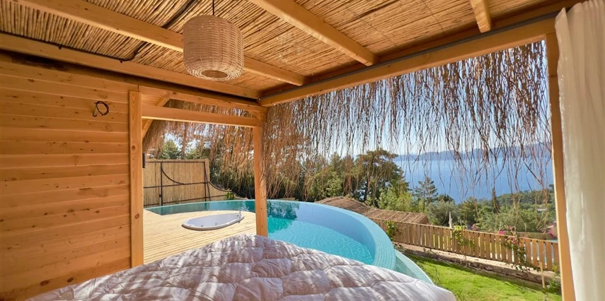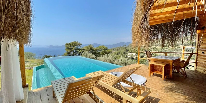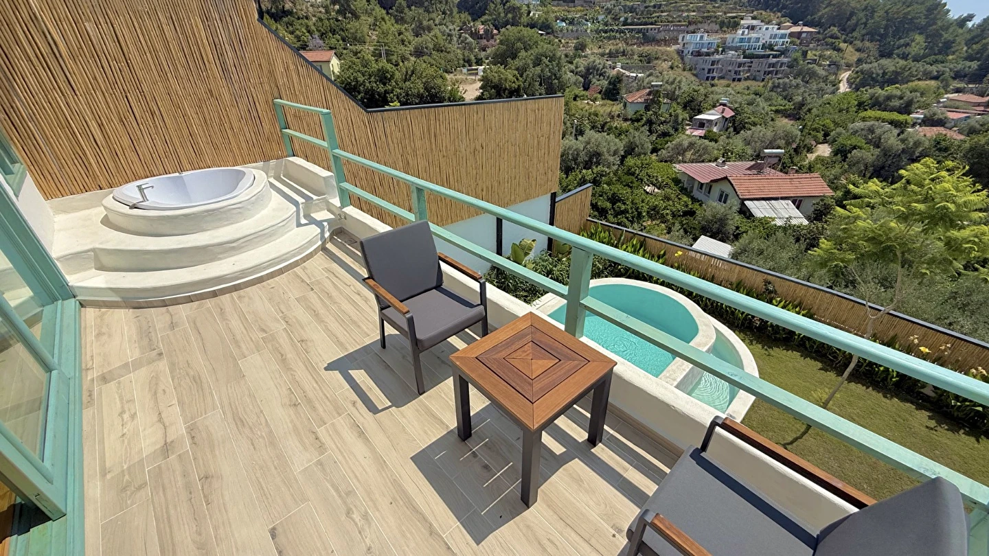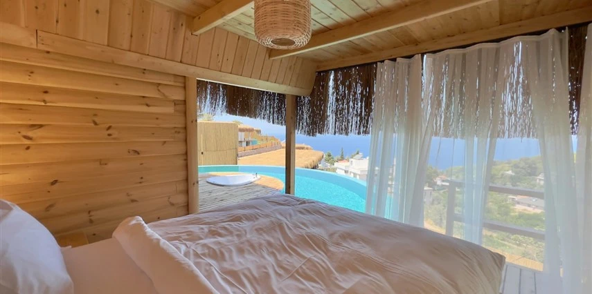 Fethiye'nin huzur veren doğasında misafirlerini ağırlayan Seaview Faralya Otel, sedir ağaçlarından tasarlanmış mimarisiyle sizi evinizde hissettiriyor.