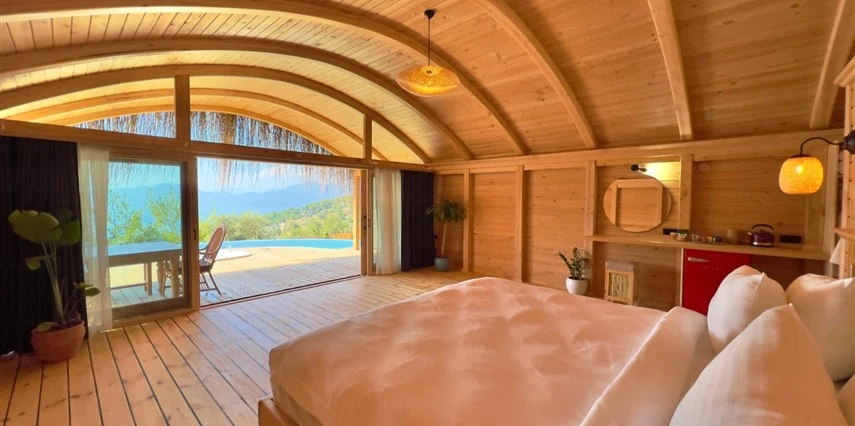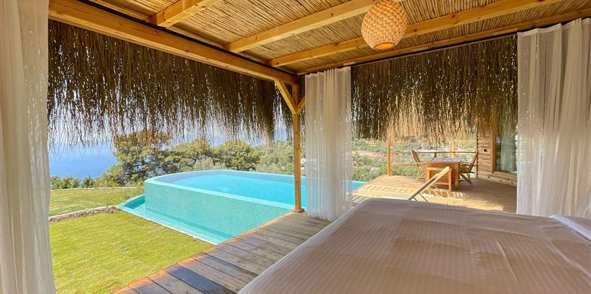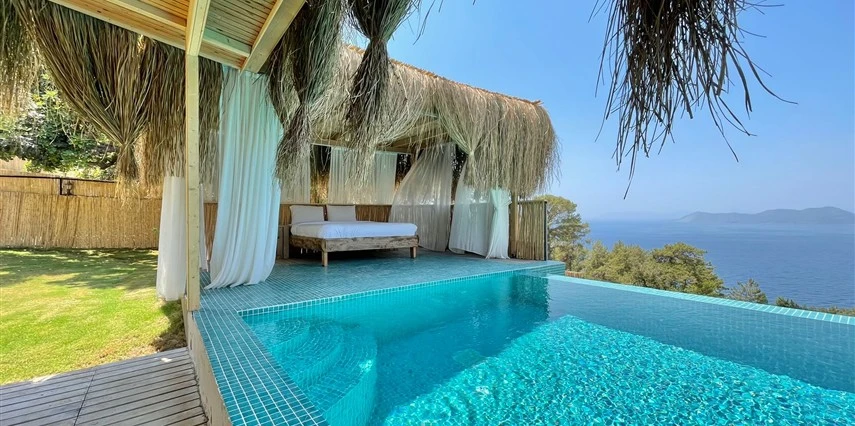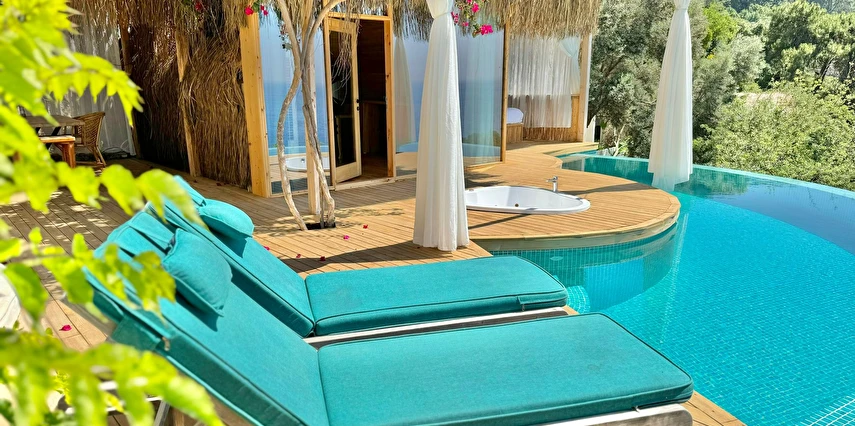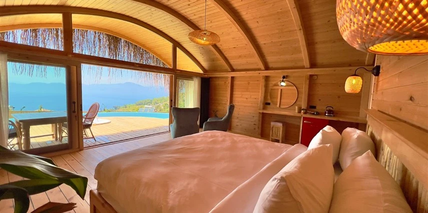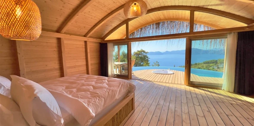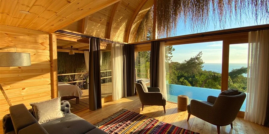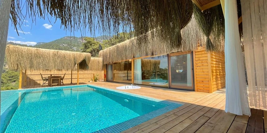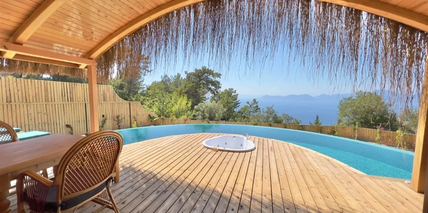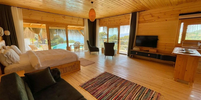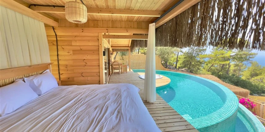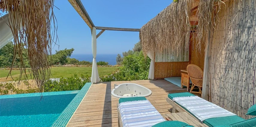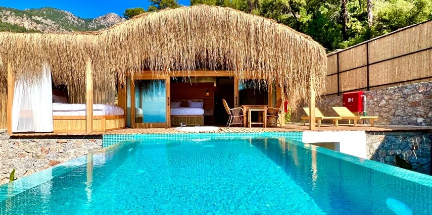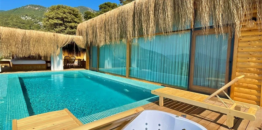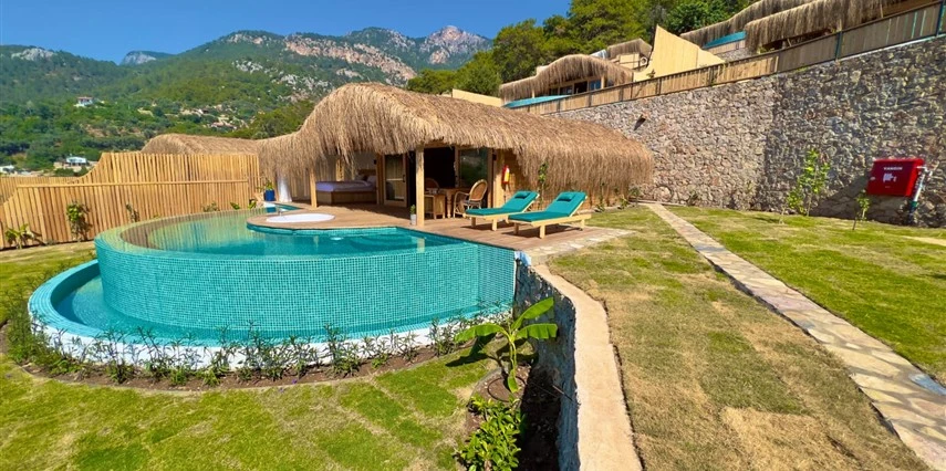 Fethiye'nin huzur veren doğasında misafirlerini ağırlayan Seaview Faralya Otel, sedir ağaçlarından tasarlanmış mimarisiyle sizi evinizde hissettiriyor.