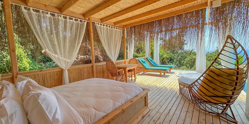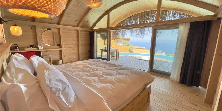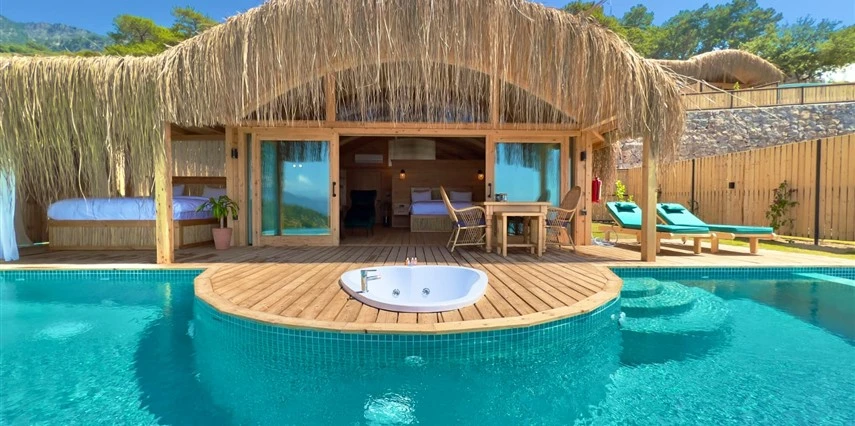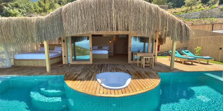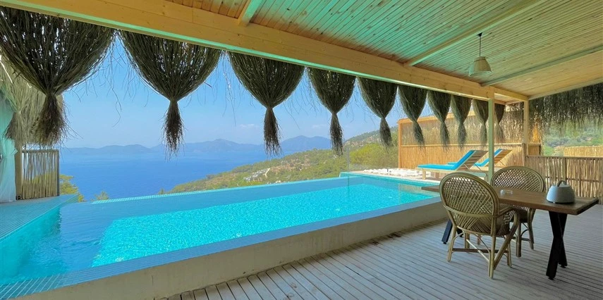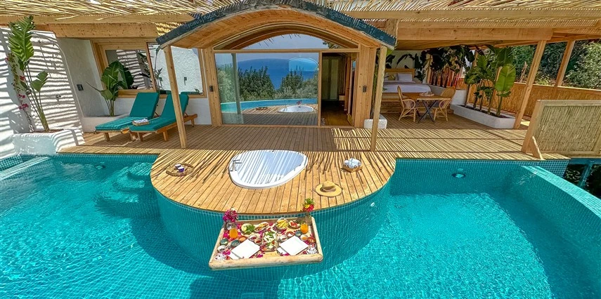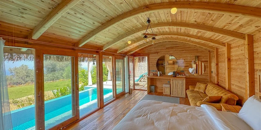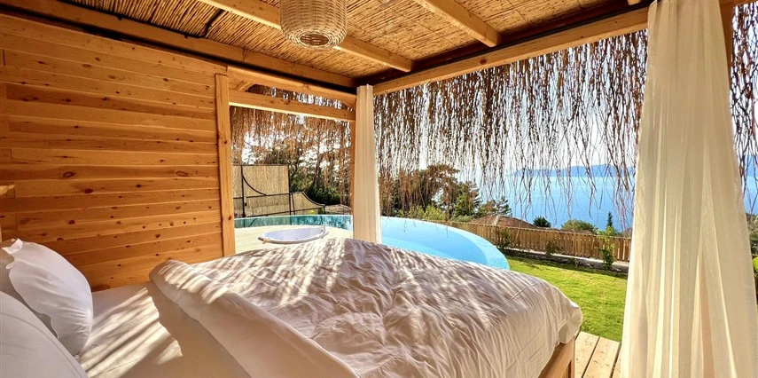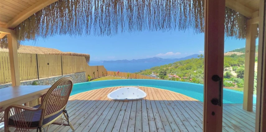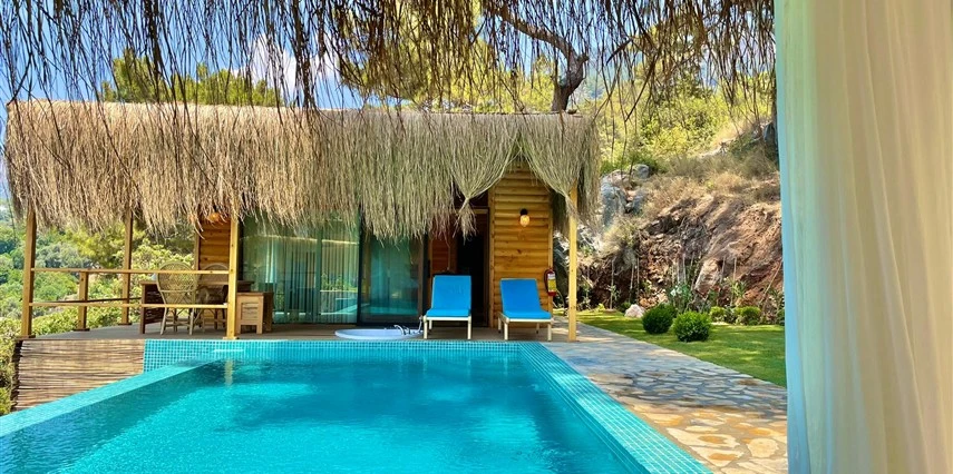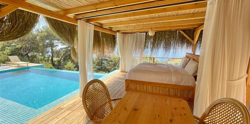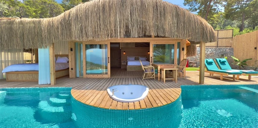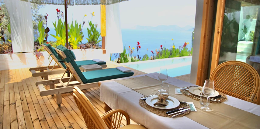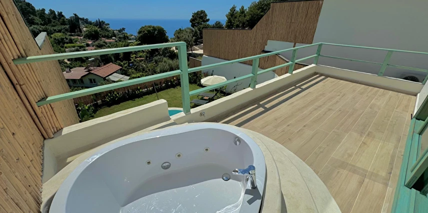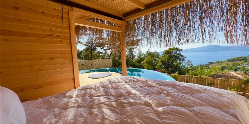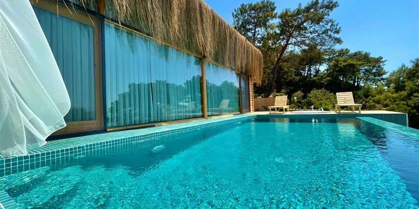 Fethiye'nin huzur veren doğasında misafirlerini ağırlayan Seaview Faralya Otel, sedir ağaçlarından tasarlanmış mimarisiyle sizi evinizde hissettiriyor.