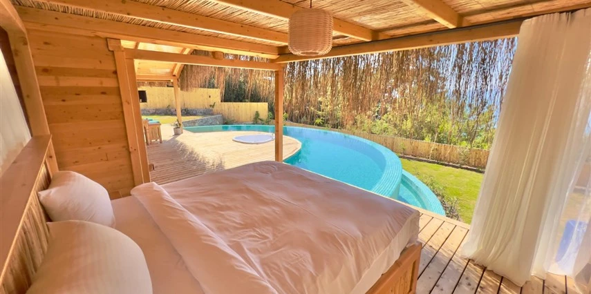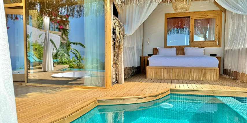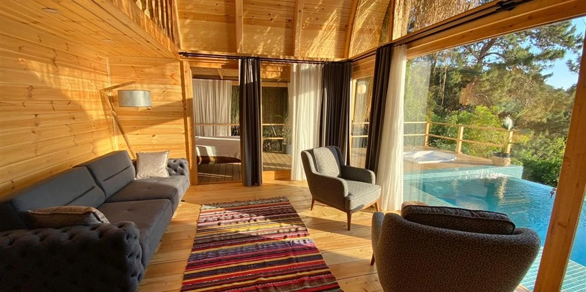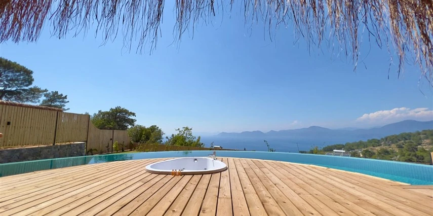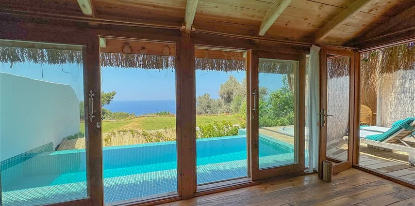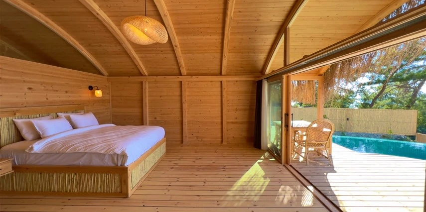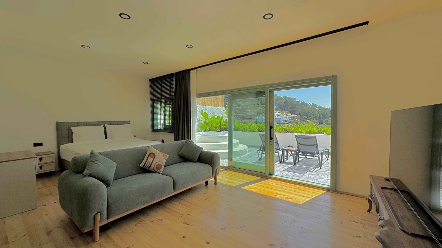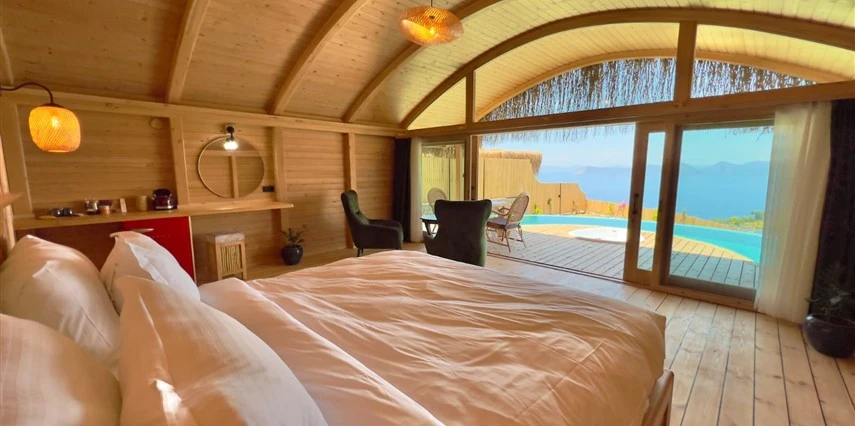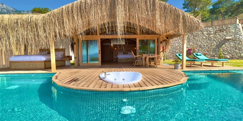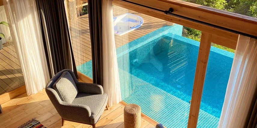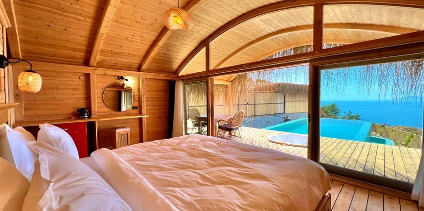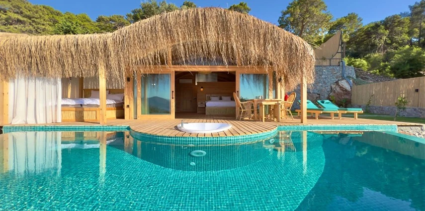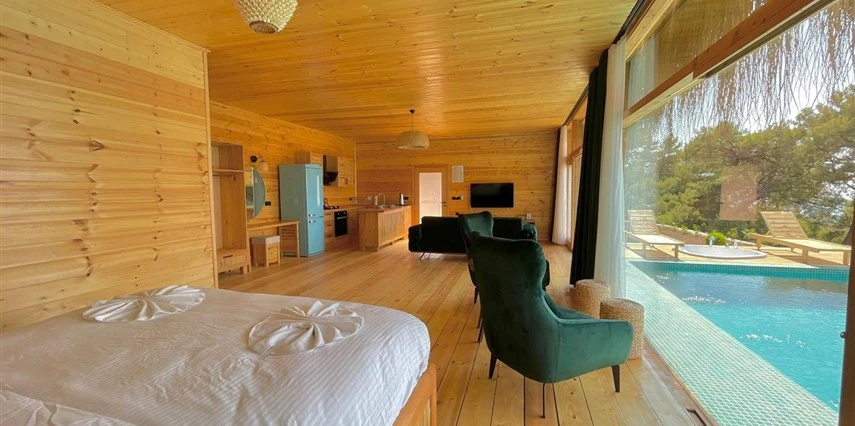 Fethiye'nin huzur veren doğasında misafirlerini ağırlayan Seaview Faralya Otel, sedir ağaçlarından tasarlanmış mimarisiyle sizi evinizde hissettiriyor.