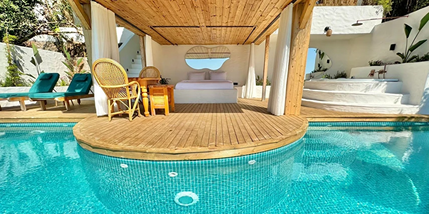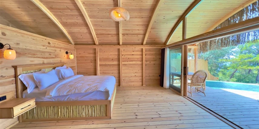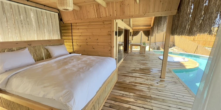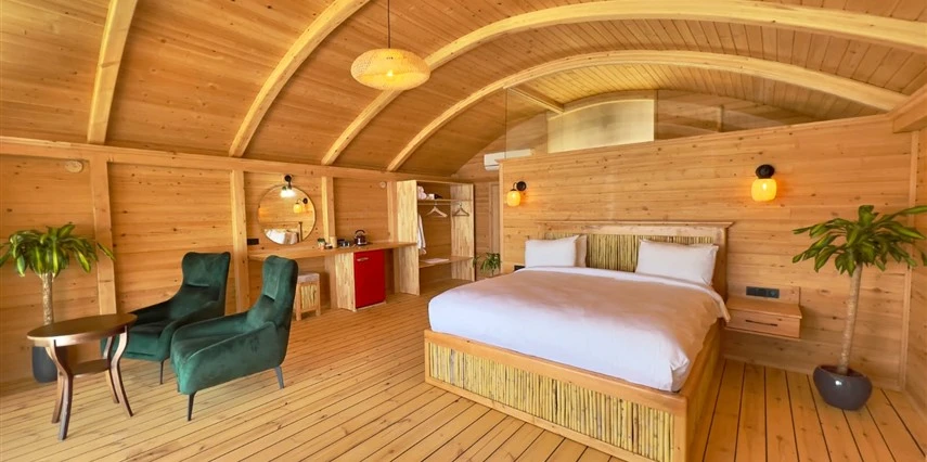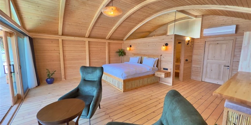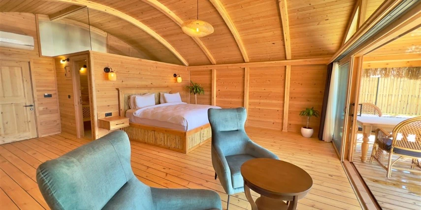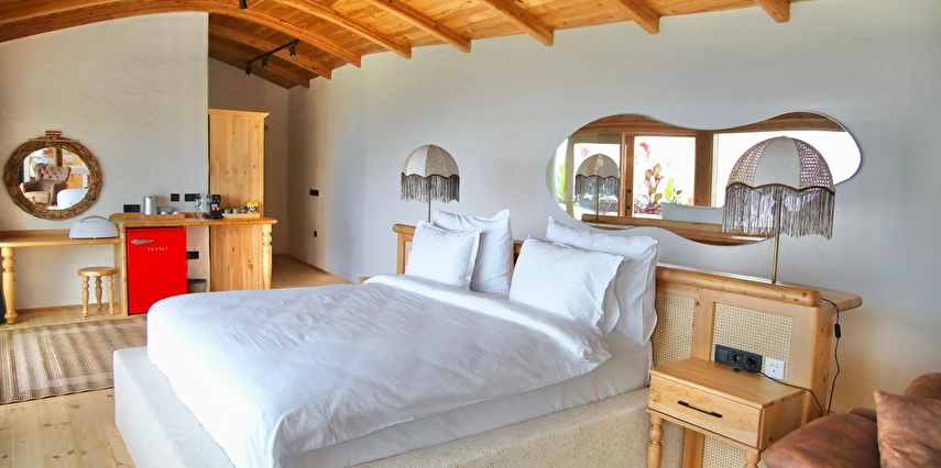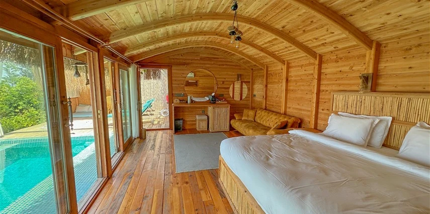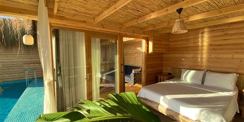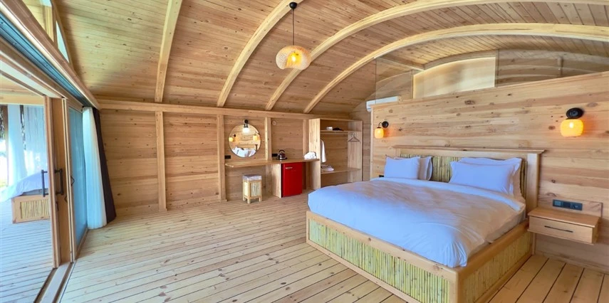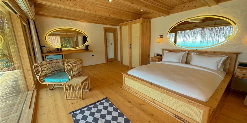 Tesis, birbirinden bağımsız toplam 37 odayla hizmet veriyor; aralarında 800 metre mesafe bulunan Butik Otel bölümünde 12 oda, Suit Otel bölümünde 21 oda, White House bölümünde 4 oda bulunuyor. Tamamı doğrudan deniz manzarasına açılan ahşap Butik Odalar ve Suit Odalar, geniş teras, özel havuz ve şezlong detaylarıyla öne çıkıyor.