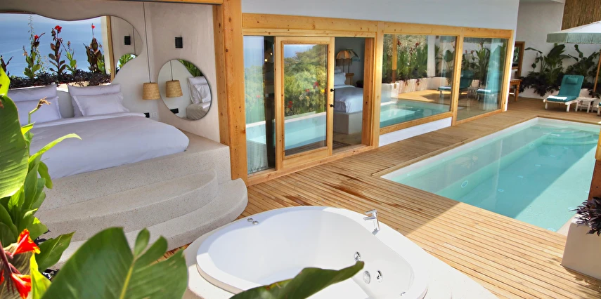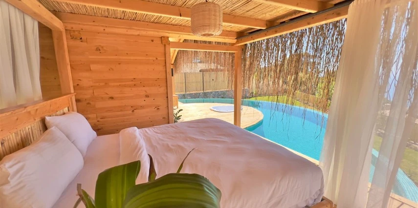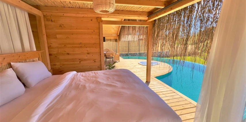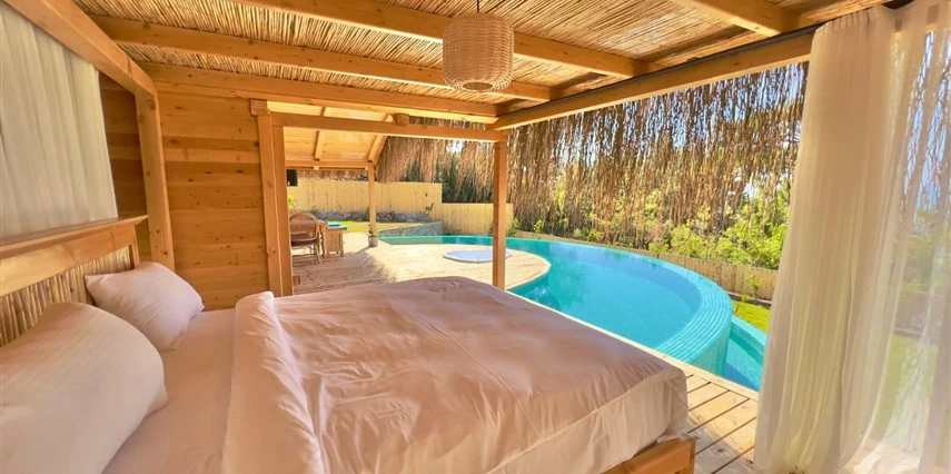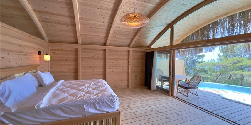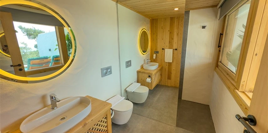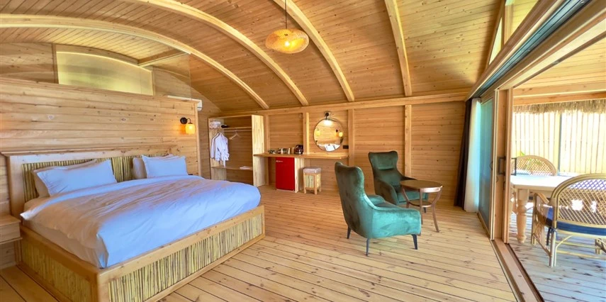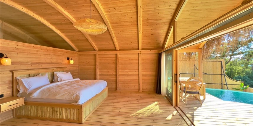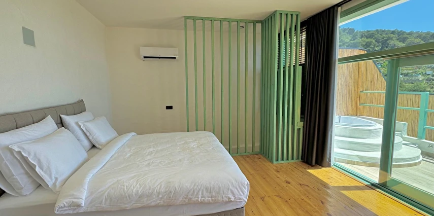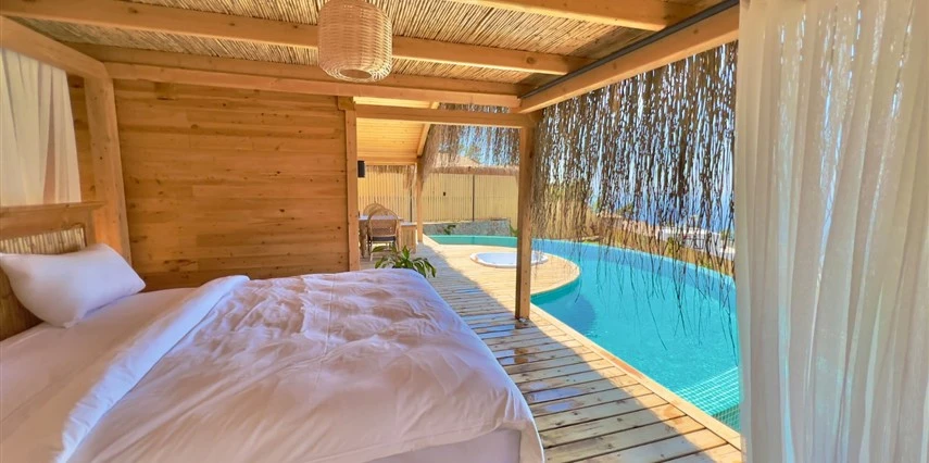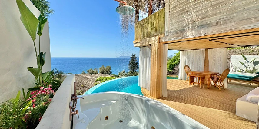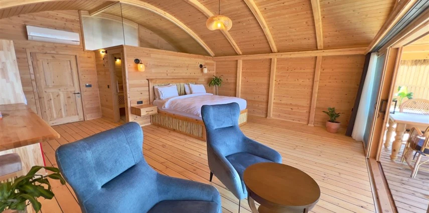 Tesis, birbirinden bağımsız toplam 37 odayla hizmet veriyor; aralarında 800 metre mesafe bulunan Butik Otel bölümünde 12 oda, Suit Otel bölümünde 21 oda, White House bölümünde 4 oda bulunuyor. Tamamı doğrudan deniz manzarasına açılan ahşap Butik Odalar ve Suit Odalar, geniş teras, özel havuz ve şezlong detaylarıyla öne çıkıyor.