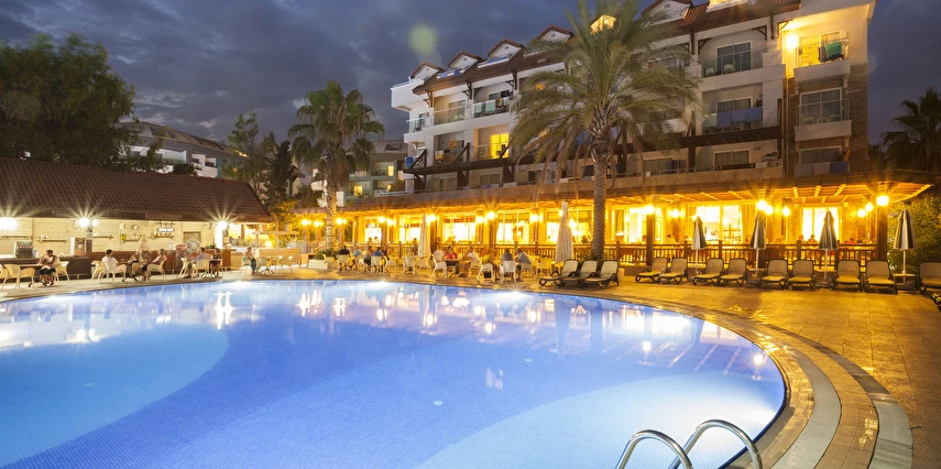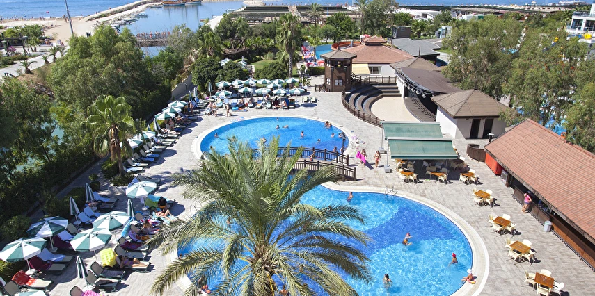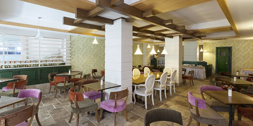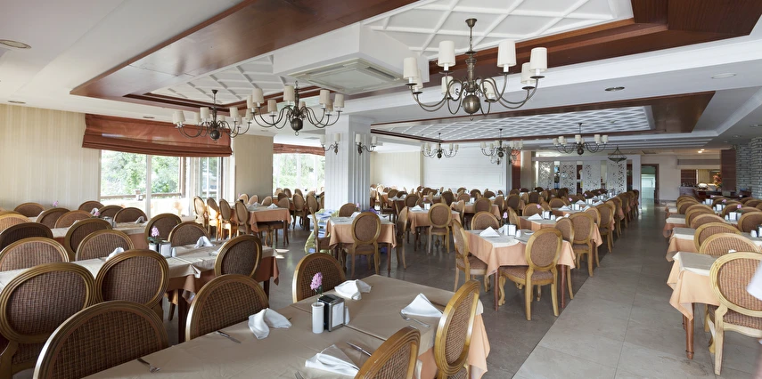 Sabah kahvaltısı, öğle yemeği ve akşam yemeği açık büfe olup, tesisin belirlemiş olduğu markalar dahilinde yerli alkollü ve alkolsüz içecekler 24 saat ücretsizdir. Taze sıkılmış meyve suları ve şişeli talep edilen alkollü içecekler ücretlidir.
