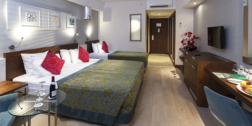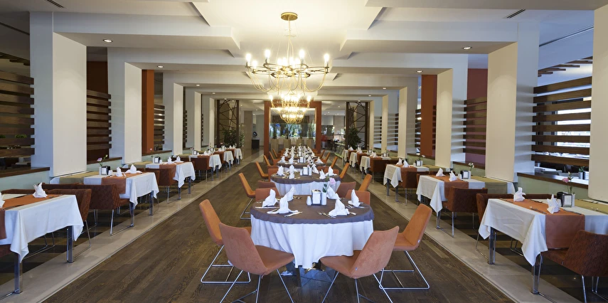 Sabah kahvaltısı, öğle yemeği ve akşam yemeği açık büfe olup, tesisin belirlemiş olduğu markalar dahilinde yerli alkollü ve alkolsüz içecekler 24 saat ücretsizdir. Taze sıkılmış meyve suları ve şişeli talep edilen alkollü içecekler ücretlidir.