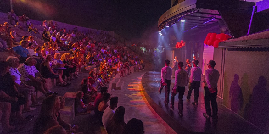 Her gün amfi tiyatroda Showlar, havuz başında canlı müzik, kareoke etkinlikleri , gala şovları, dans akşamları, canlı müzik, tv köşesi ücretsiz.