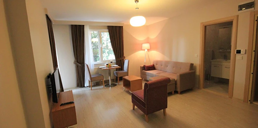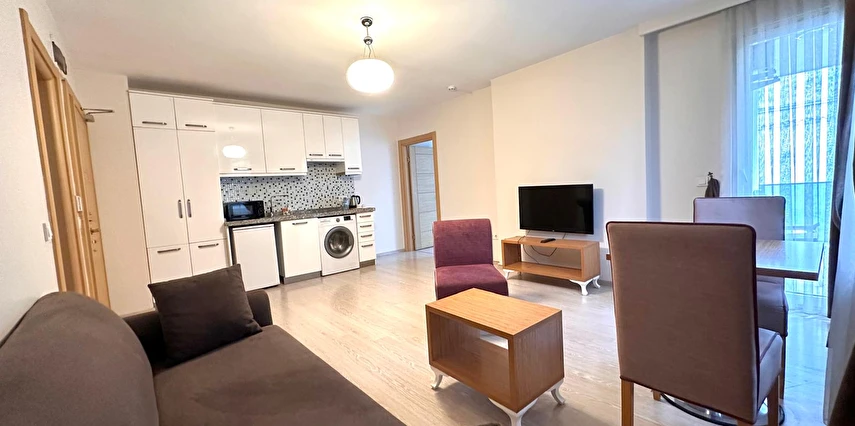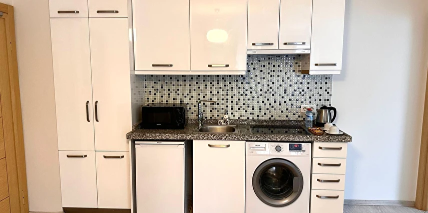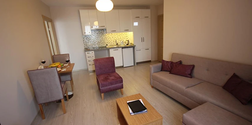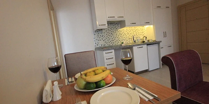 Tesisin daireleri geniş balkon veya özel terasa sahip olup, ücretsiz Wi‑Fi, klima, çamaşır makinesi ve tam donanımlı mutfak gibi modern yaşam olanakları sunar; bu sayede misafirler hem rahat hem de pratik bir konaklama deneyimi yaşar.