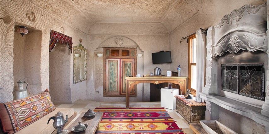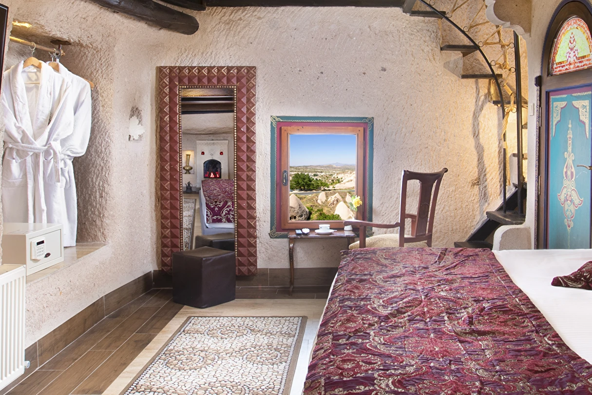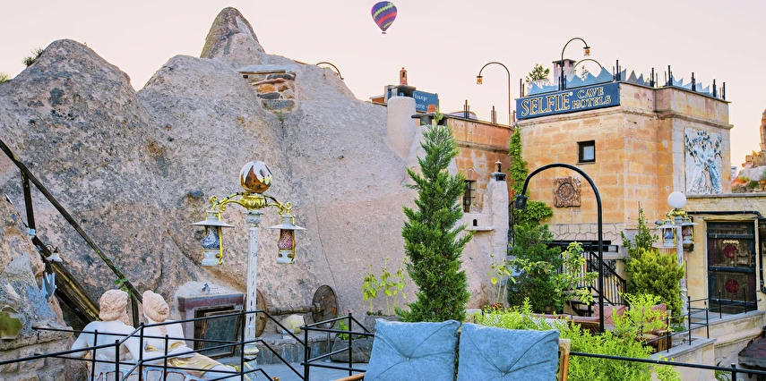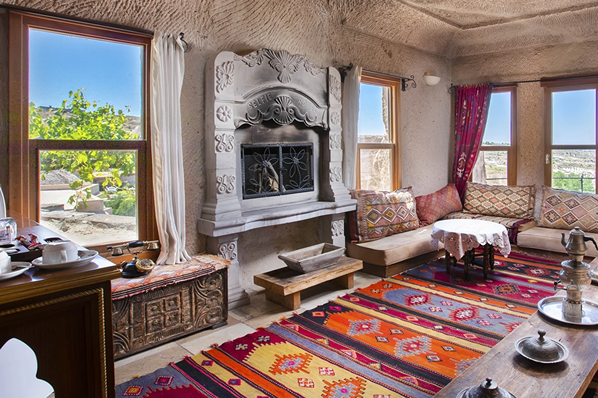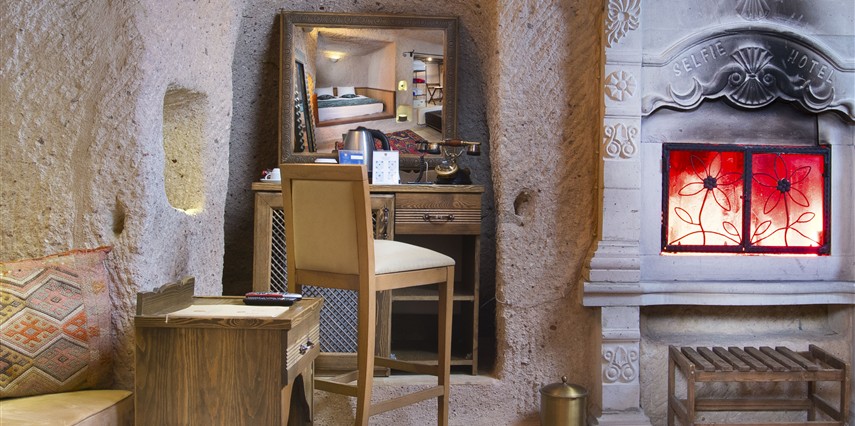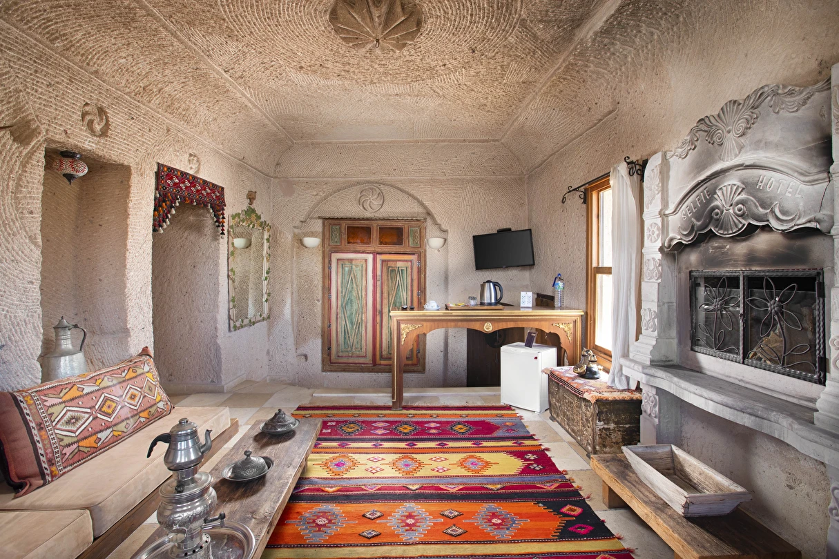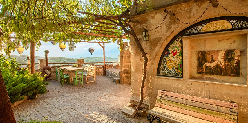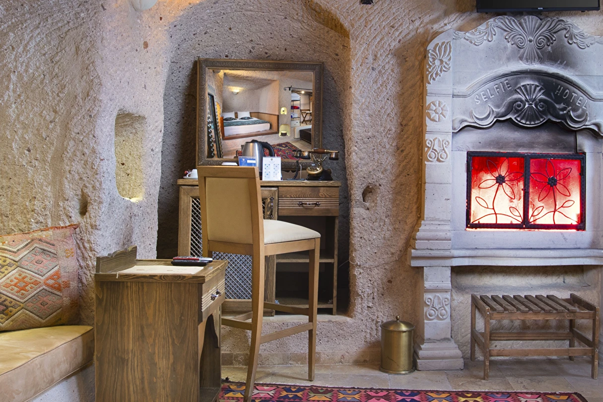 Selfie Cave Hotels Cappadocia Uçhisar Kalesi’nin eteklerinde, Göreme, Kızıl Vadi ve Güvercinlik Vadisi’nin nefes kesici manzarasına hakim bir konum üzerindedir. İçinde bulundurduğu binlerce yıllık peribacasının muhteşem tarihini hissedebileceğiniz mağara odaları ve buna eşlik eden taş evleriyle otelimiz birbirinden farklı toplam 17 odası ile size daha önce yaşamadığınız eşsiz bir deneyim vaad ediyor. Terasından Kapadokya’nın masalsı güzelliğini izlerken iç dizaynı ile kendinizi nostaljinin dingin ruhuna bırakıp modern dokunuşlarla şımartacaksınız. Otelimiz Unesco’nun Dünya Mirası Listesi’nde yer alan Göreme Açık Hava Müzesine 4 km, Nevşehir Havalimanına 30km,Kayseri Erkilet Havalimanına 60 km uzaklıktadır.
