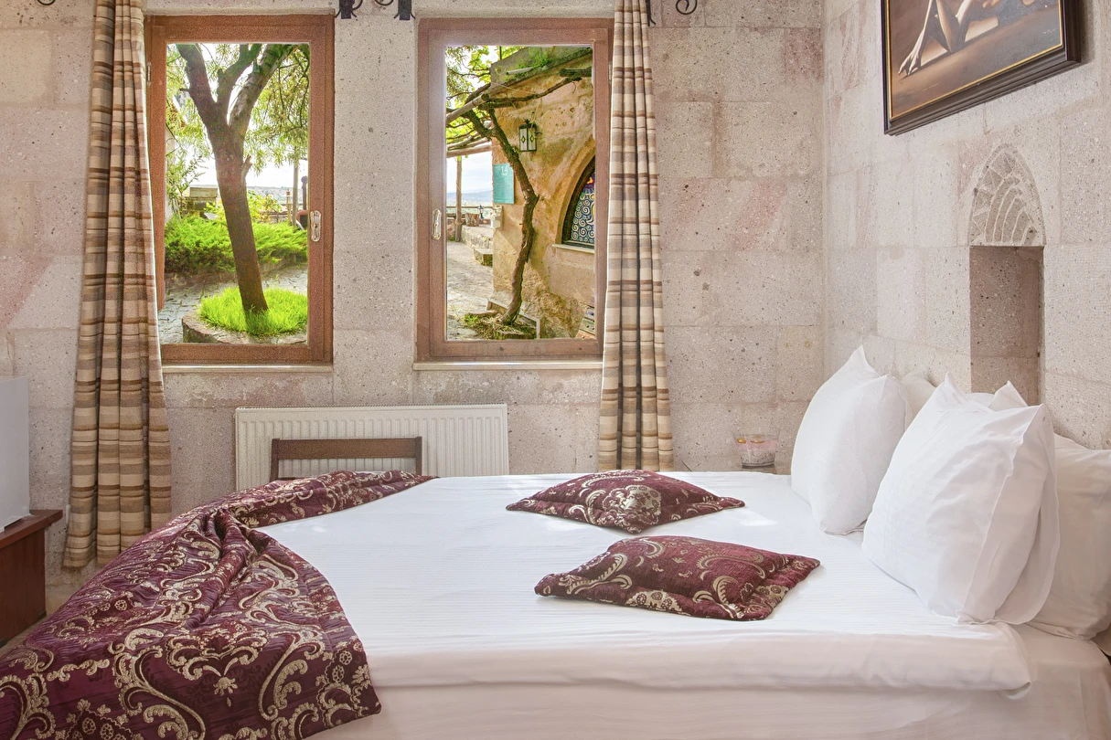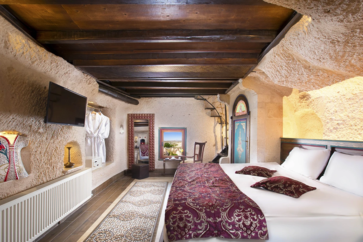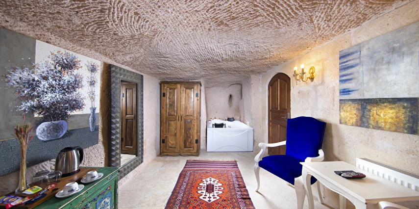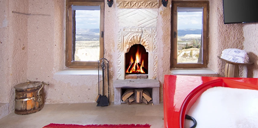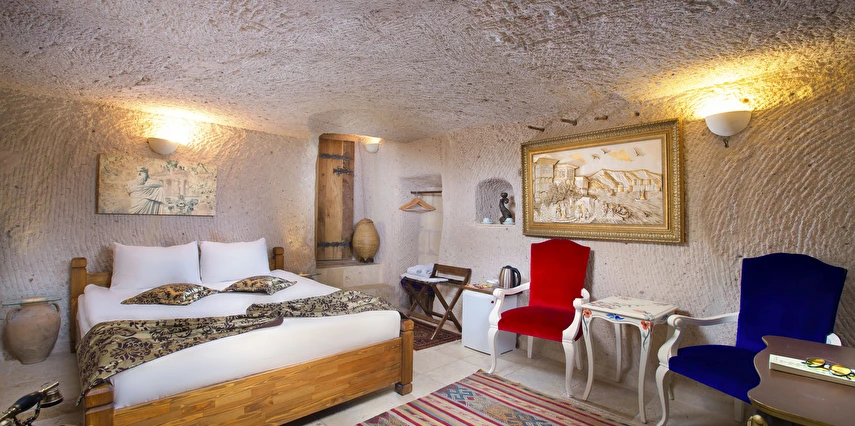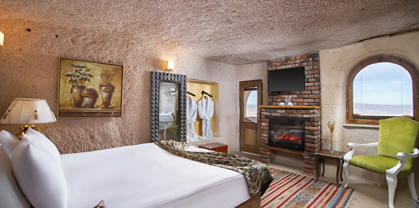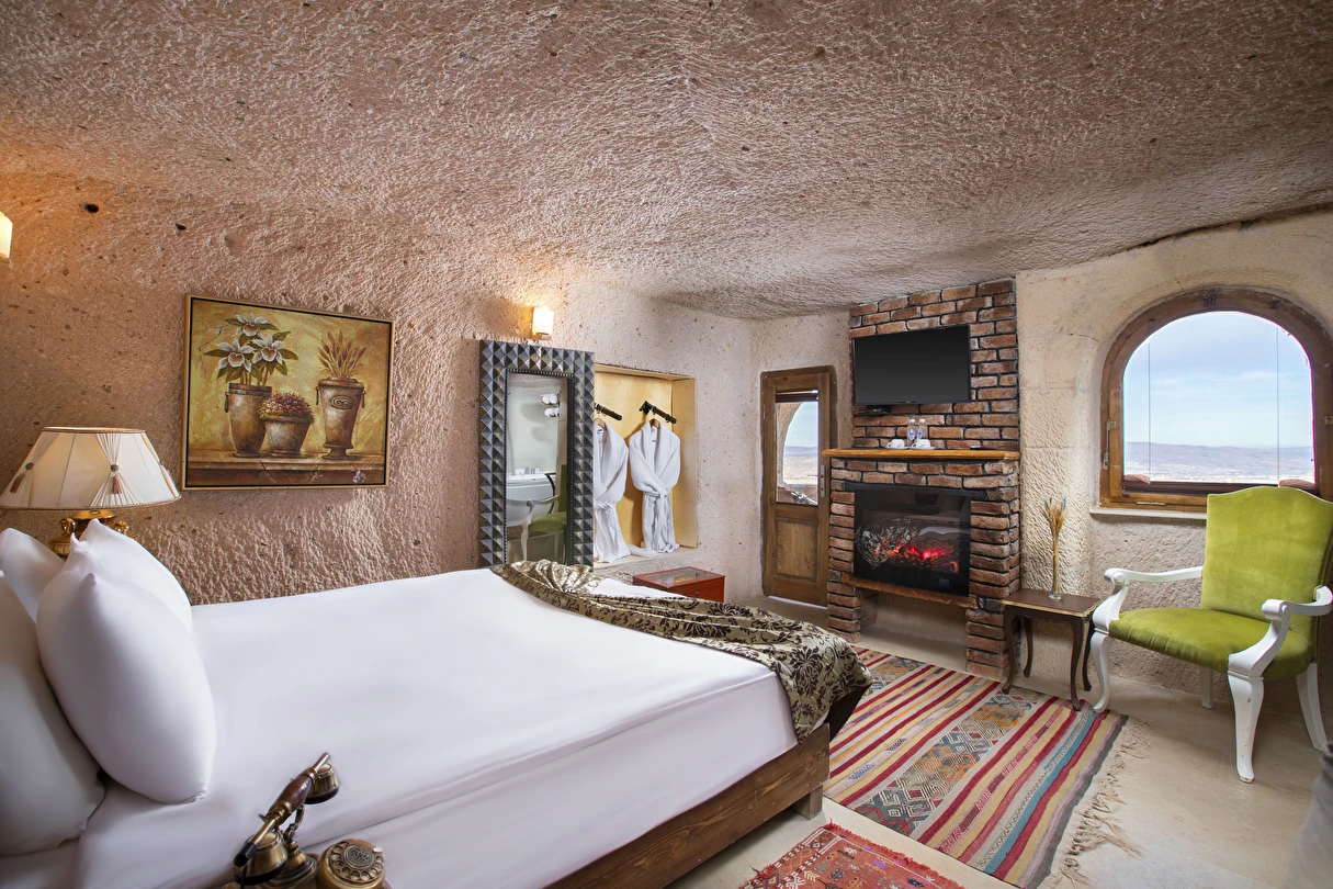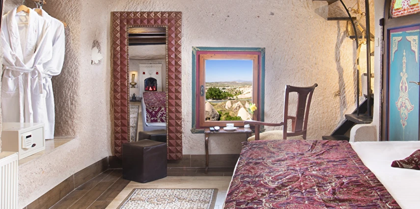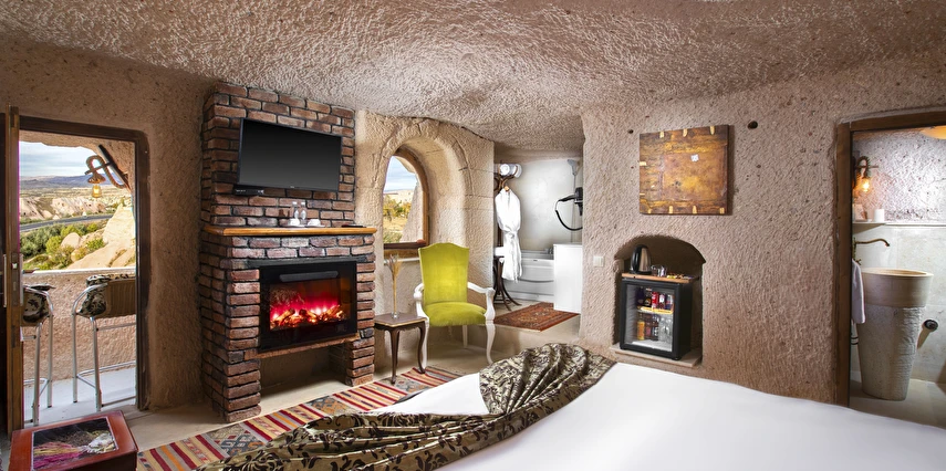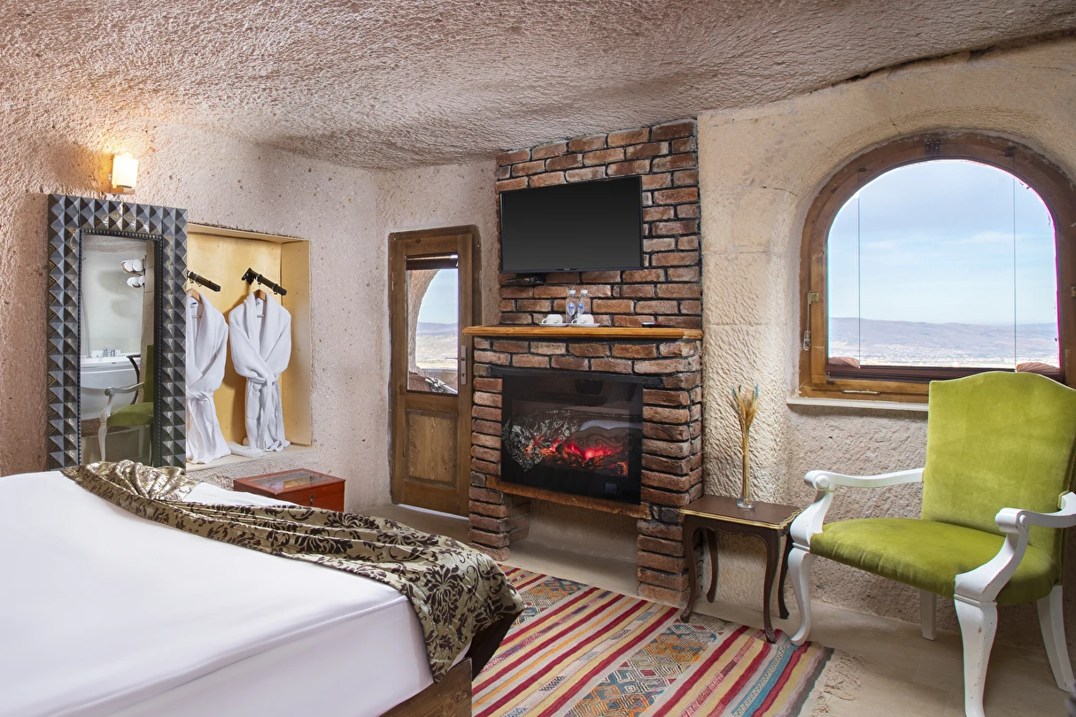Selfie Cave Hotels Cappadocia Uçhisar Kalesi’nin eteklerinde, Göreme, Kızıl Vadi ve Güvercinlik Vadisi’nin nefes kesici manzarasına hakim bir konum üzerindedir. İçinde bulundurduğu binlerce yıllık peribacasının muhteşem tarihini hissedebileceğiniz mağara odaları ve buna eşlik eden taş evleriyle otelimiz birbirinden farklı toplam 17 odası ile size daha önce yaşamadığınız eşsiz bir deneyim vaad ediyor. Terasından Kapadokya’nın masalsı güzelliğini izlerken iç dizaynı ile kendinizi nostaljinin dingin ruhuna bırakıp modern dokunuşlarla şımartacaksınız. Otelimiz Unesco’nun Dünya Mirası Listesi’nde yer alan Göreme Açık Hava Müzesine 4 km, Nevşehir Havalimanına 30km,Kayseri Erkilet Havalimanına 60 km uzaklıktadır.