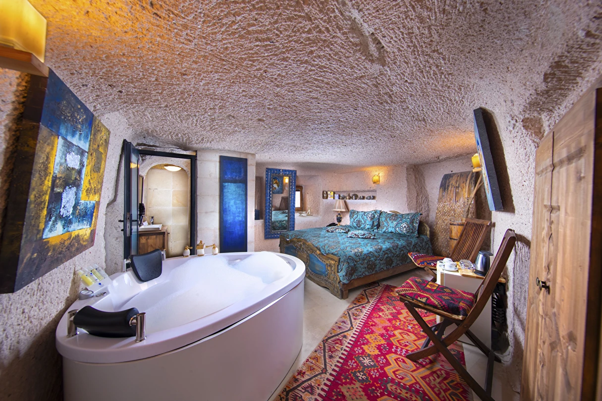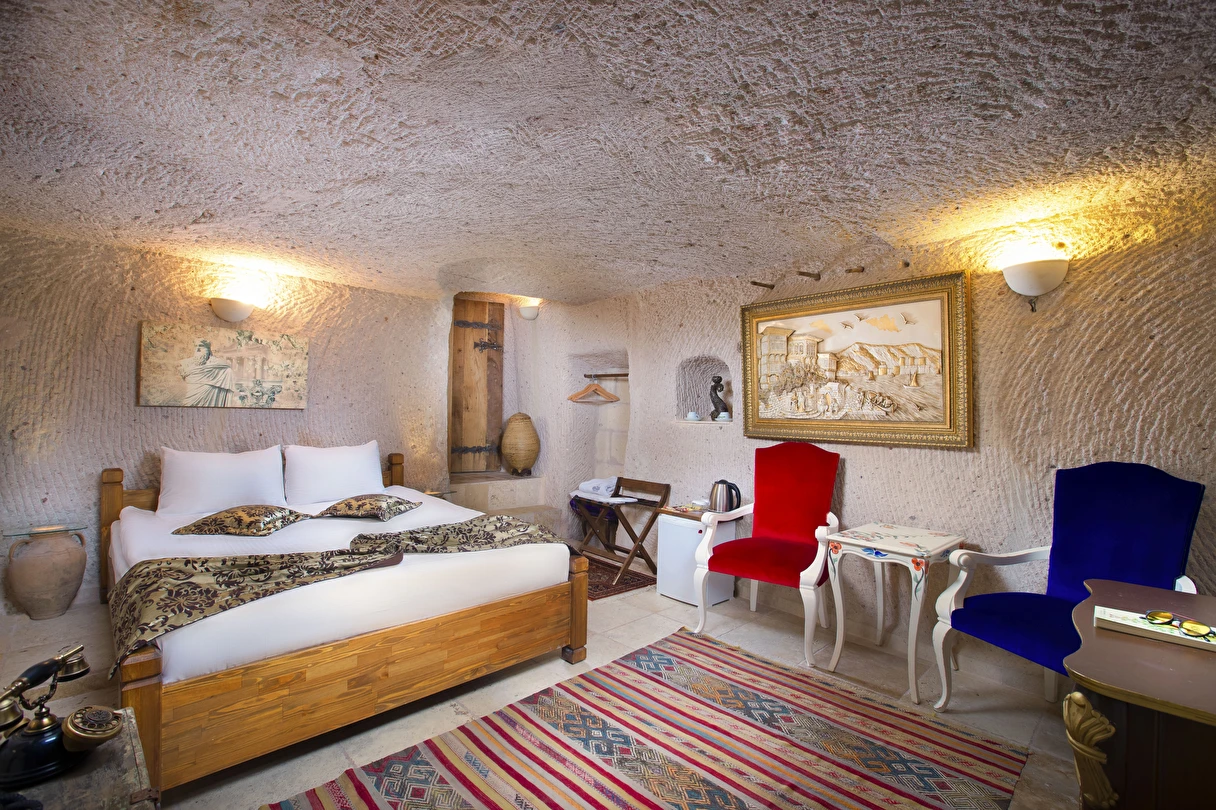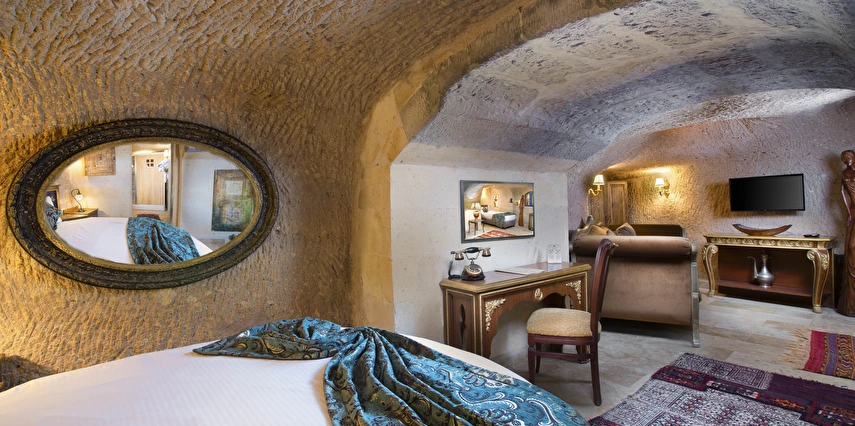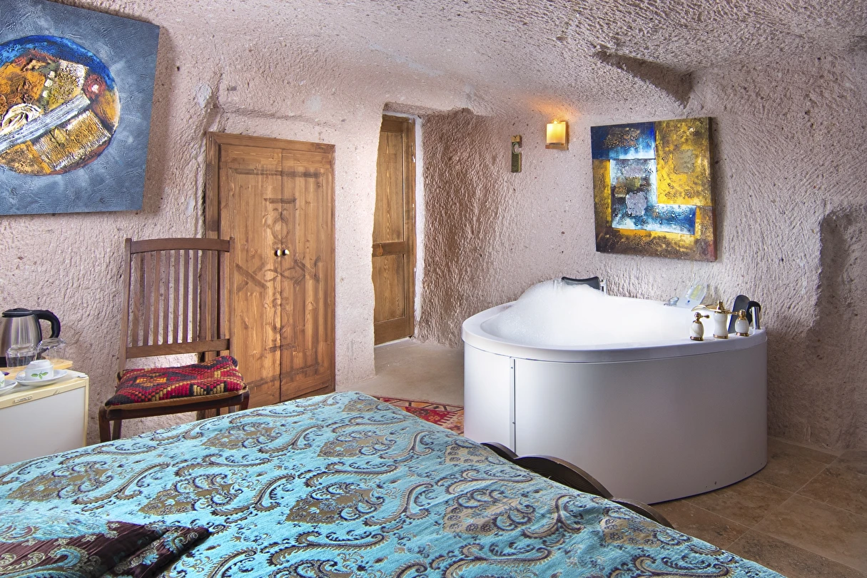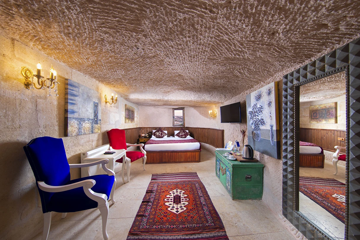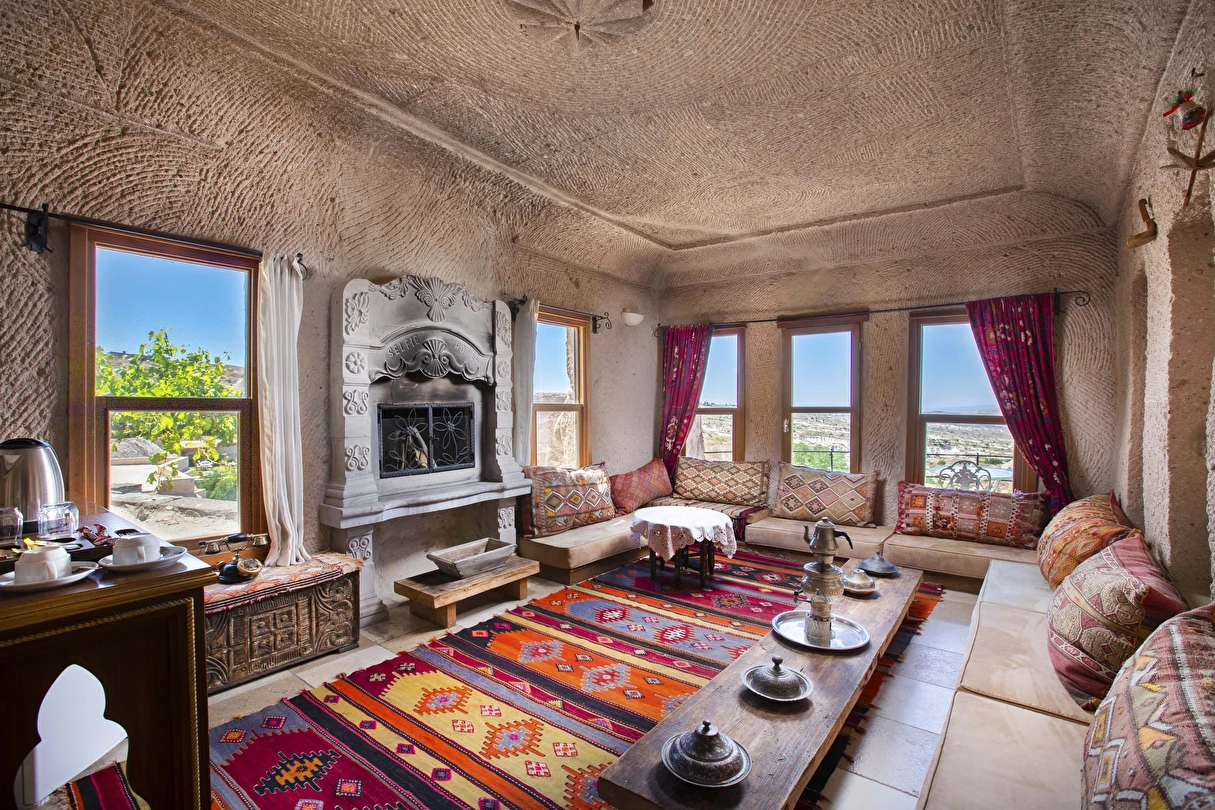 Selfie Cave Hotels Cappadocia Uçhisar Kalesi’nin eteklerinde, Göreme, Kızıl Vadi ve Güvercinlik Vadisi’nin nefes kesici manzarasına hakim bir konum üzerindedir. İçinde bulundurduğu binlerce yıllık peribacasının muhteşem tarihini hissedebileceğiniz mağara odaları ve buna eşlik eden taş evleriyle otelimiz birbirinden farklı toplam 17 odası ile size daha önce yaşamadığınız eşsiz bir deneyim vaad ediyor. Terasından Kapadokya’nın masalsı güzelliğini izlerken iç dizaynı ile kendinizi nostaljinin dingin ruhuna bırakıp modern dokunuşlarla şımartacaksınız. Otelimiz Unesco’nun Dünya Mirası Listesi’nde yer alan Göreme Açık Hava Müzesine 4 km, Nevşehir Havalimanına 30km,Kayseri Erkilet Havalimanına 60 km uzaklıktadır.