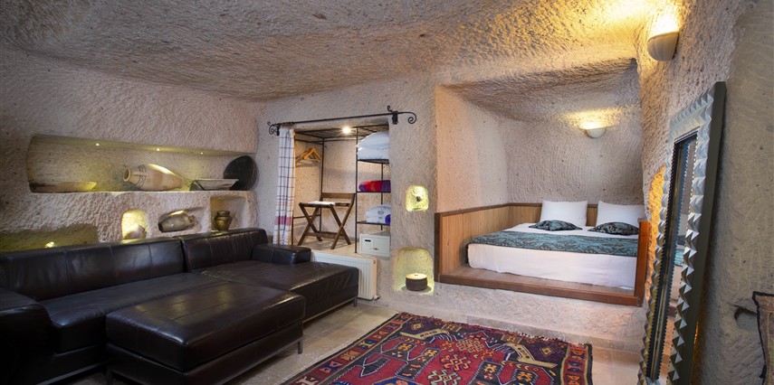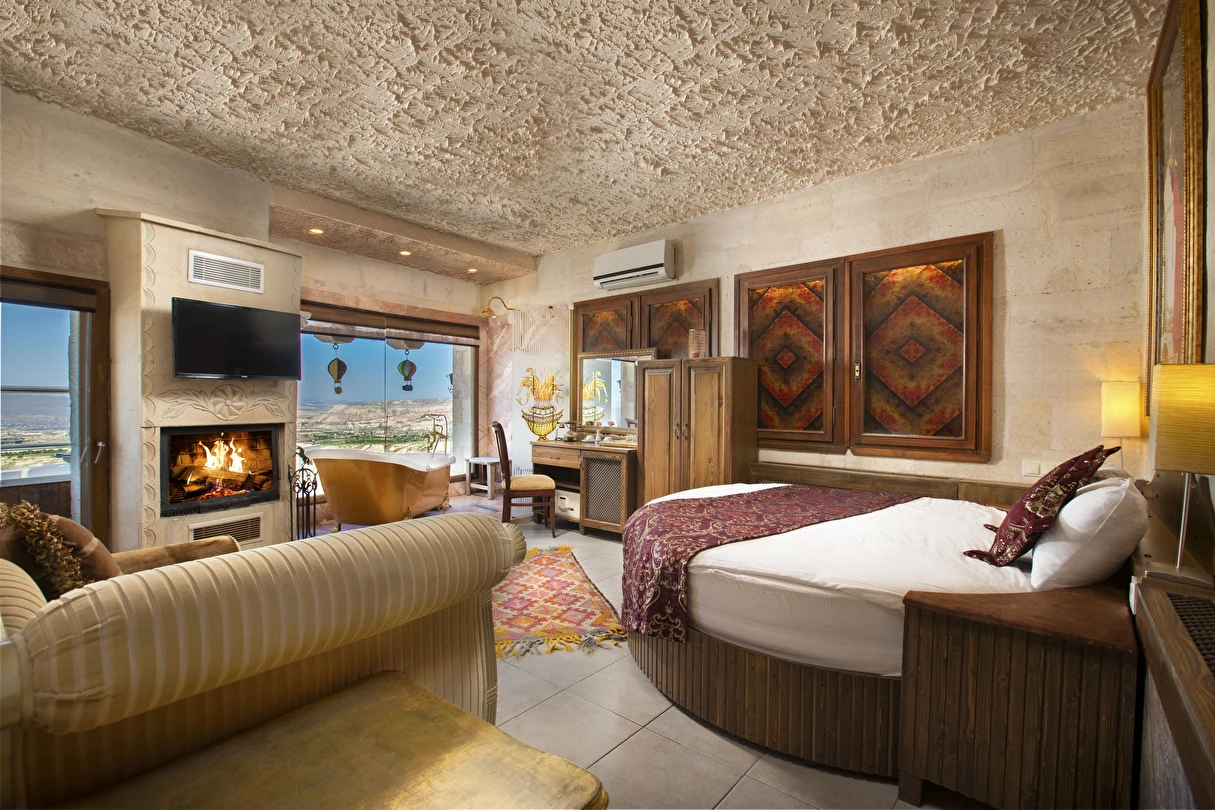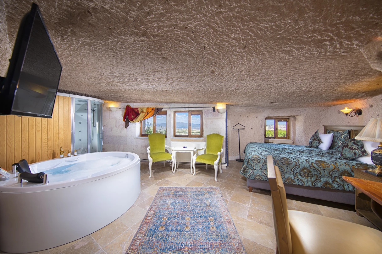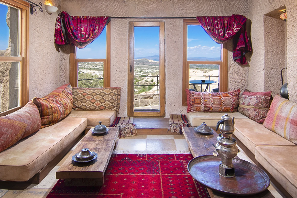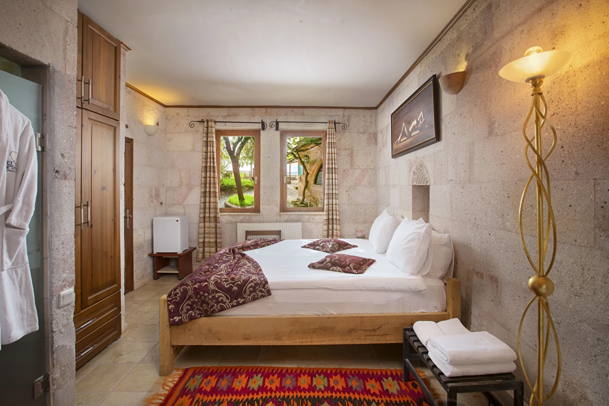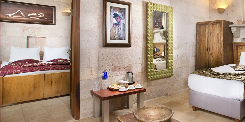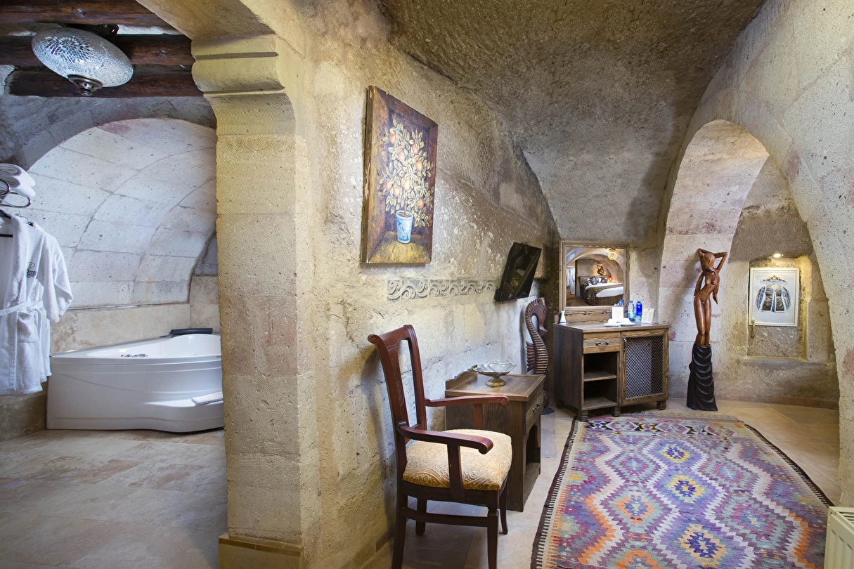 Selfie Cave Hotels Cappadocia Uçhisar Kalesi’nin eteklerinde, Göreme, Kızıl Vadi ve Güvercinlik Vadisi’nin nefes kesici manzarasına hakim bir konum üzerindedir. İçinde bulundurduğu binlerce yıllık peribacasının muhteşem tarihini hissedebileceğiniz mağara odaları ve buna eşlik eden taş evleriyle otelimiz birbirinden farklı toplam 17 odası ile size daha önce yaşamadığınız eşsiz bir deneyim vaad ediyor. Terasından Kapadokya’nın masalsı güzelliğini izlerken iç dizaynı ile kendinizi nostaljinin dingin ruhuna bırakıp modern dokunuşlarla şımartacaksınız. Otelimiz Unesco’nun Dünya Mirası Listesi’nde yer alan Göreme Açık Hava Müzesine 4 km, Nevşehir Havalimanına 30km,Kayseri Erkilet Havalimanına 60 km uzaklıktadır.