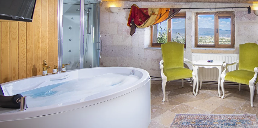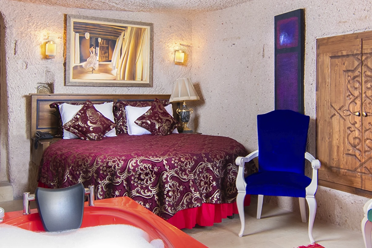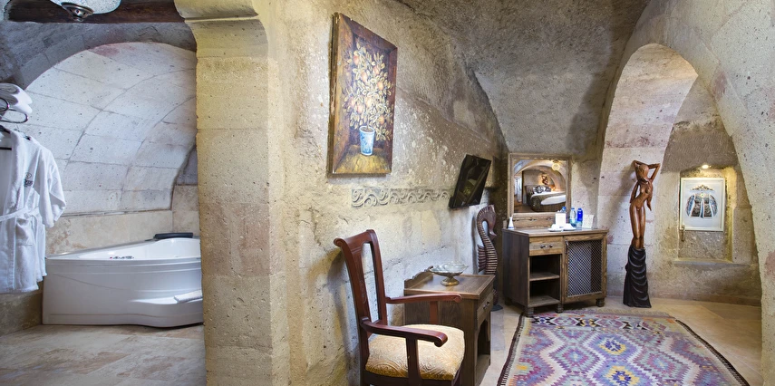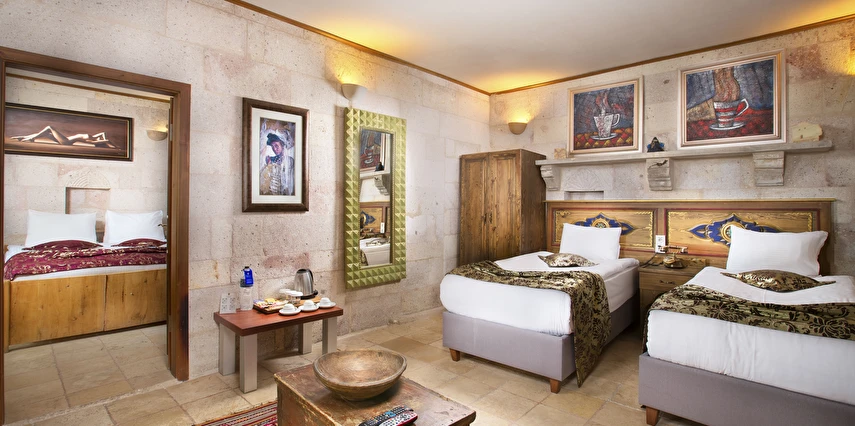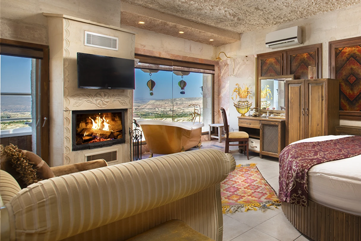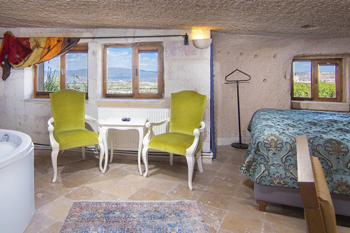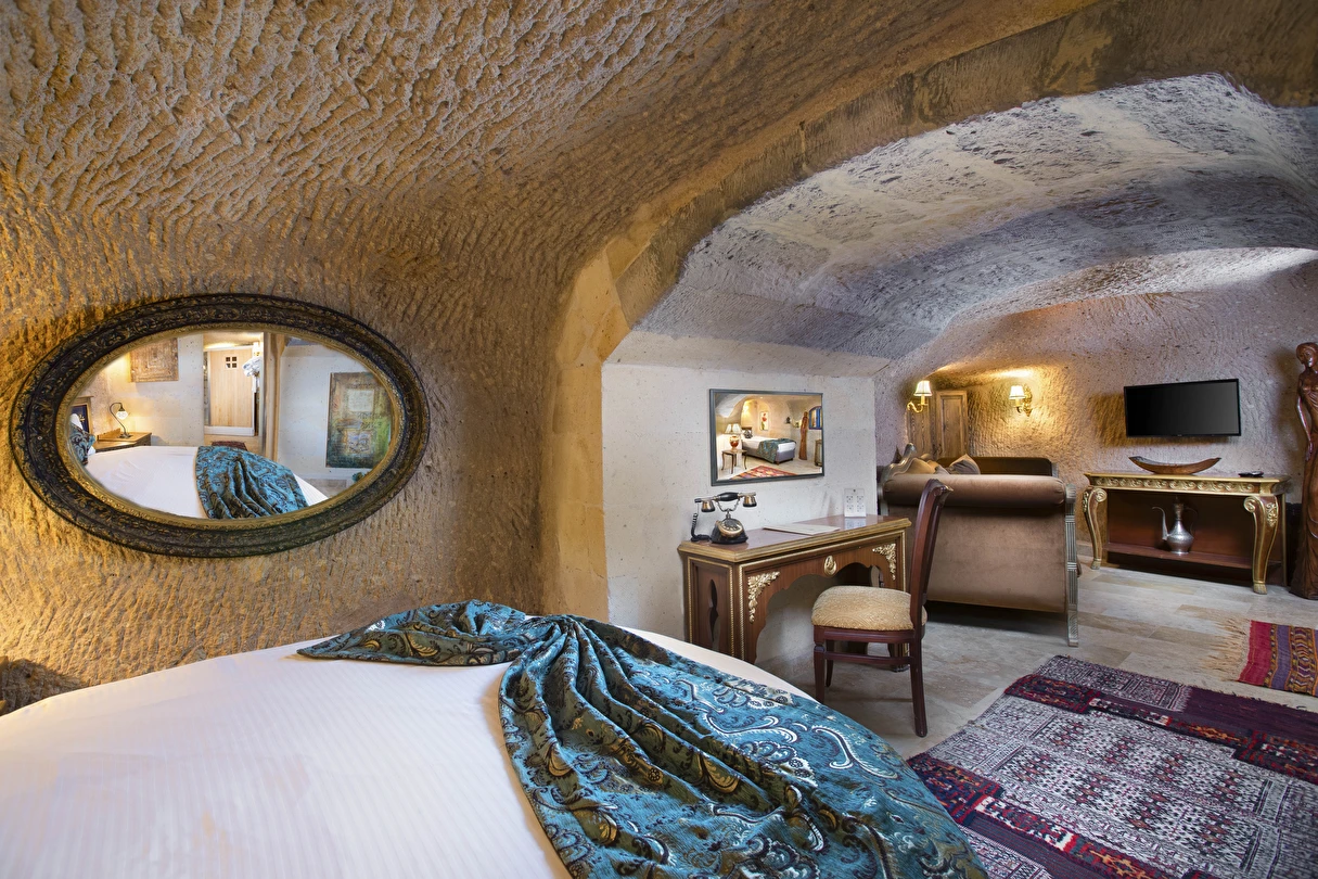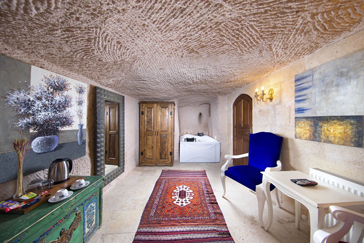 Selfie Cave Hotels Cappadocia Uçhisar Kalesi’nin eteklerinde, Göreme, Kızıl Vadi ve Güvercinlik Vadisi’nin nefes kesici manzarasına hakim bir konum üzerindedir. İçinde bulundurduğu binlerce yıllık peribacasının muhteşem tarihini hissedebileceğiniz mağara odaları ve buna eşlik eden taş evleriyle otelimiz birbirinden farklı toplam 17 odası ile size daha önce yaşamadığınız eşsiz bir deneyim vaad ediyor. Terasından Kapadokya’nın masalsı güzelliğini izlerken iç dizaynı ile kendinizi nostaljinin dingin ruhuna bırakıp modern dokunuşlarla şımartacaksınız. Otelimiz Unesco’nun Dünya Mirası Listesi’nde yer alan Göreme Açık Hava Müzesine 4 km, Nevşehir Havalimanına 30km,Kayseri Erkilet Havalimanına 60 km uzaklıktadır.