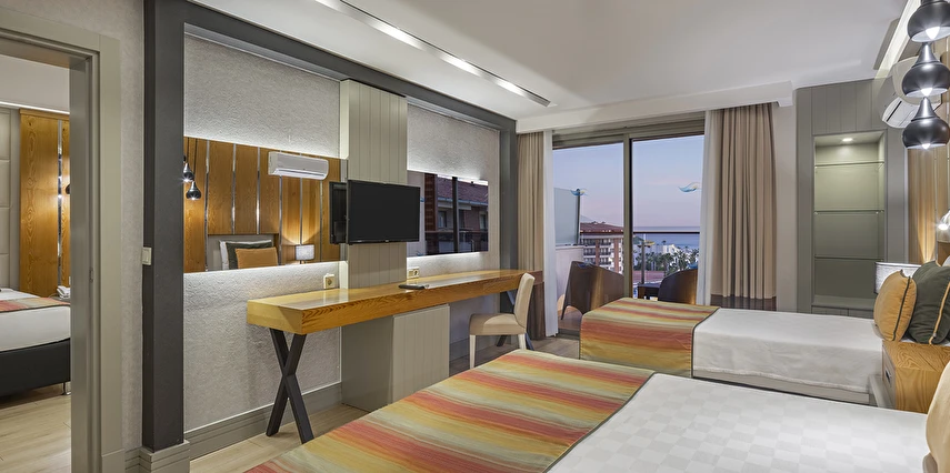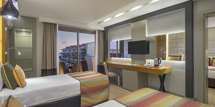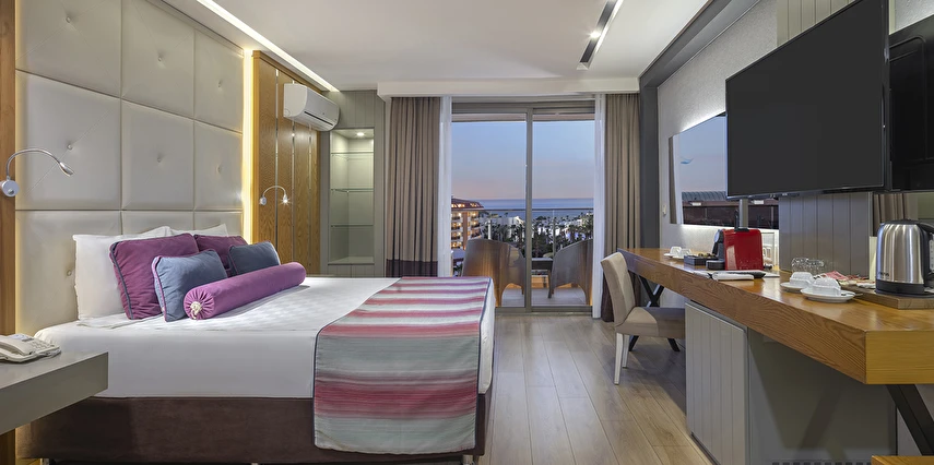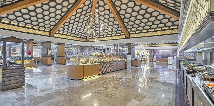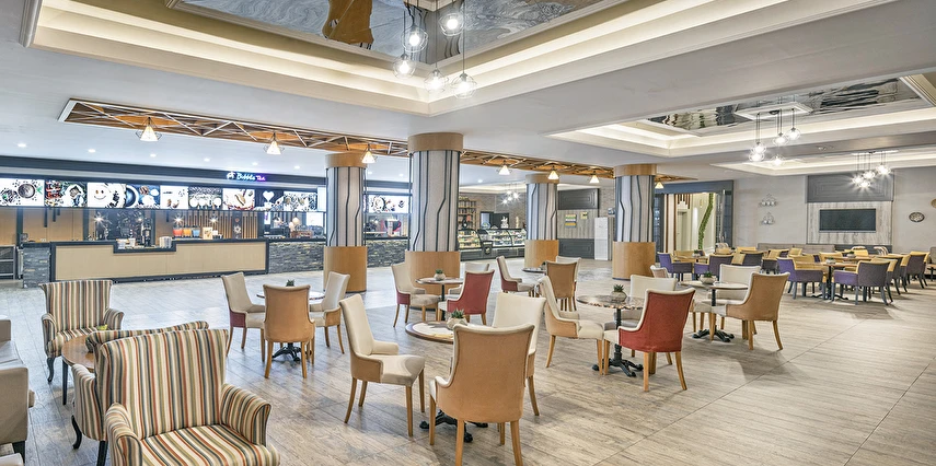 Alkolsüz ultra her şey dahil içecek konsepti: Pastanede “ Kahve Dünyası” Hizmeti, Mini barda zengin içecek ve yiyecek seçeneği, Lobi kafede 24 saat içecek hizmeti ve Kafelerde kaliteli alkolsüz kokteyl sunumları, Teras pastanede; zengin pasta çeşitleri, sandviç, kurabiye çeşitleri ve sıcak içecekler ücretsizdir. Pastanede özel kahve ikramı mevcuttur.