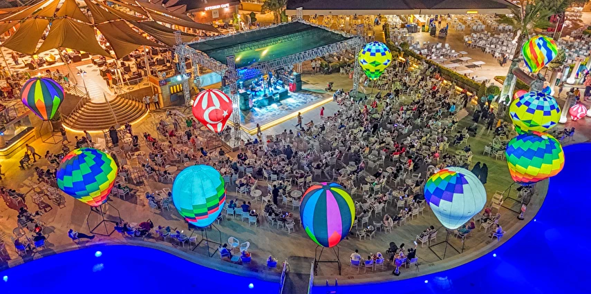 -Gece Aktivite Programı: 7 Gün boyunca farklı programlar; Temmuz ve Ağustos ayında ünlü sanatçılar eşliğinde haftada 1 kez konser. Canlı Müzik, Kadınlar Matinesi, Uluslararası şov grupları, Gösteriler, Yarışmalar, Türk Gecesi (Sıra Gecesi, Survivor, halı saha turnuvalarından oluşan programlar haftanın farklı günlerinde yer almaktadır.