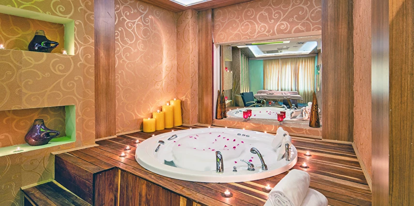 - Kadın Spa bölümünde Hamam, Sauna, Fitness center Kese, Köpük, Masaj, Kapalı Havuz, Buhar Odası, Jacuzzi, Kuaför mevcuttur. Kese, köpük, masaj cilt ve vücut bakımı, jakuzi ve kuaför ekstra ücretlidir.