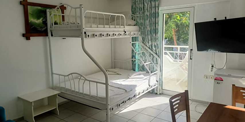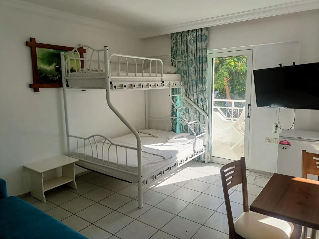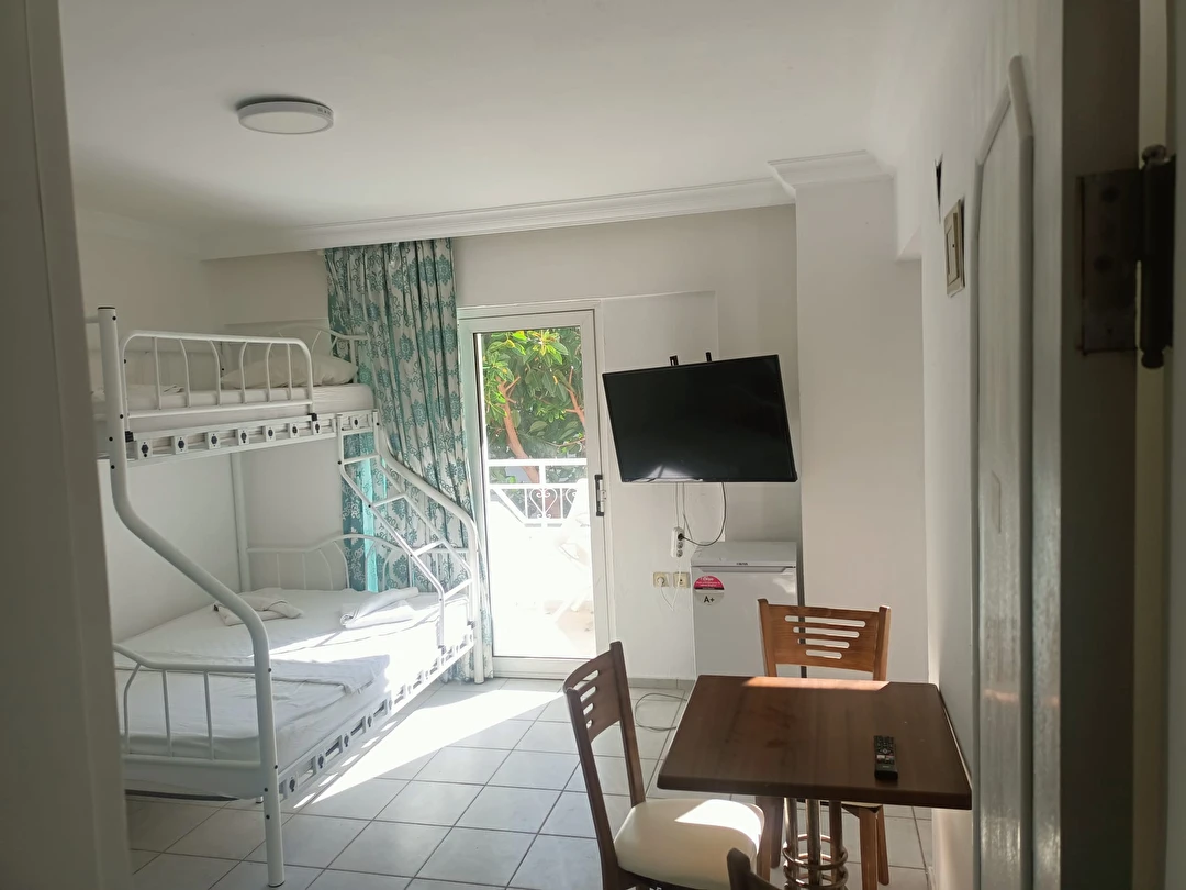 Kullanışlı ve ferah apart dairelerinde; klima, TV, oturma alanı, mutfak donanımı ve ihtiyaç duyabileceğiniz temel olanaklar bulunmaktadır. Aileler, çiftler ve uzun süreli konaklama planlayan misafirler için uygun olan Şen Apart Turunç, rahat ve özgür bir konaklama imkânı sağlar.