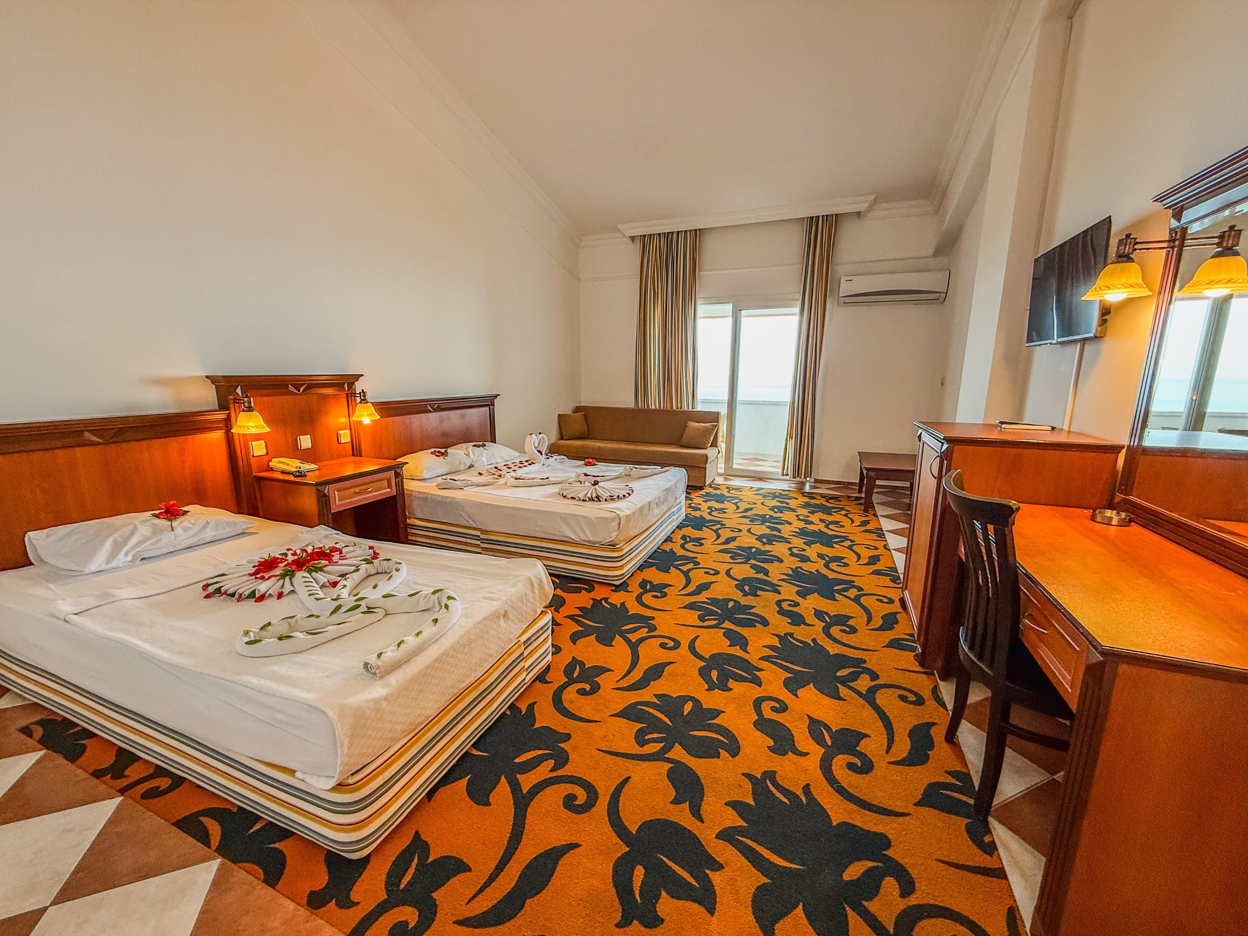 Sabah kahvaltısı, öğle ve akşam yemekleri açık büfe olup, tesisin belirlemiş olduğu saatler ve markalar dahilinde yerli alkollü ve alkolsüz içecekler ve tesisin belirlemiş olduğu bazı yabancı içecekler 02:00 saatine kadar ücretsizdir. 02:00 ile 07:00 saatleri arası yalnızca soft içecekler sunulmaktadır. Konsept dahilindeki içecekler sadece bardakta servis edilir. Tüm şişe içkiler, yabancı alkollü içecekler, taze sıkılmış meyve suları ücretlidir. Konsepte dahil Alkollü İçecekler, Tekila, Vermut, Krema Likörü, Rom, Malt Viski.