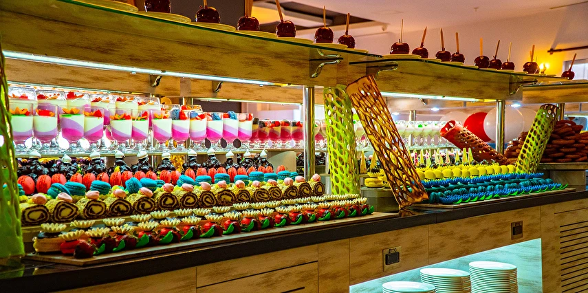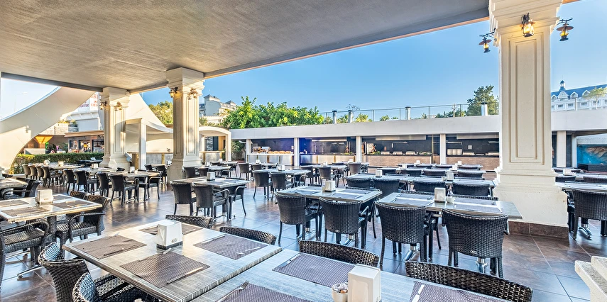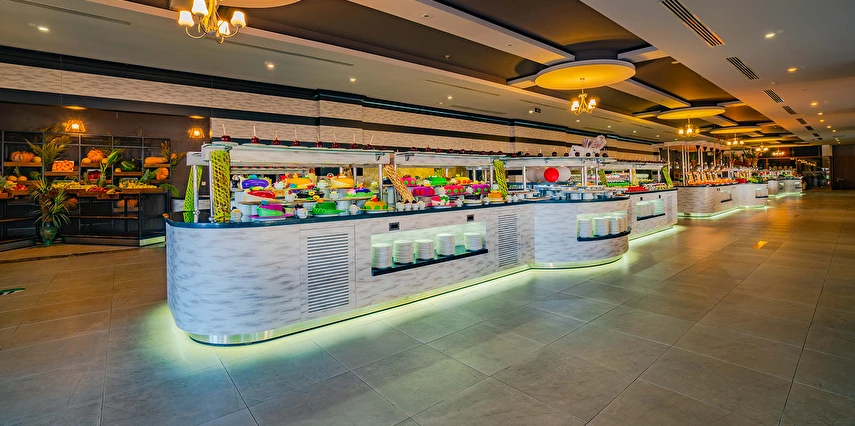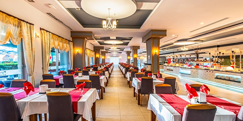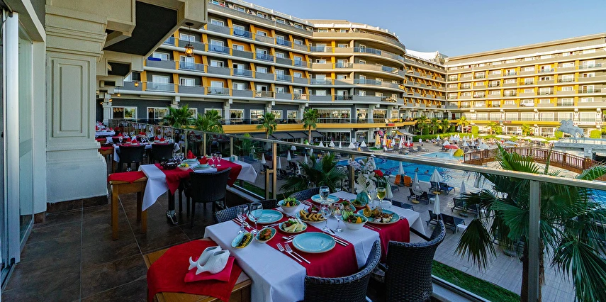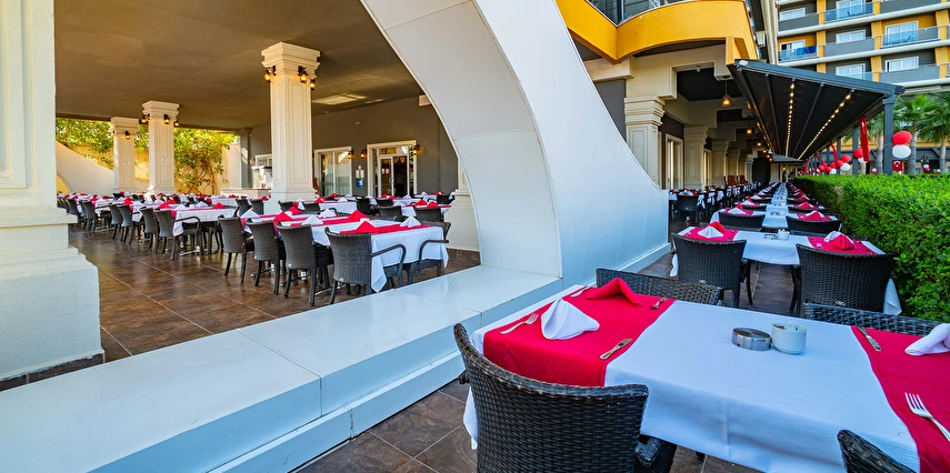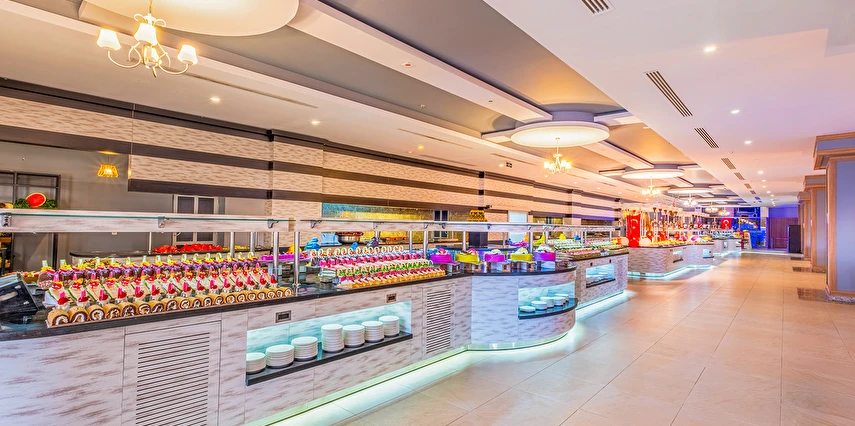 Sabah kahvaltısı, öğle ve akşam yemekleri açık büfe olup, tesisin belirlemiş olduğu saatler ve markalar dahilinde yerli alkollü alkolsüz içecekler ve tesisin belirlemiş olduğu bazı yabancı içecekler 24 saat ücretsizdir. Konsept dahilindeki içecekler sadece bardakta servis edilir. Tüm şişe içkiler, yabancı alkollü içecekler, taze sıkılmış meyve suları ücretlidir. Konsepte Dahil Yabancı Alkollü İçecekler ; Tekila, Vermut, Krema Likörü, Rom, Malt Viski.
