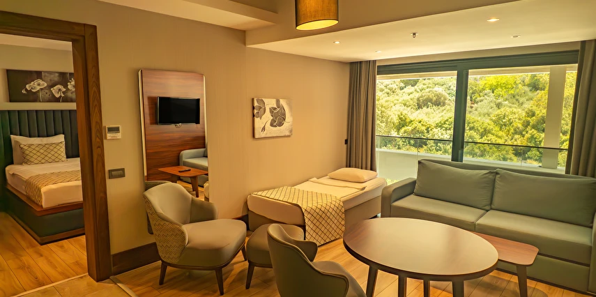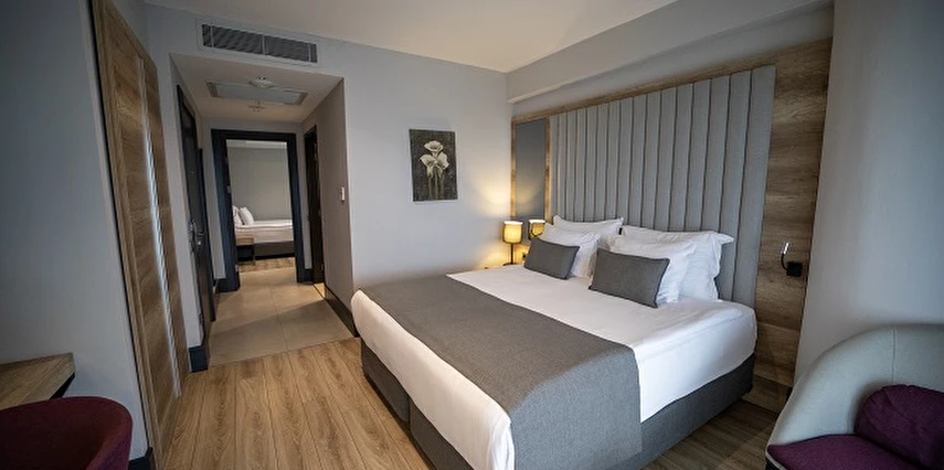 Modern ve rahat odaları ile geniş alanları, dinlendirici bir konaklama deneyimi yaşamanızı sağlıyor. Termal spa merkezinde, profesyonel bir ekibin hizmet verdiği hamam, sauna, buhar odaları ve aile banyolarıyla tüm yorgunluğunuzu atarak yenilenebilirsiniz. Ayrıca, kadınlara yönelik kapalı alanlar da bulunmaktadır.