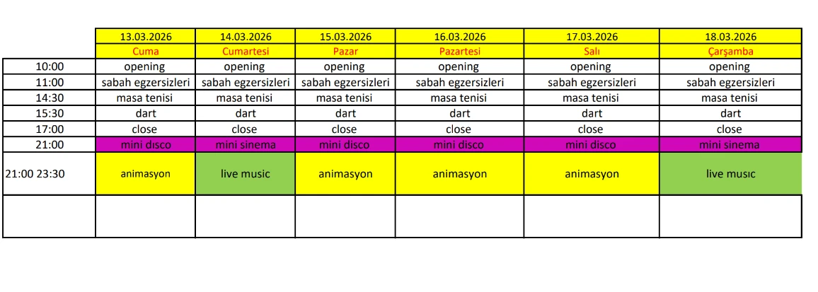 Mini club; Minik konuklarımıza tatil keyfini yaşatan özel kapalı alanda mini club,açık alanda oyun parkı bulunmaktadır.
