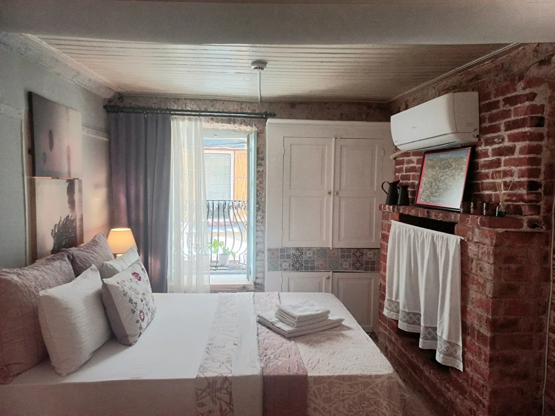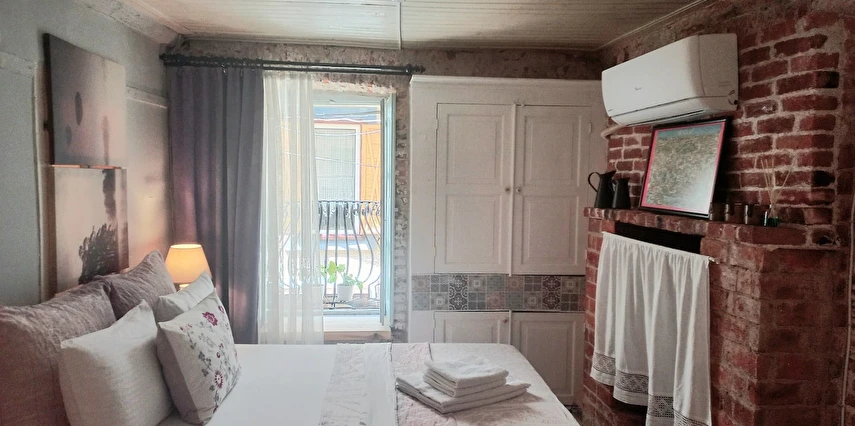 Balıkesir’in eşsiz sahil kasabalarından biri olan Ayvalık’ta yer alan Sevgi Pansiyon, 1891 yılında inşa edilmiş tarihi bir Rum evidir. Asırlık taş mimarisi korunarak özenle restore edilen yapı, geçmişin atmosferini günümüze taşıyan otantik bir konaklama deneyimi sunmaktadır. Modern otel konforundan çok, tarihi bir evin ruhunu hissetmek isteyen misafirler için ideal bir ortam sunan pansiyonumuzda, Ayvalık’ın geleneksel yaşamını yakından deneyimleyebilirsiniz.