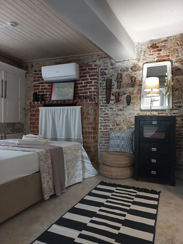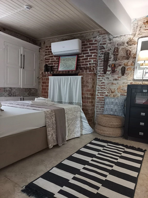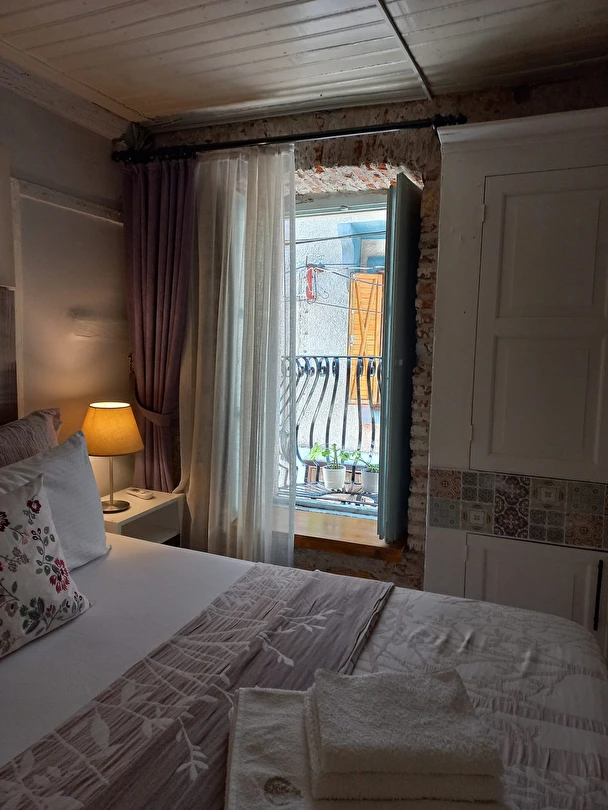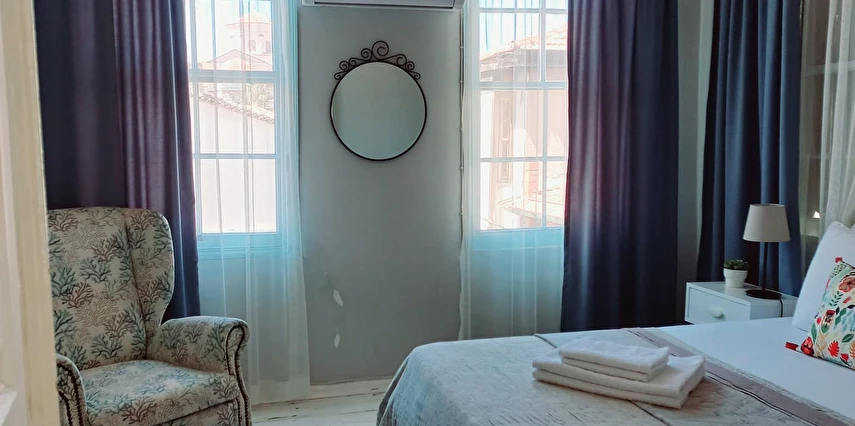 Pansiyonumuz, eski bir Rum mahallesinde yer almakta olup dar sokakları, taş evleri ve akşamları sokakta sosyalleşen mahalle kültürüyle oldukça otantik bir atmosfere sahiptir. Tesisimize ait özel otopark bulunmamaktadır; ancak yakın çevrede ücretli otopark seçenekleri mevcuttur ve mahalle içinde araç parkı yasaktır.