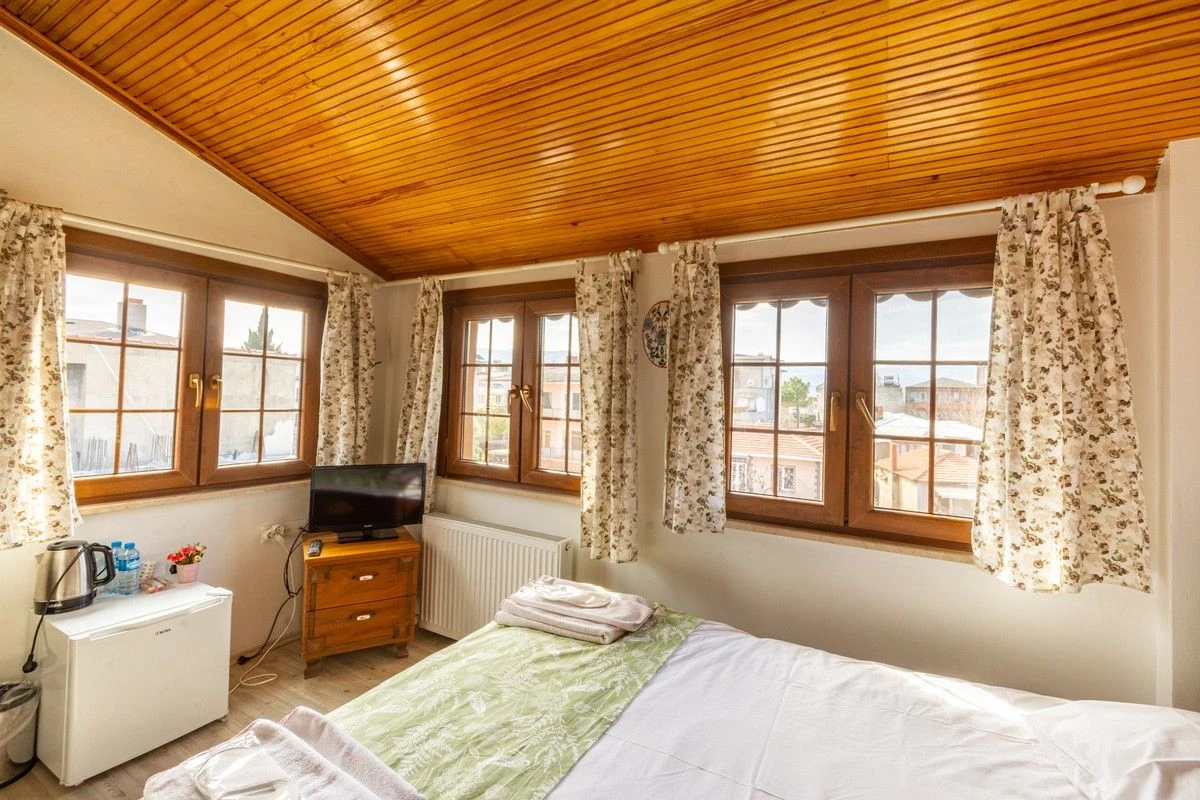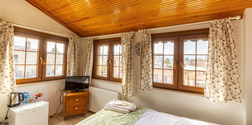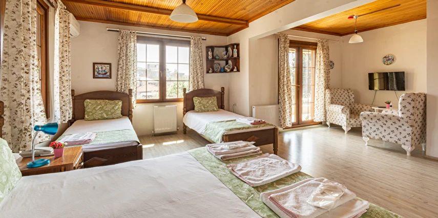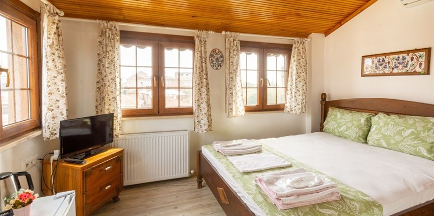 -Eski bir İznik konağının restore edilmesiyle hizmete açılan tesisin bazı odalarından olağanüstü manzara seyredilebiliyor. LED televizyon, uydu yayını, telefon ve saç kurutma makinesi ise otelin konaklama birimlerinde faydalanabileceğiniz özellikler arasında. Tesisin balkonlu bölümlerine rezervasyon yaptırarak bahar aylarında temiz havayı ciğerlerinize çekebilirsiniz.