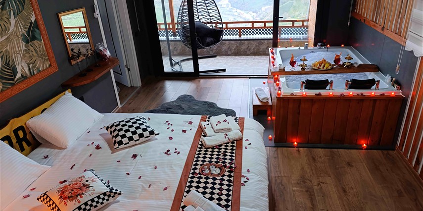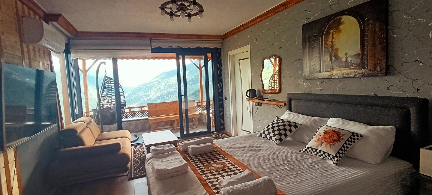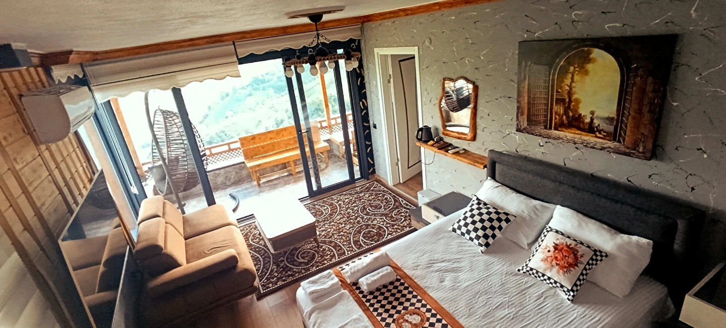 Daha Fazla GösterKaradeniz’in büyüleyici doğasında, yeşilin binbir tonuna ve sonsuz manzaralara ev sahipliği yapan Rize’de yer alan Seyr-i Âlem Suit Villa, huzur ve konforu bir arada arayan misafirlerini bekliyor. Göz alabildiğine uzanan dağ manzarası, tertemiz havası ve sakin atmosferiyle şehir hayatının stresinden uzaklaşmak isteyenler için ideal bir kaçış noktası sunuyor.