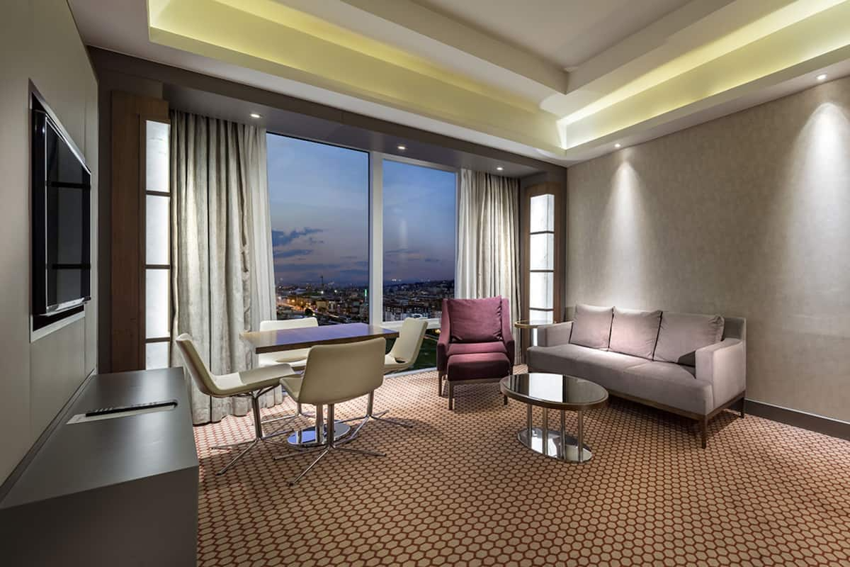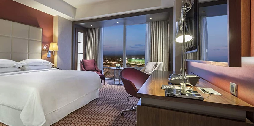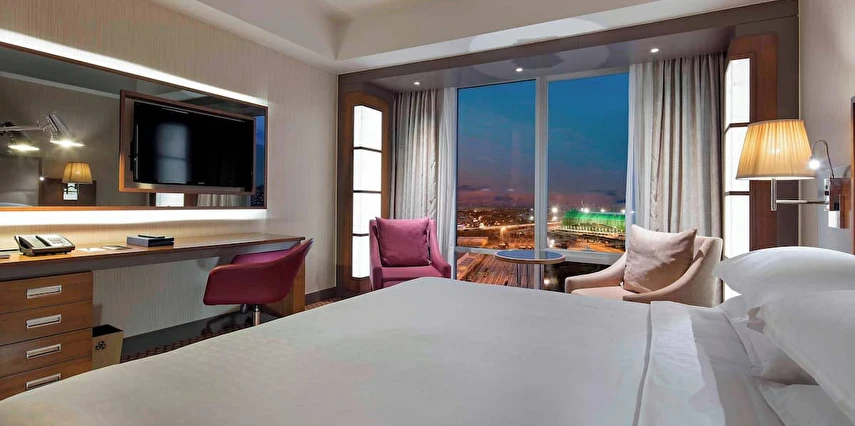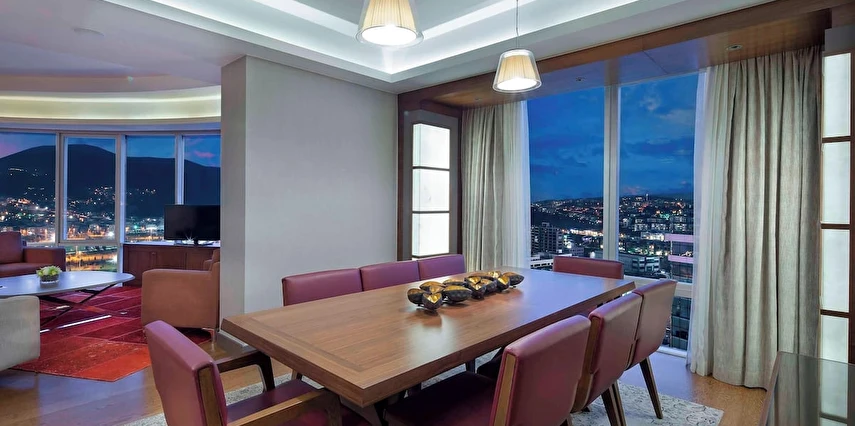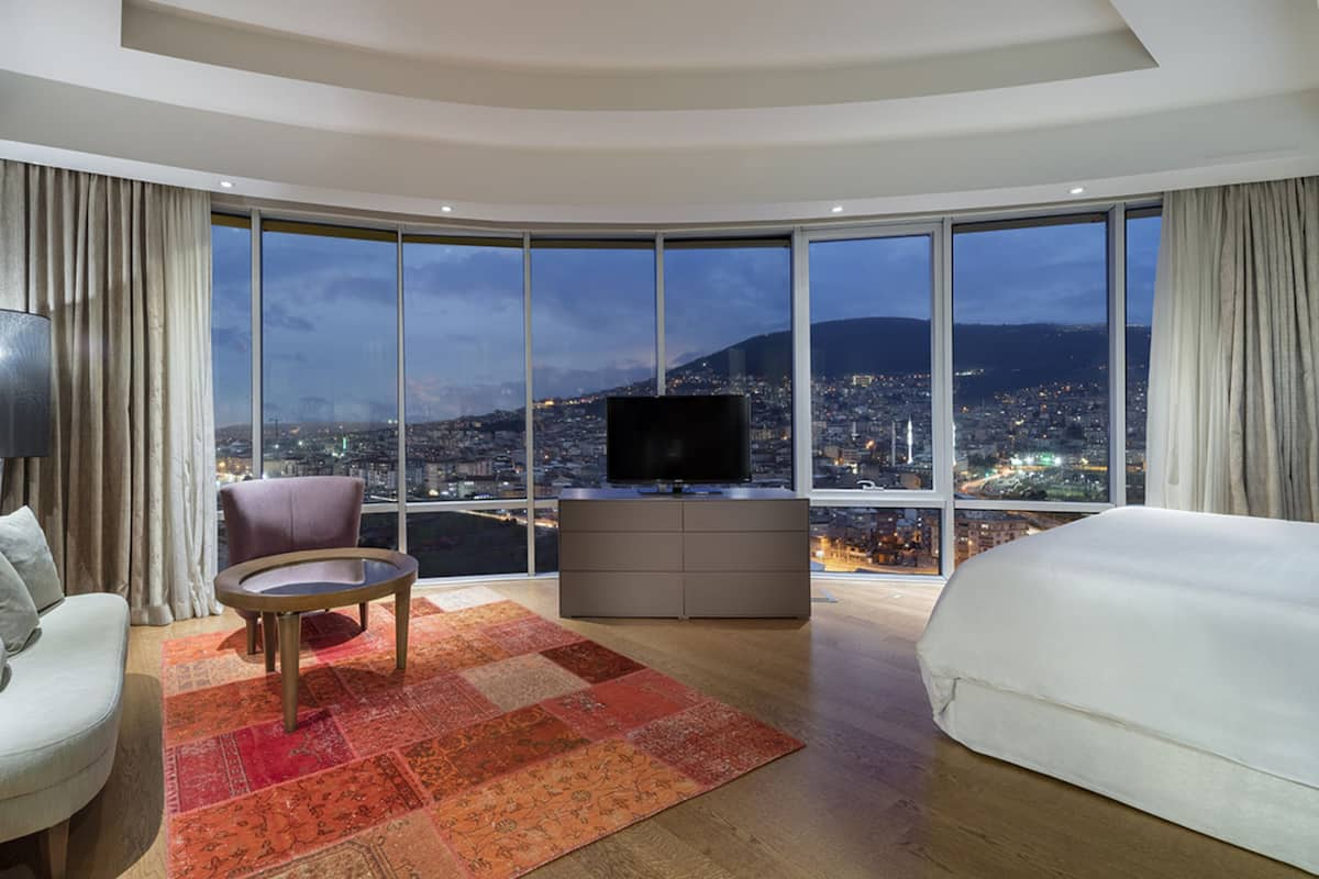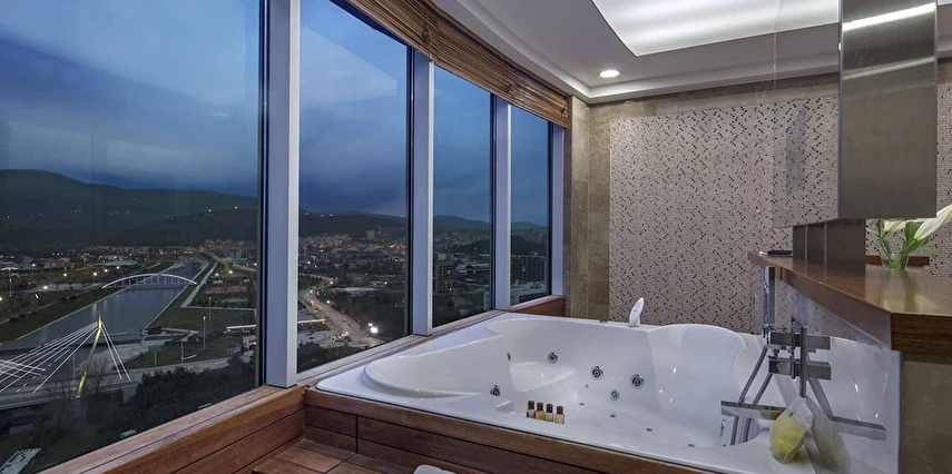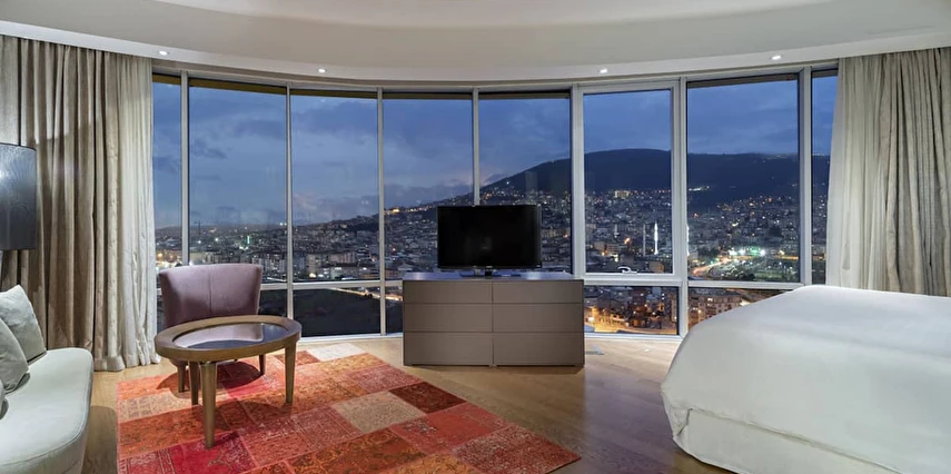 Daha Fazla Göster10’u suit toplam 171 geniş ve konforlu odasıyla Sheraton Bursa sizi evinizde hissettirecek kadar rahat bir konaklama deneyimi sunmak için tasarlandı. Yerel ve dünya mutfağından özel spesiyaller sunan iki restoranı bulunan Sheraton Bursa Hotel’de gastronomik keşiflerin tadını çıkarabilirsiniz. İş ve sosyal aktiviteler için ideal bir buluşma noktası olan Lobby Bar’da gün boyu kendine özgü zengin kahve ve özel bitki çaylarının tadını çıkarabilir, profesyonel barmenler tarafından hazırlanan uluslararası kokteyller ve zengin aperatif seçenekleri ile güzel vakit geçirebilirsiniz.Club odalarımızda konaklayan tüm misafirlerimiz, panaromik şehir ve dağ manzarasına sahip Club Lounge’ın tüm ayrıcalıklarından ücretsiz yararlanabilirler. Toplantı ve özel etkinlikleriniz için Sheraton Bursa size 1,890 metrekarelik esnek toplantı salonları sunuyor. Bursa’daki mükemmel eviniz Sheraton Bursa Hotel’de sizi aramızda görmek için sabırsızlanıyoruz. Sheraton’un Shine Spa Bursa kapalı yüzme havuzu, hamamı ve masajları olarak hizmet vermektedir.