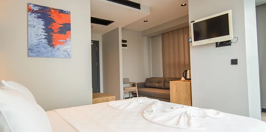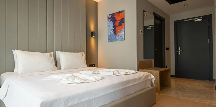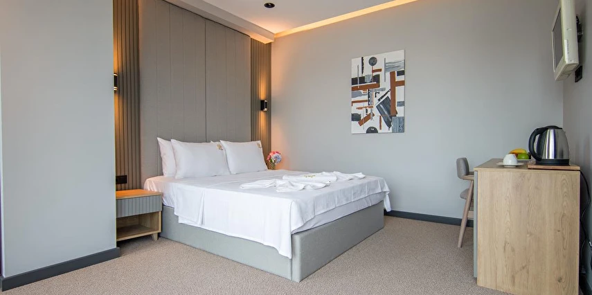 Geniş bir kullanım alanına sahip odalarımızda, mermer banyo ve TV ekranları, yağmur duşları ve çok daha fazlası ile sizleri bekliyor.