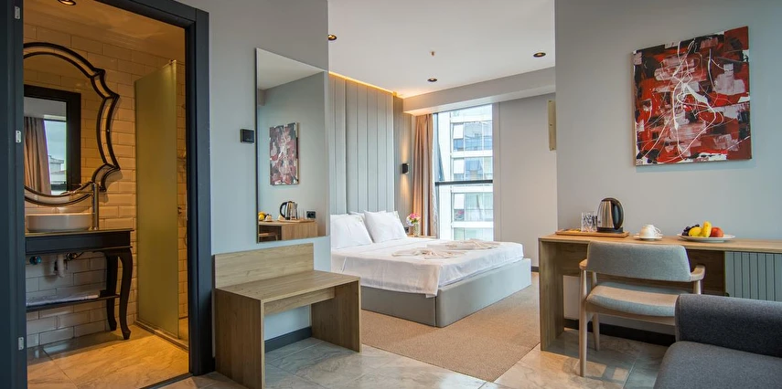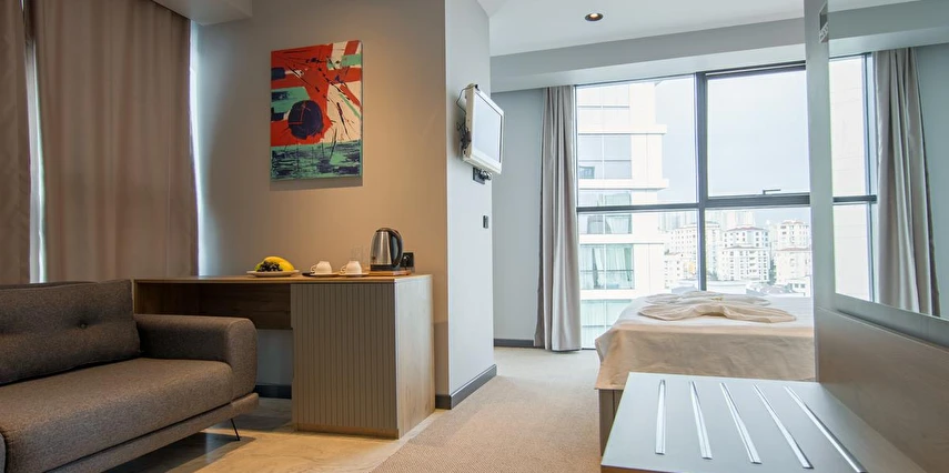 Odalarımızda, özel tasarım mobilyalar ile hazırlanmış, Ataşehir Merkez'inde muhteşem manzarasına sahiptir ve çağdaş ama samimi bir ortam yaratır.