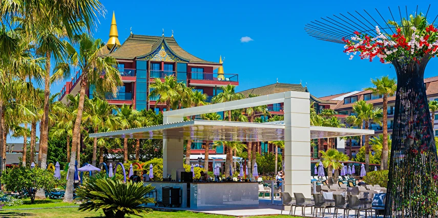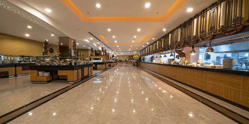 Sabah kahvaltısı, öğle ve akşam yemekleri açık büfe olup, tesisin belirlemiş olduğu markalar dahilinde bazı ithal alkollü içecekler ve alkolsüz içecekler 24 saat ücretsizdir. İmport Şampanyalar, Özel Şaraplar, Taze sıkılmış meyve suları, Yüksek Kalite Likörler Ve İmport İçecekler ücretlidir. Kahvaltıda alkollü içecek servisi yapılmamaktadır. Lobby Bar'da şişe biralar servis edilmektedir. Diğer içecekler şişe ile servis edilmemektedir . 18 yaş altına alkol servisi yapılmamaktadır. A La Carte Restaurantlar: Minimum 5 Gece konaklamalarda geçerli olmak üzere, tatil boyunca yukarıda belirtilen üç A La Carte Restauranttan tercih edilecek bir mutfakta bir kez ücretsiz rezervasyon yapılabilir. Ekstra rezervasyonlar ücretlidir. A'La Carte Restoran 12 yaş ve üzeri misafirler için hizmet vermektedir.