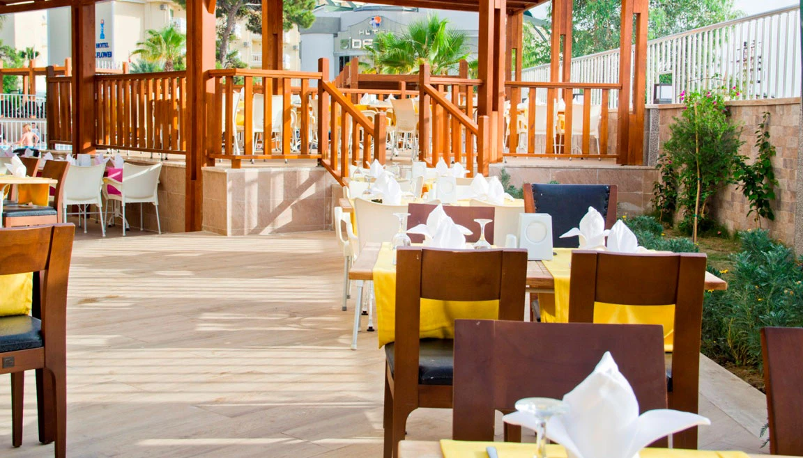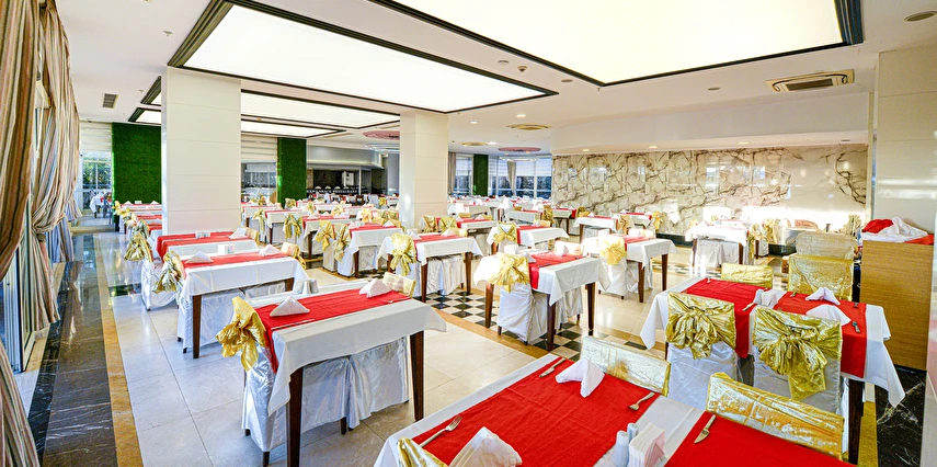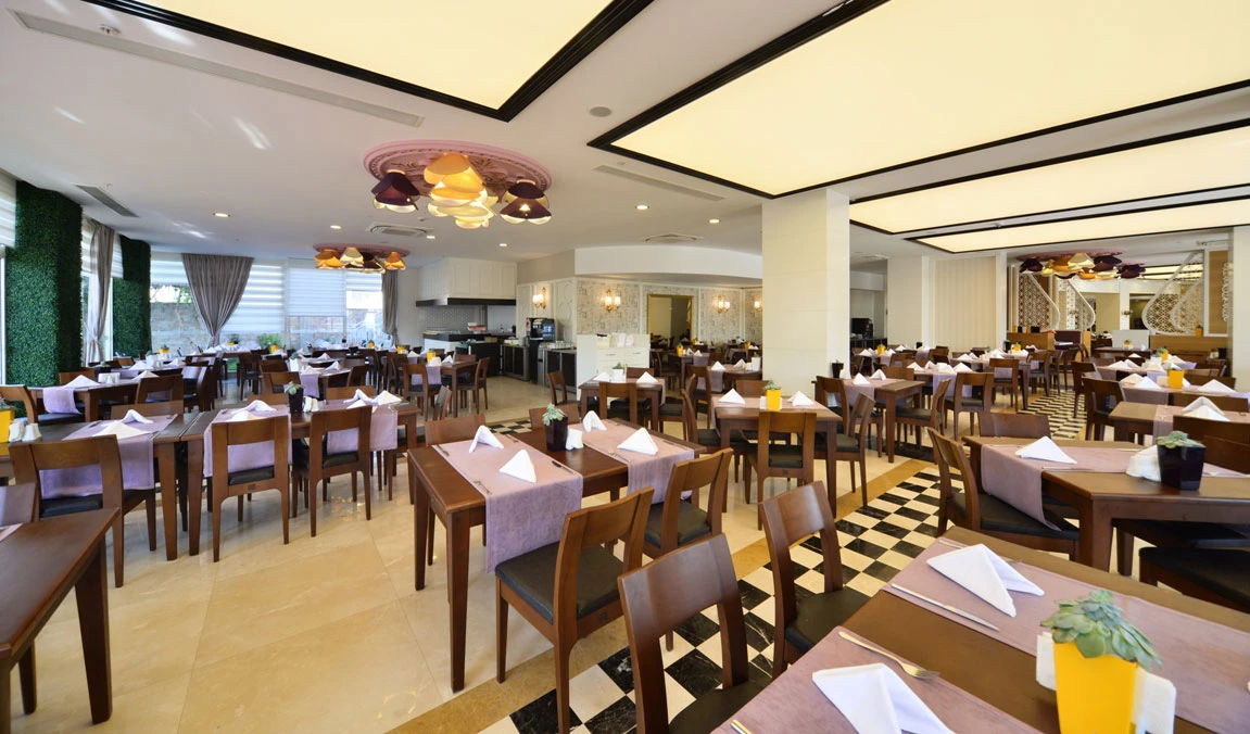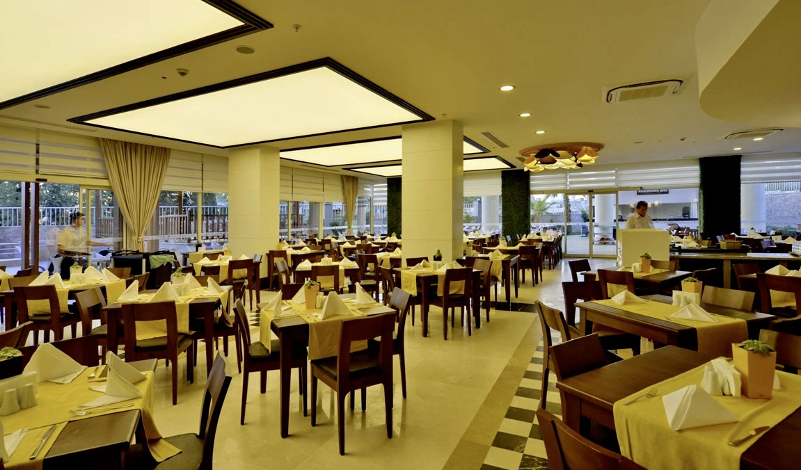 Tesisin belirlemiş olduğu konsept dahilinde tüm yerli alkollü ve alkolsüz içecekler saat 10:00 ile 00:00 saatleri arasında ücretsizdir. Tüm içecekler masalara servis edilir. Taze sıkılmış meyve suyu, şişeli ve Premium içecekler ücretlidir. Akşam yemeğinde uygun kıyafet zorunluluğu vardır. Türk kahvesi ücretlidir.