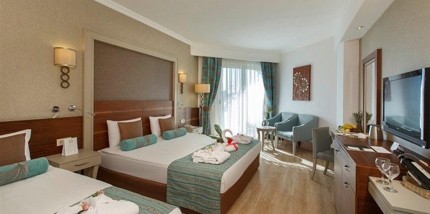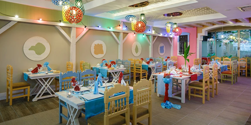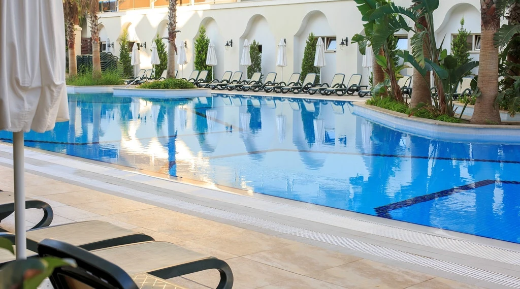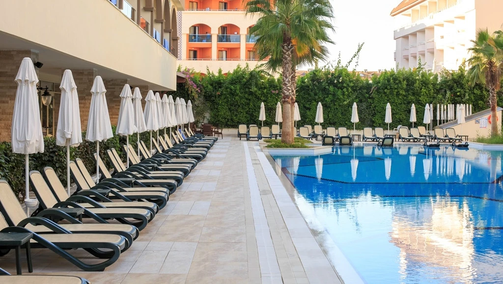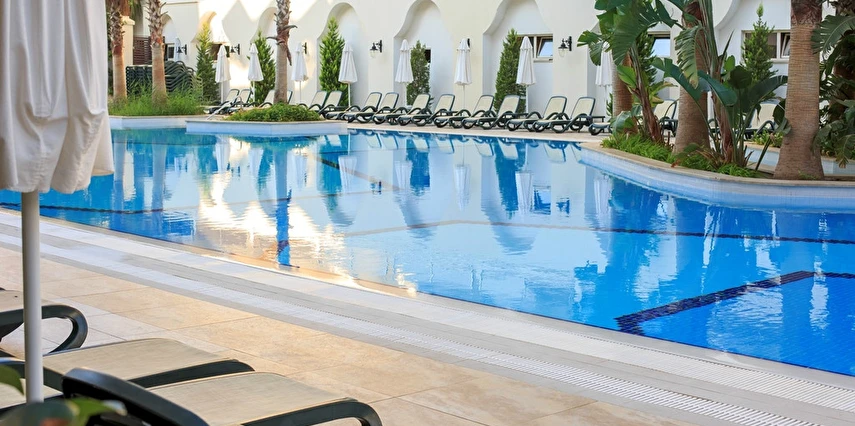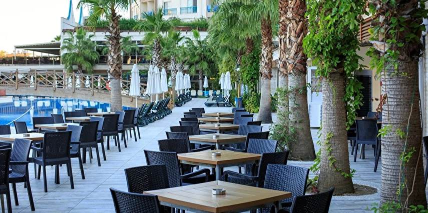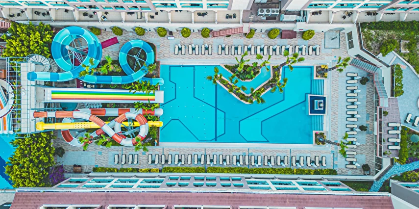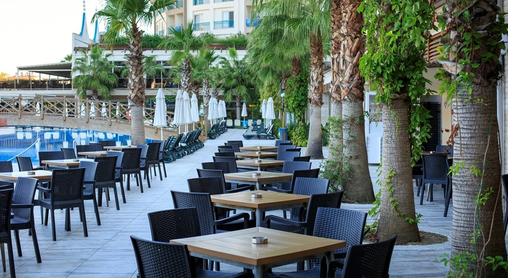 - Açık hava kompleksi güneşlenme terası; Hava durumuna bağlı olarak mevcut açık alan; erken ve geç sezondaki kısıtlamalar; Dış alanın m² cinsinden büyüklüğü: 18000 m²