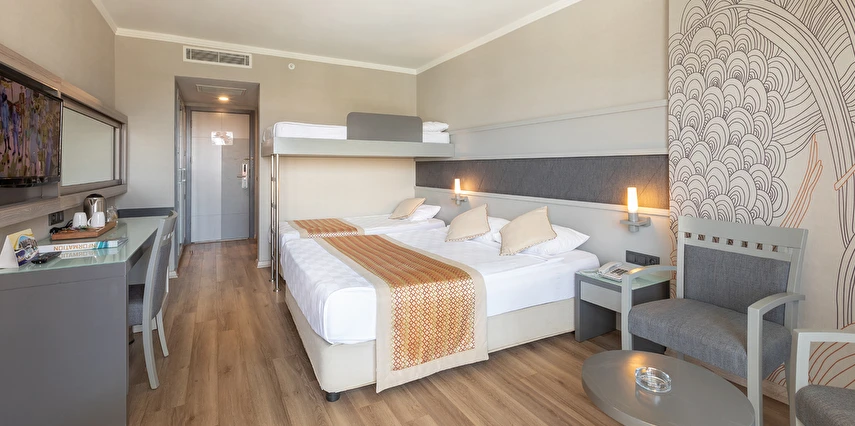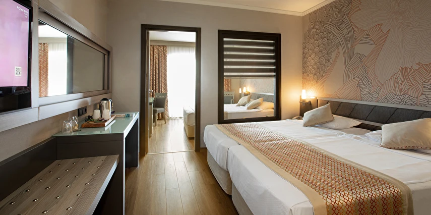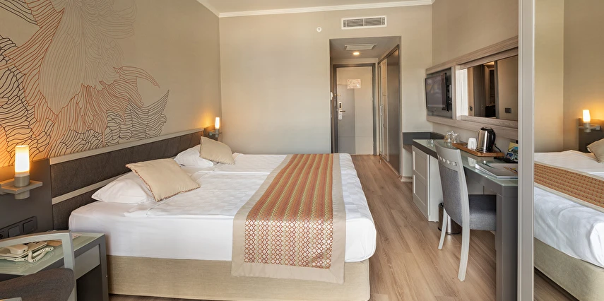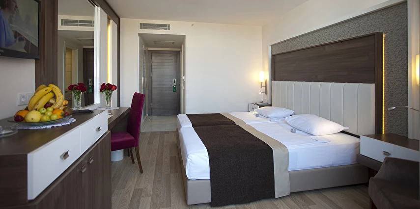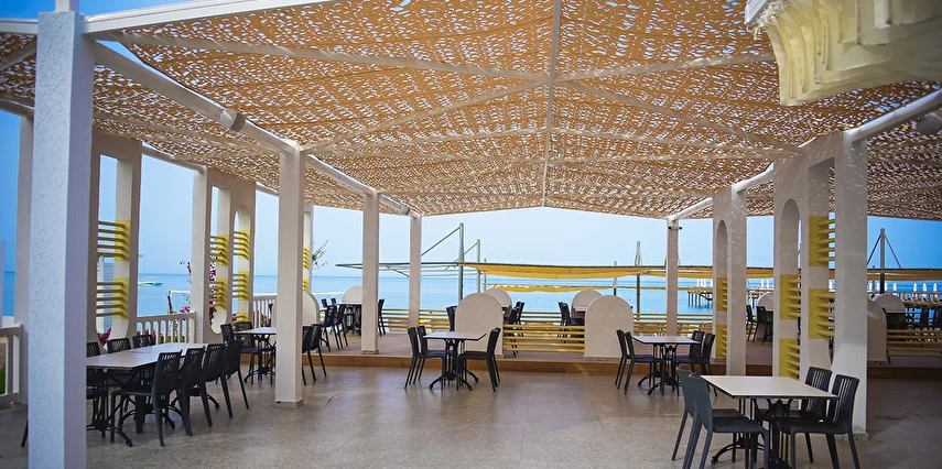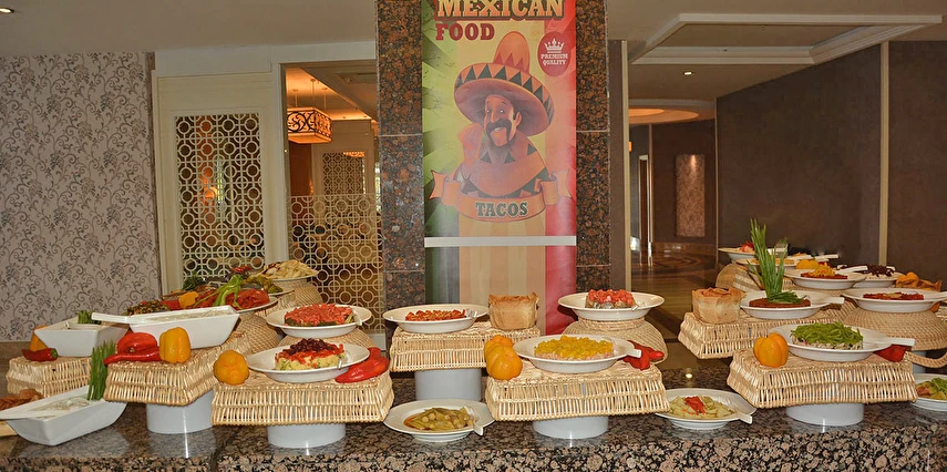 Açık Büfe şeklinde zengin ve lezzetli kahvaltı, zengin ve çeşitli Öğle Yemeği ve Akşam Yemeği. Geç Kahvaltı, Havuz ve Sahilde Snack, Öğleden sonra Kahve-Çay-Pasta ve Dondurma servisi ile 10.00 –24.00 saatleri arası tüm yerli alkollü ve alkolsüz içkiler ücretsizdir.