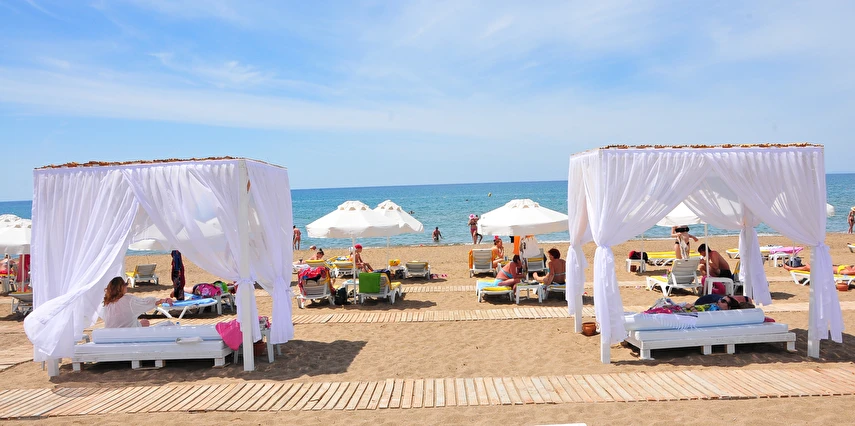 Kendine ait sahilde plajı mevcuttur. Sahil kum olup, deniz derinliği sığdır. Shuttle Servis; plaja yarım saatte bir servis mevcuttur.